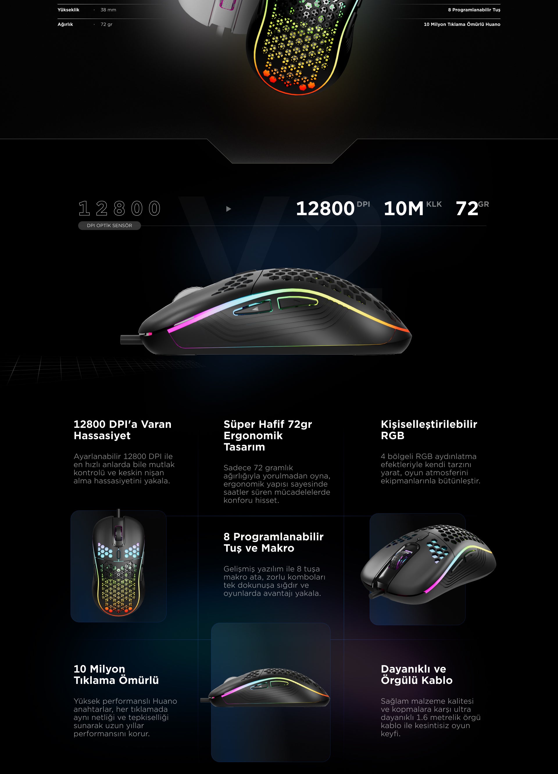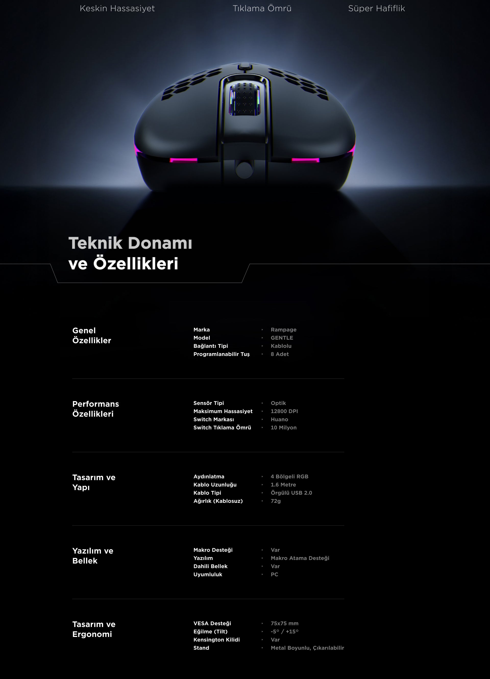 - RGB Aydınlatmalı- Makrolu