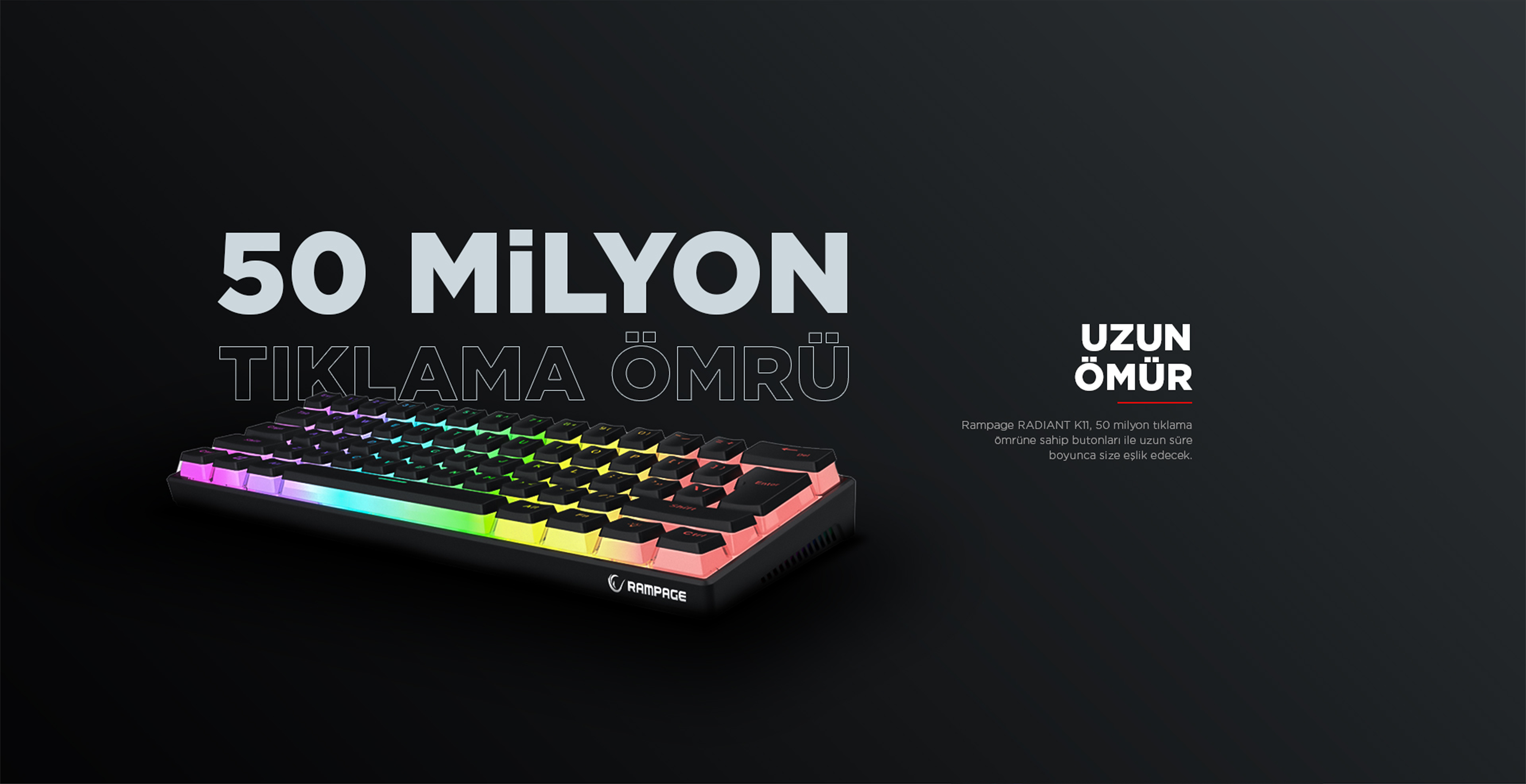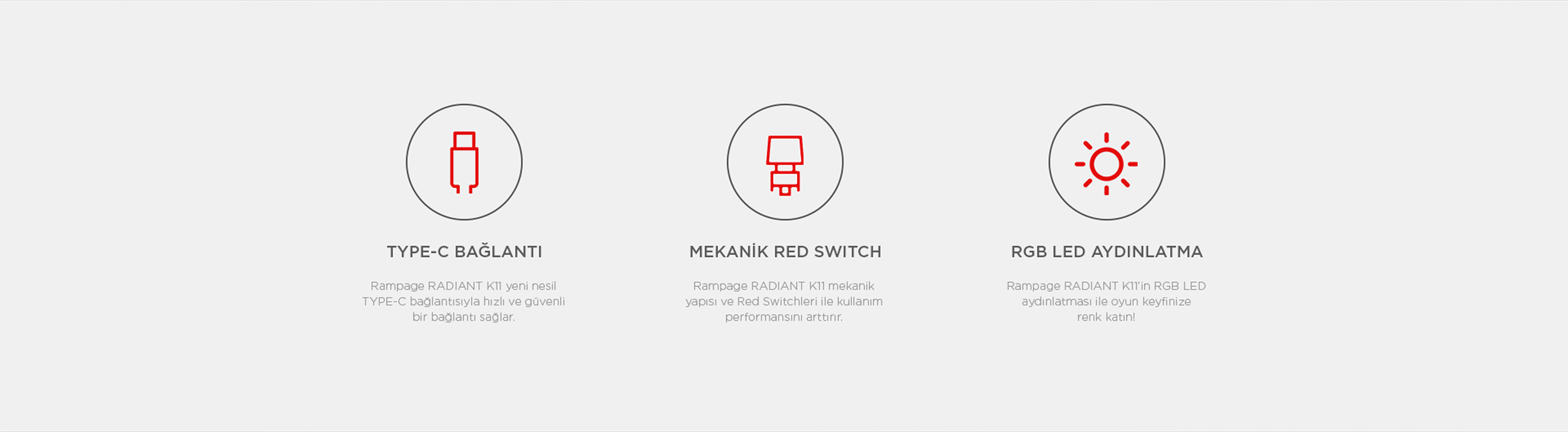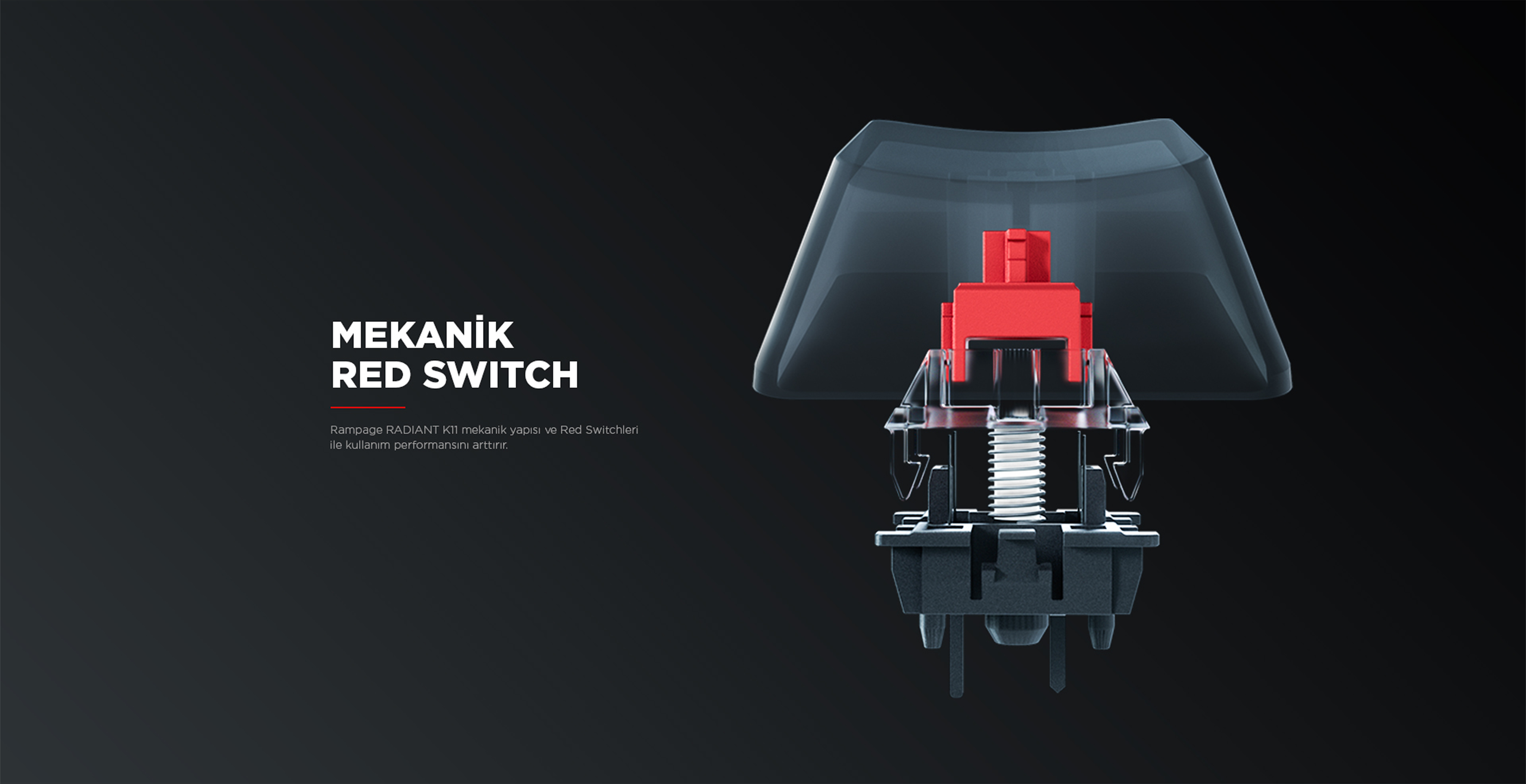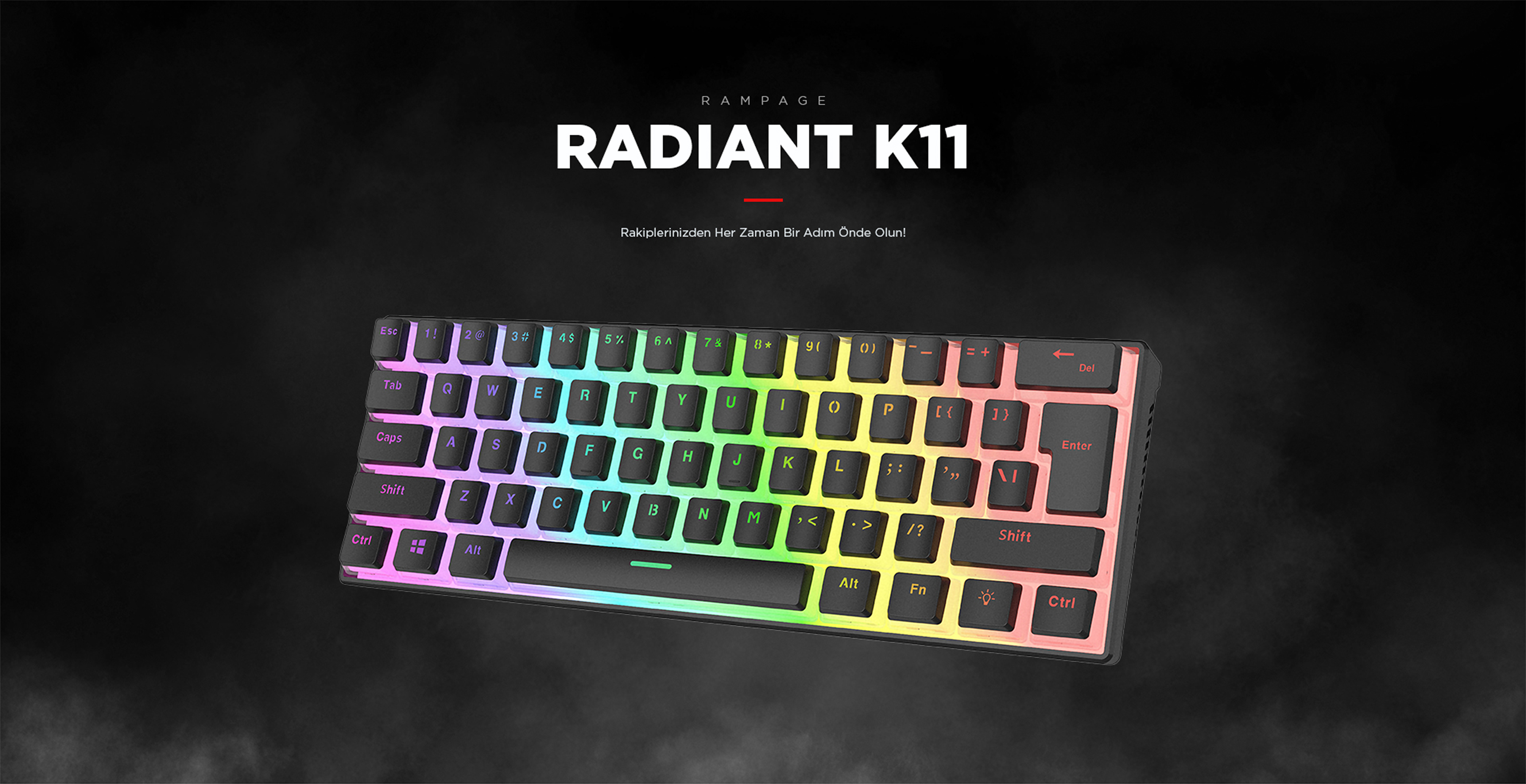 Radiant K11 Type-C / Puding Tuşlu US Layout Red Switch Oyuncu Klavye-Siyah