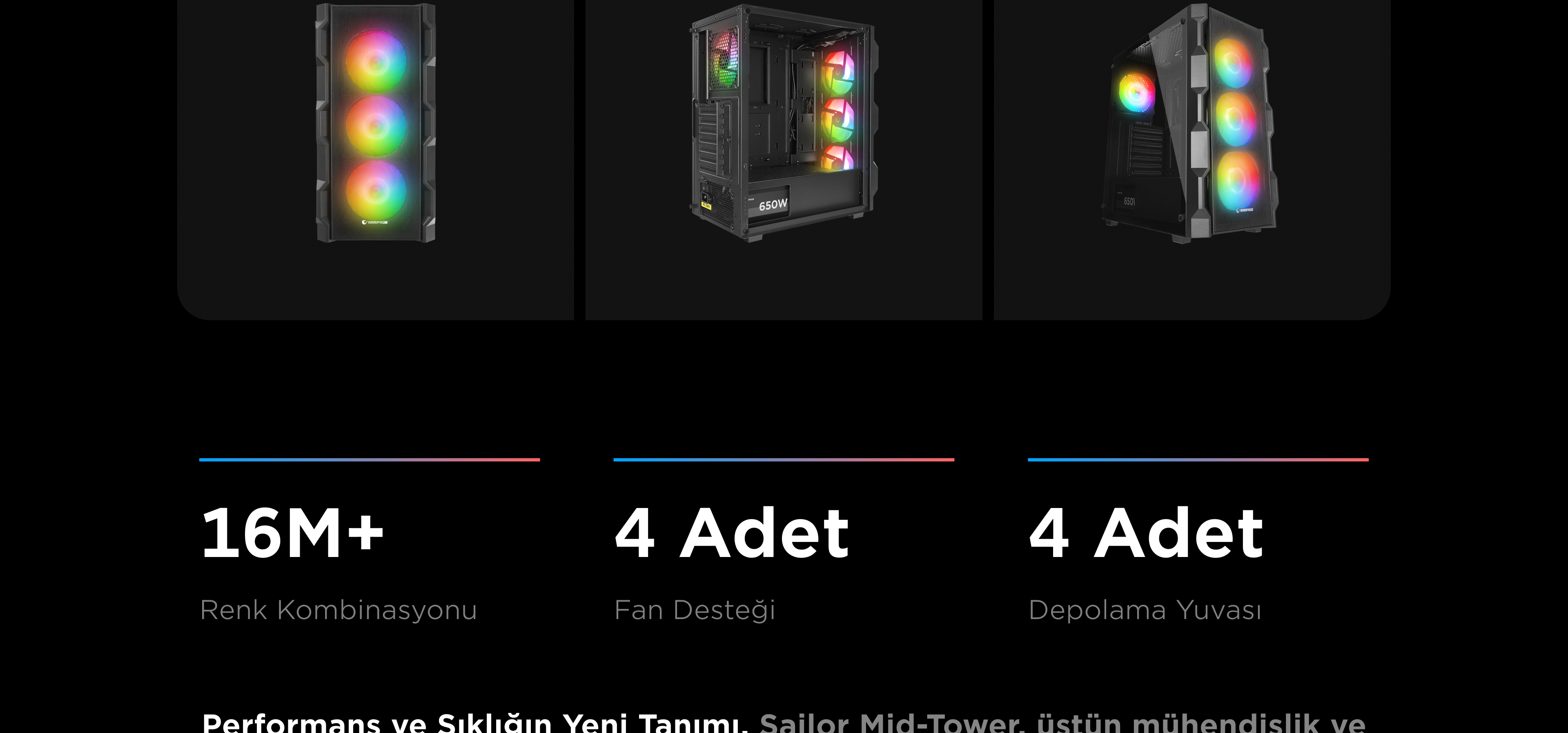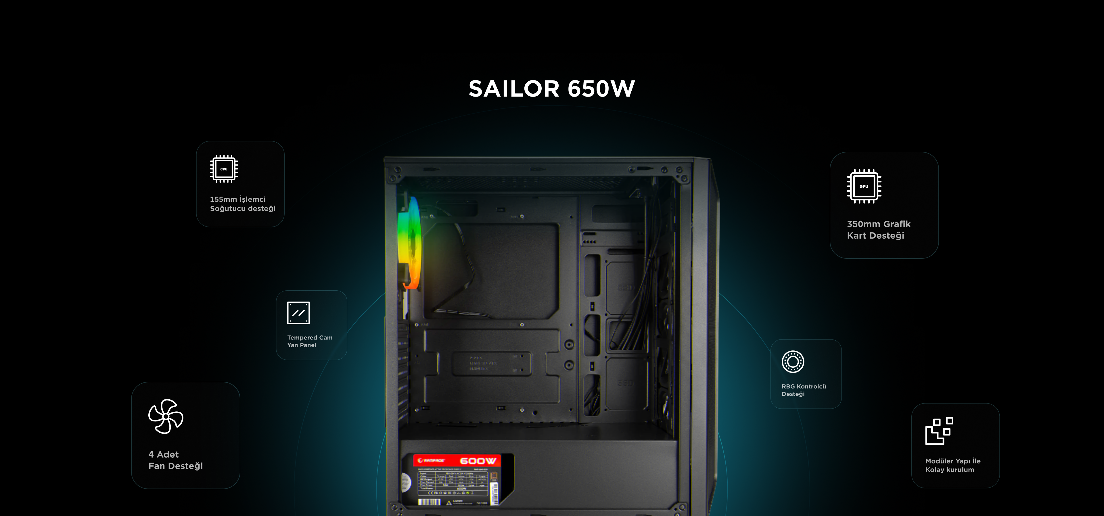 Sailor Temperli Cam 600W 80+ Bronze Siyah Atx Mid-T Oyuncu Kasası