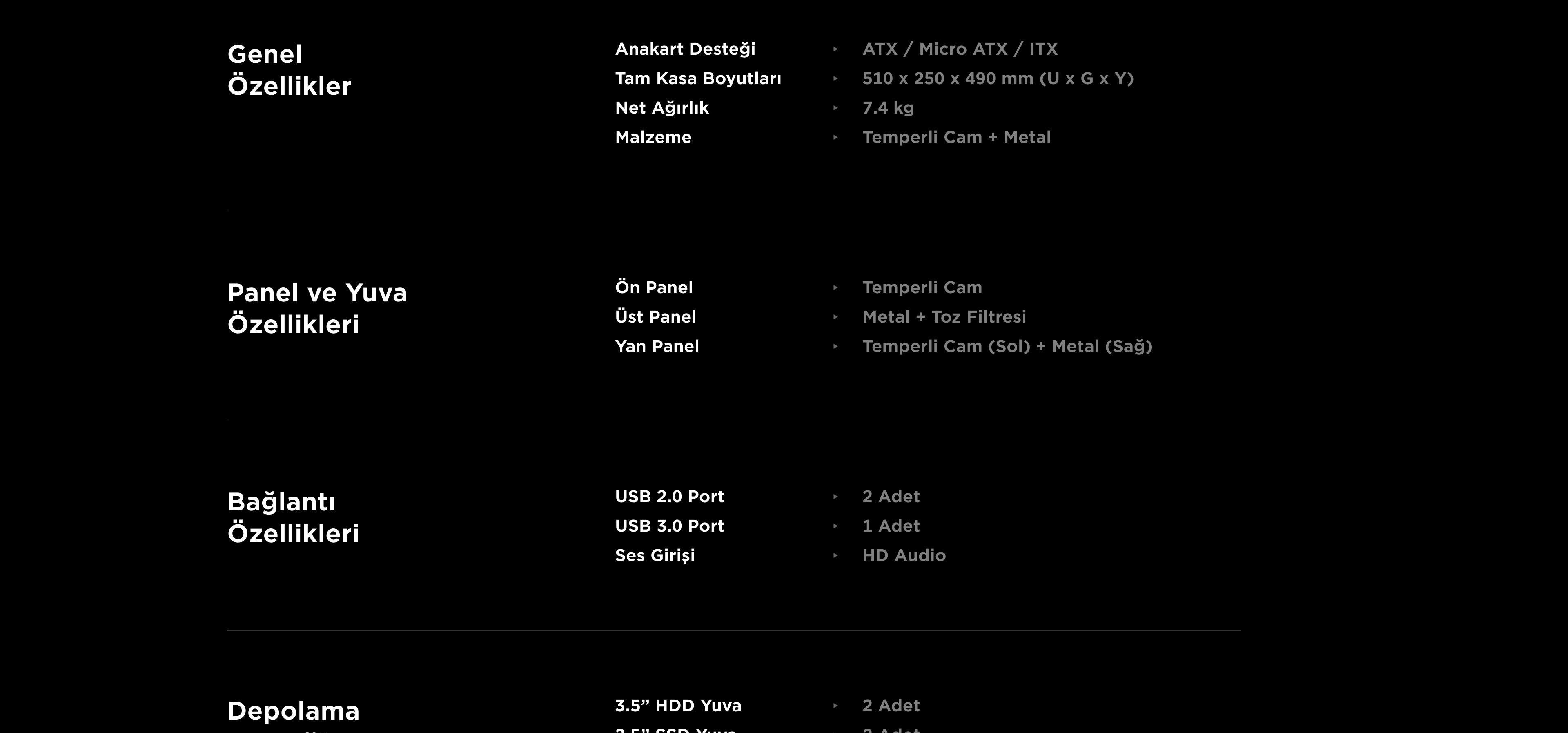 - Atx / Micro Atx / Mini Atx Anakart Desteği