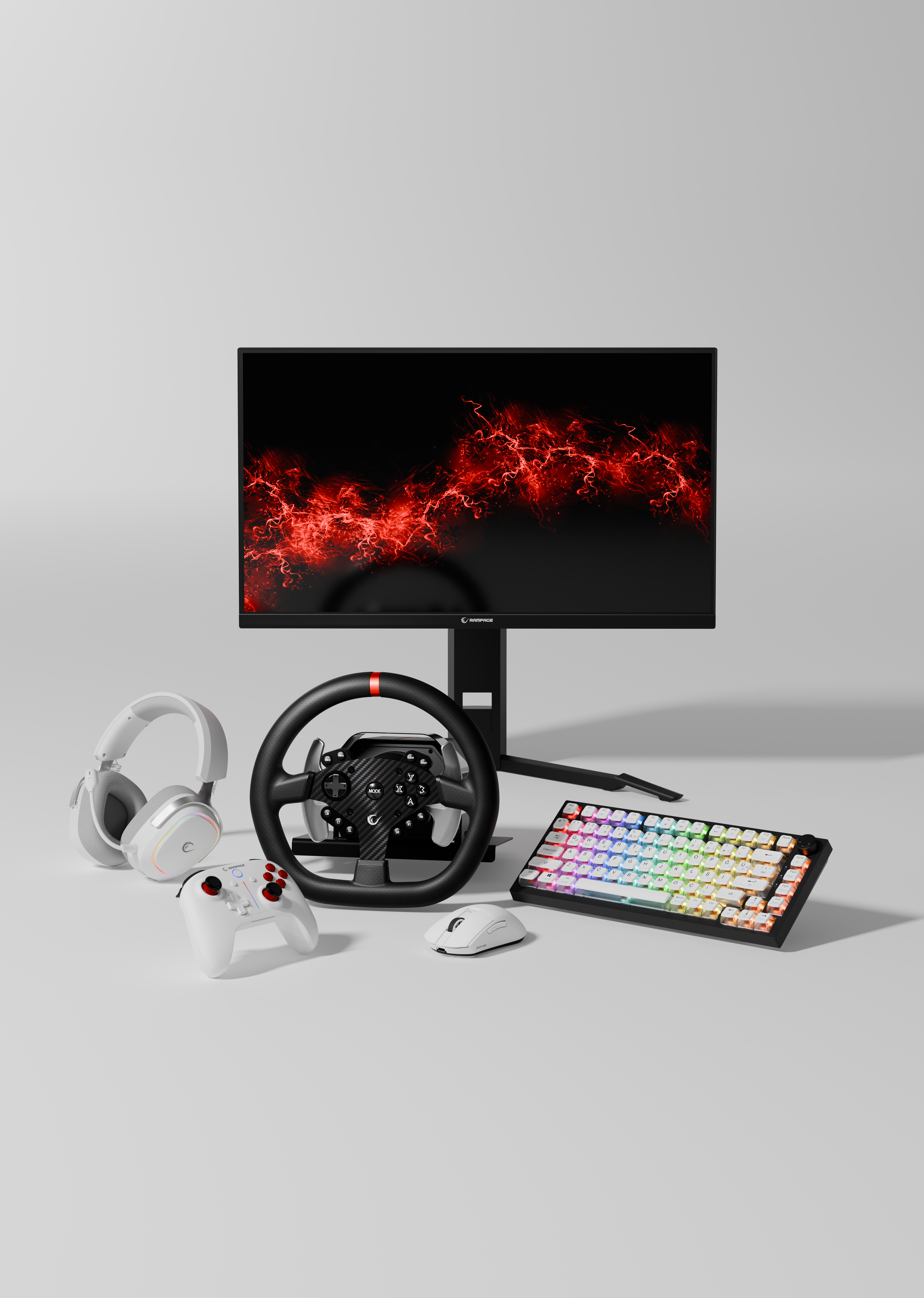 Yoru TKL Pro RGB Outemu Red Switch Mekanik Kablosuz Oyuncu Klavyesi-Beyaz/Gri