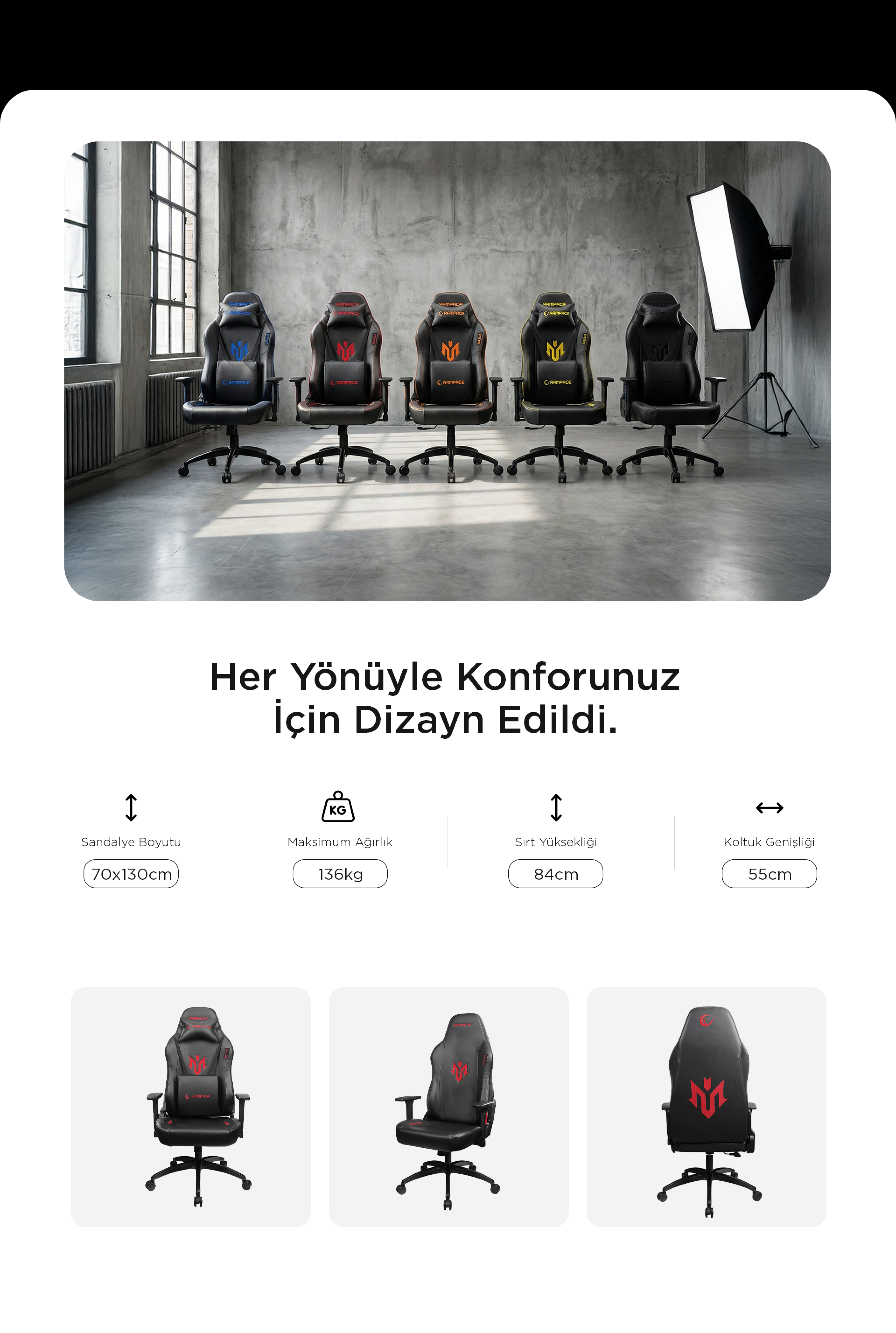 - Seat width: 55 cm
