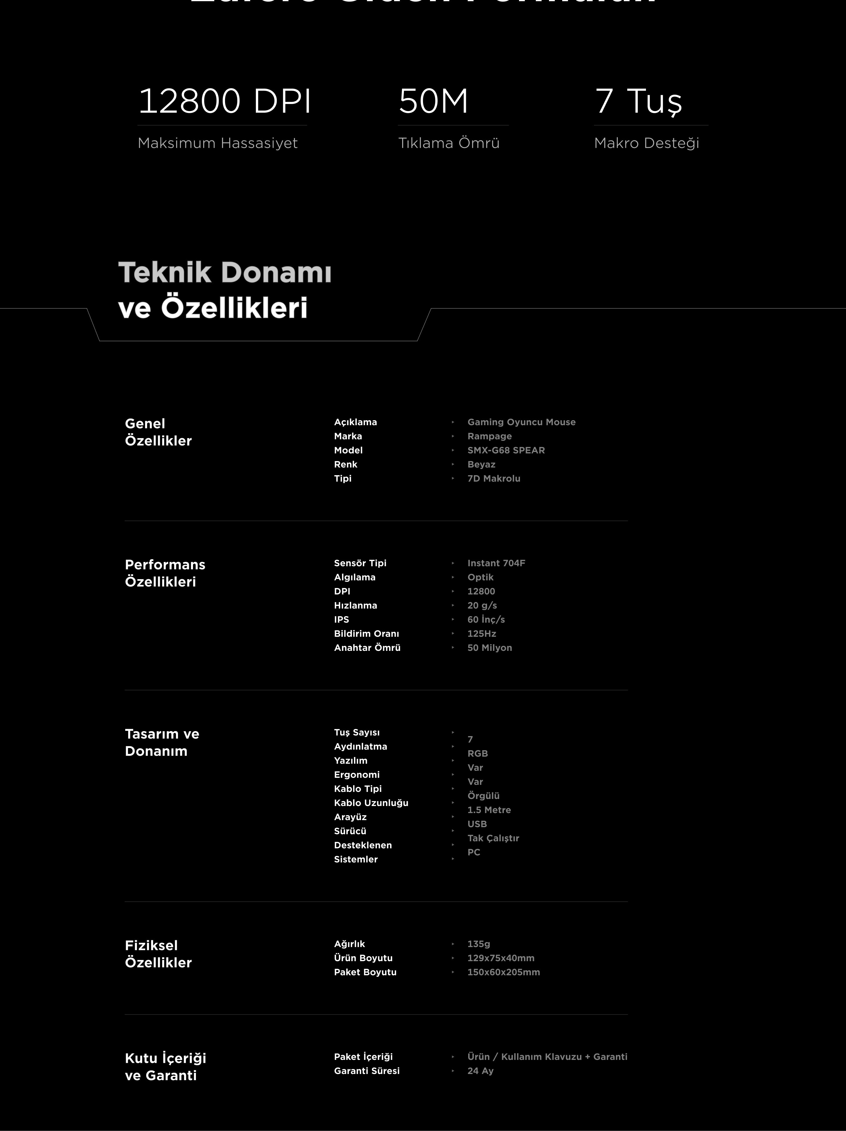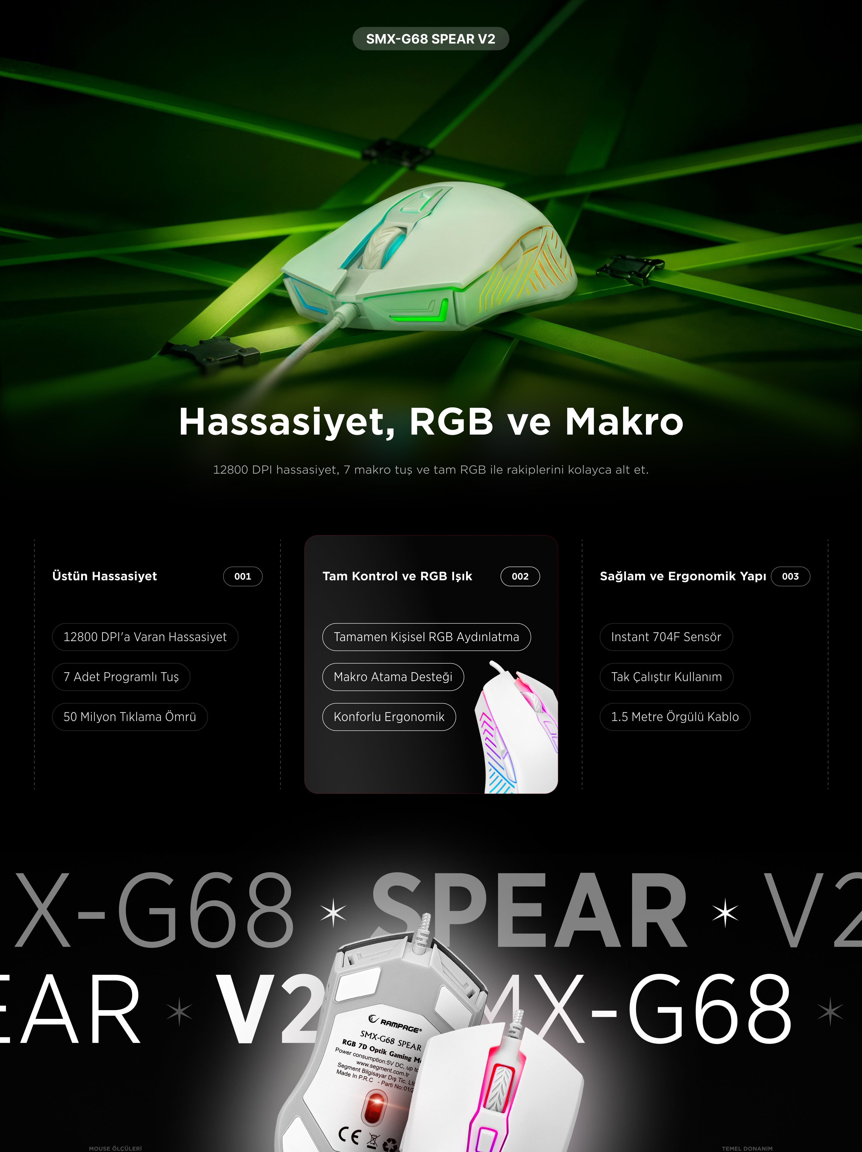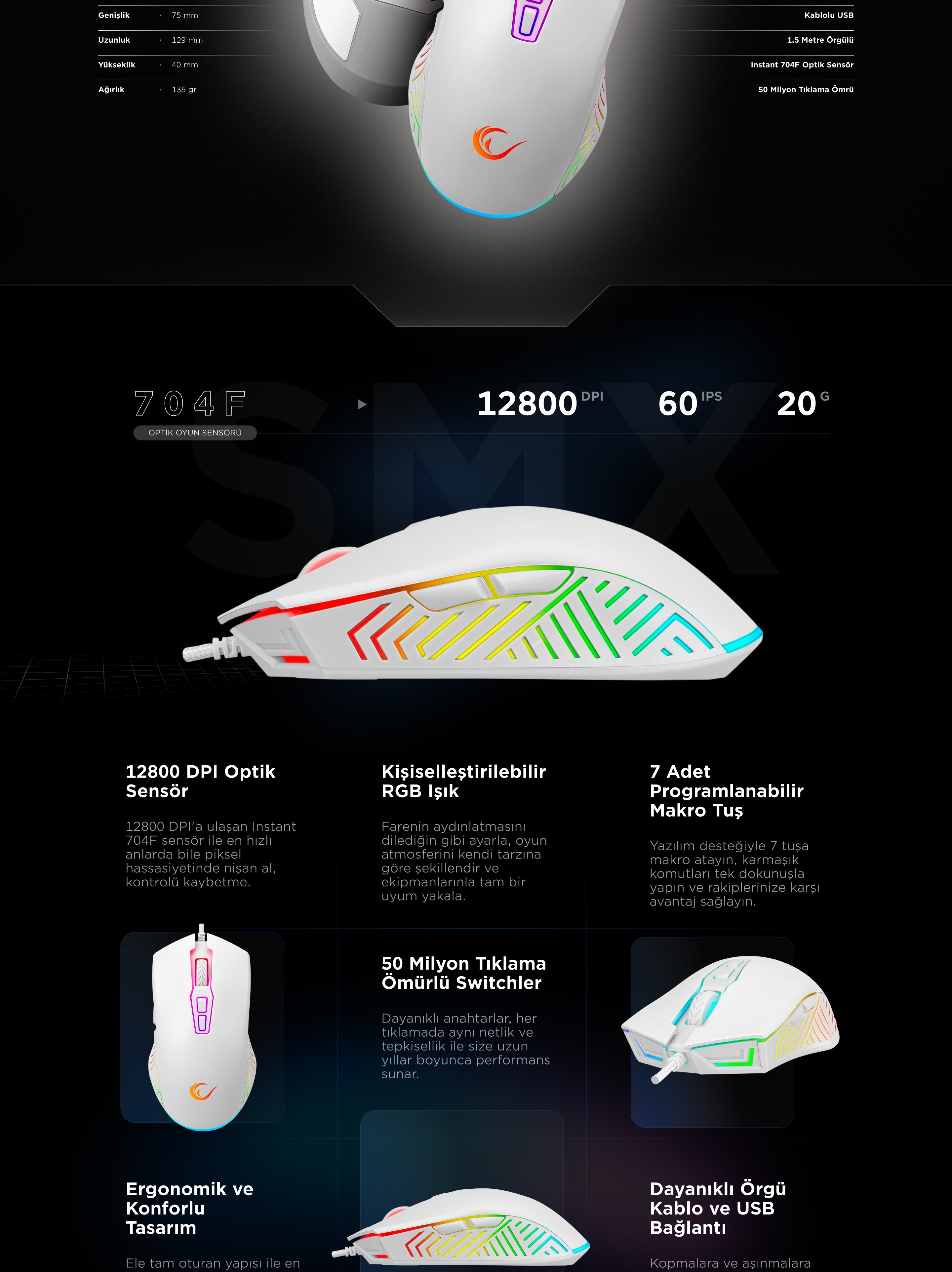 Smx-G68 Spear V2 12800 Dpi 7D Macro Gaming Mouse-White