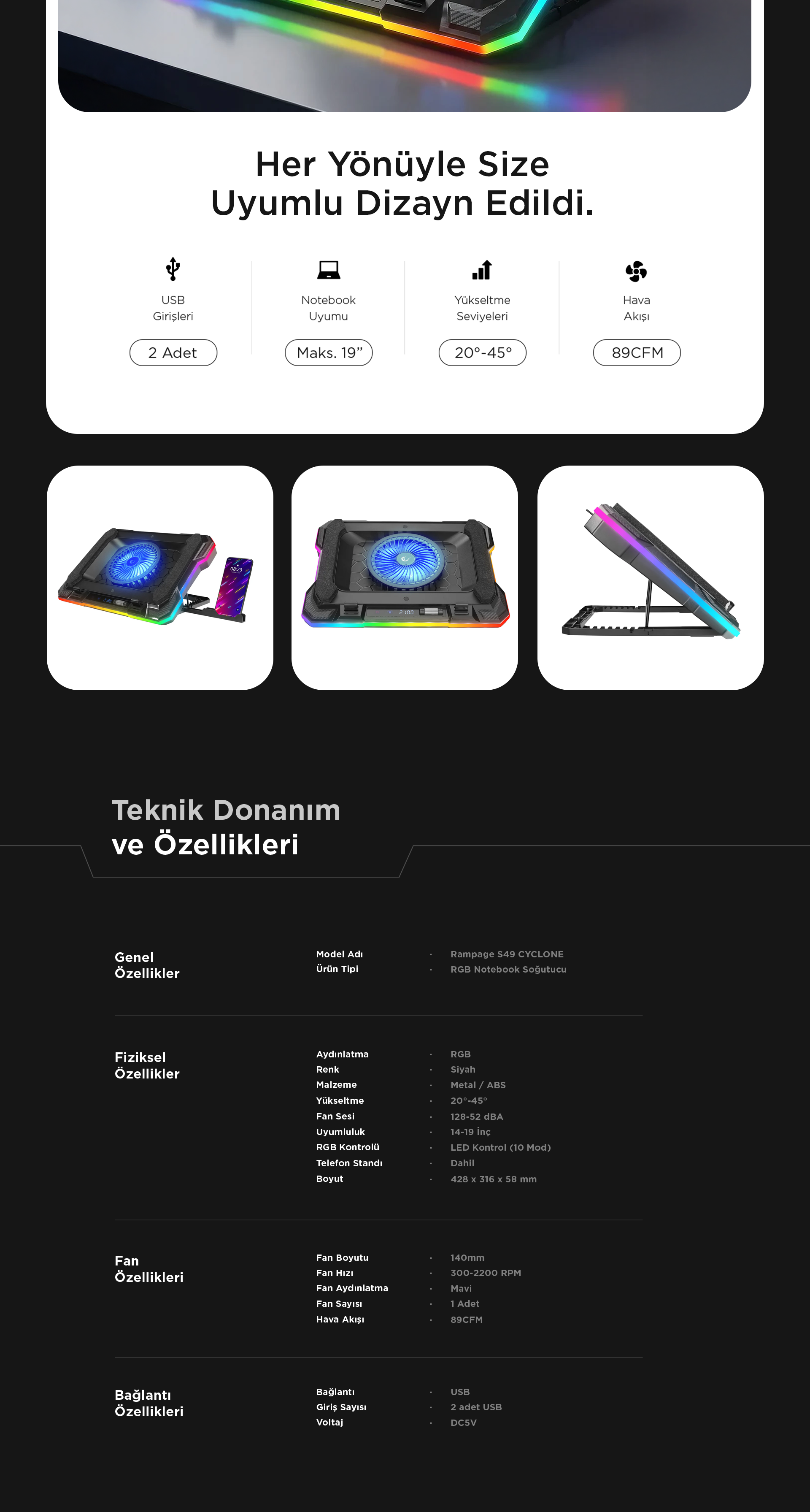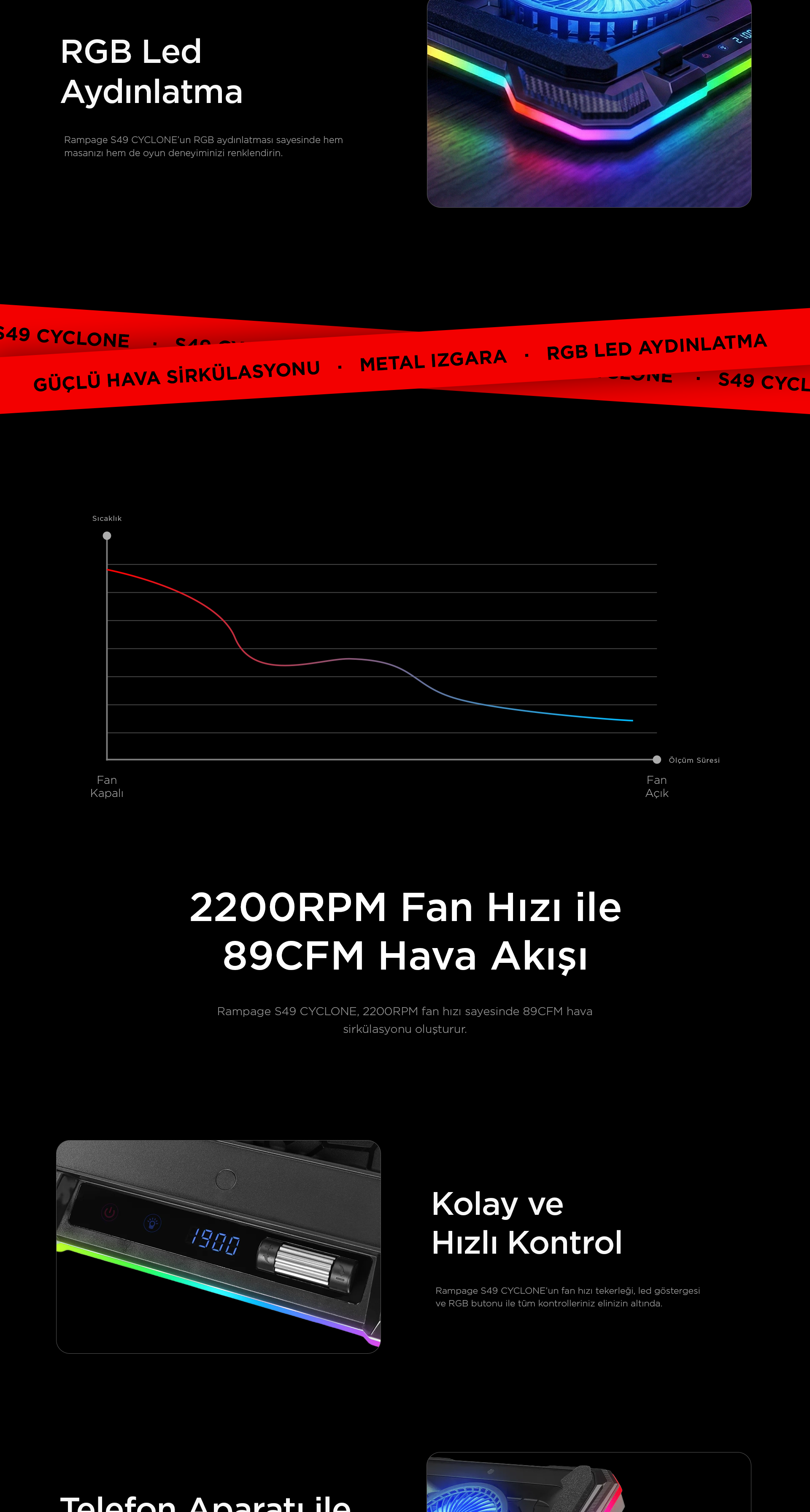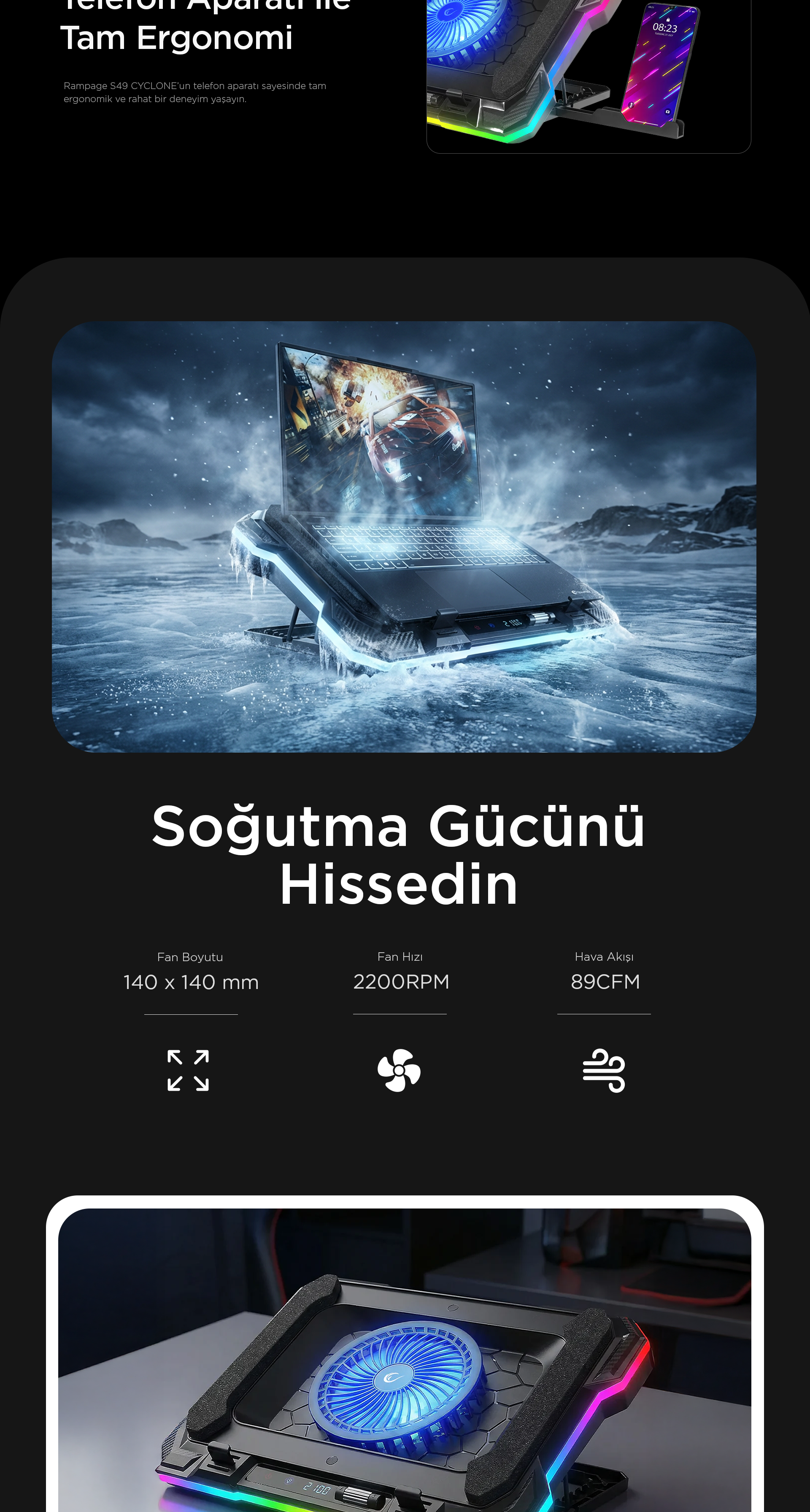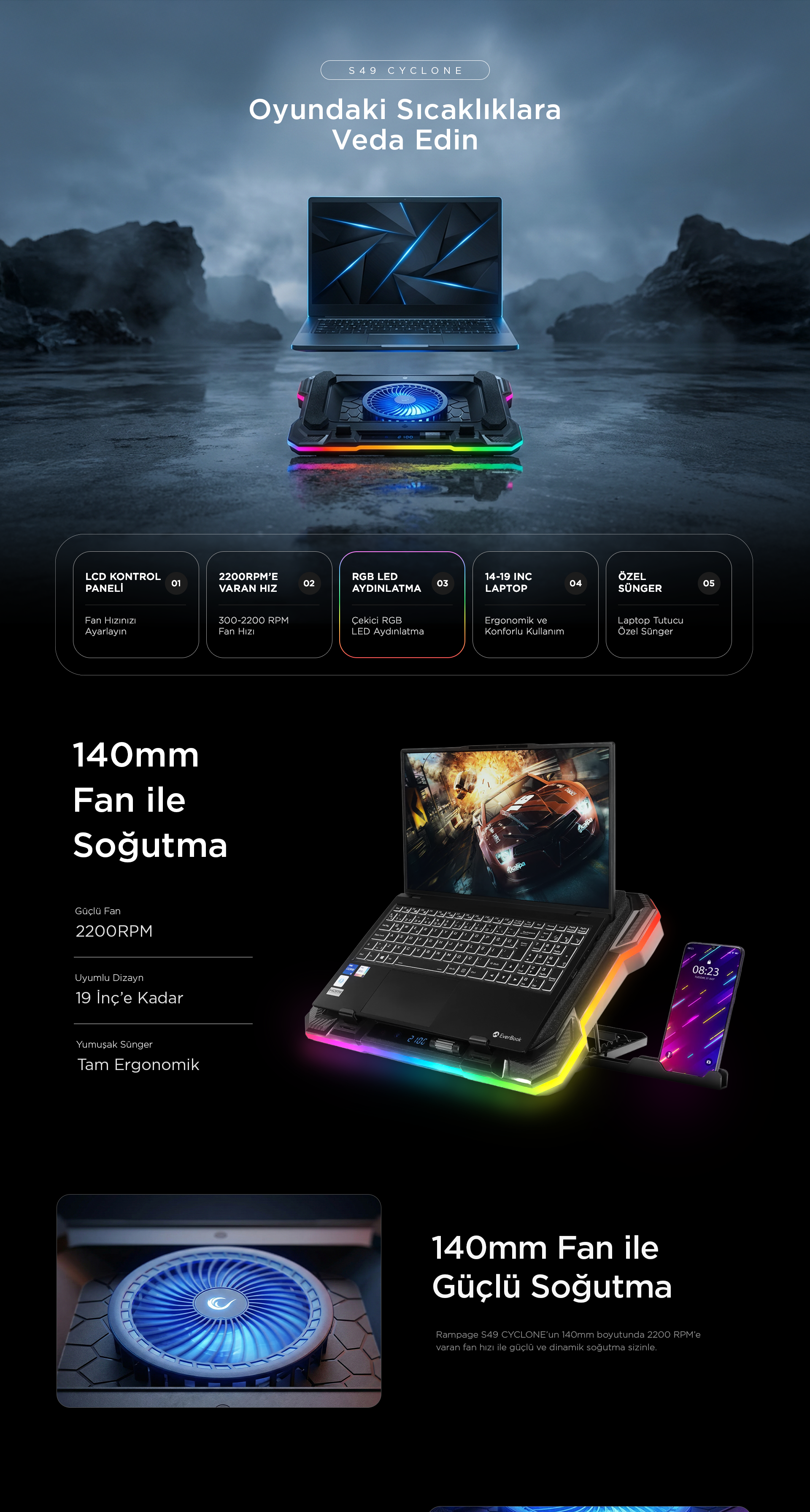 S49 Cyclone 14-19 inch Screen Notebook Cooler Stand with Phone Holder - Black