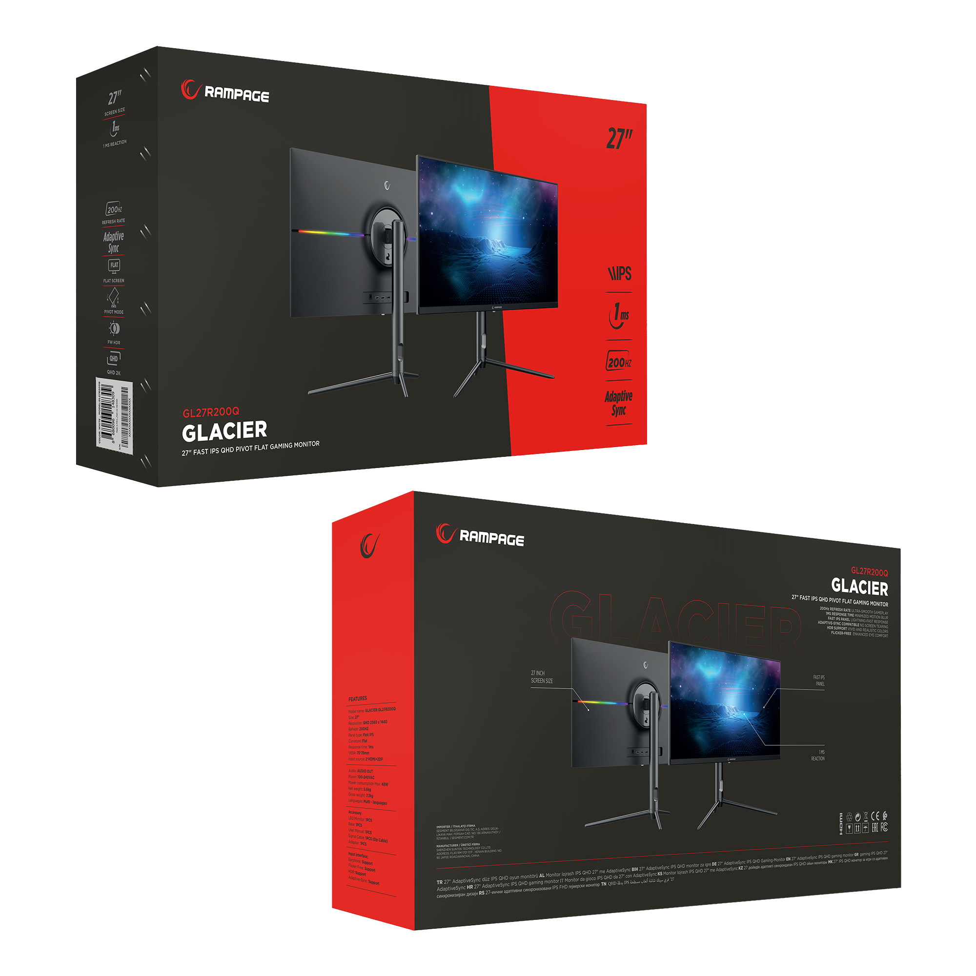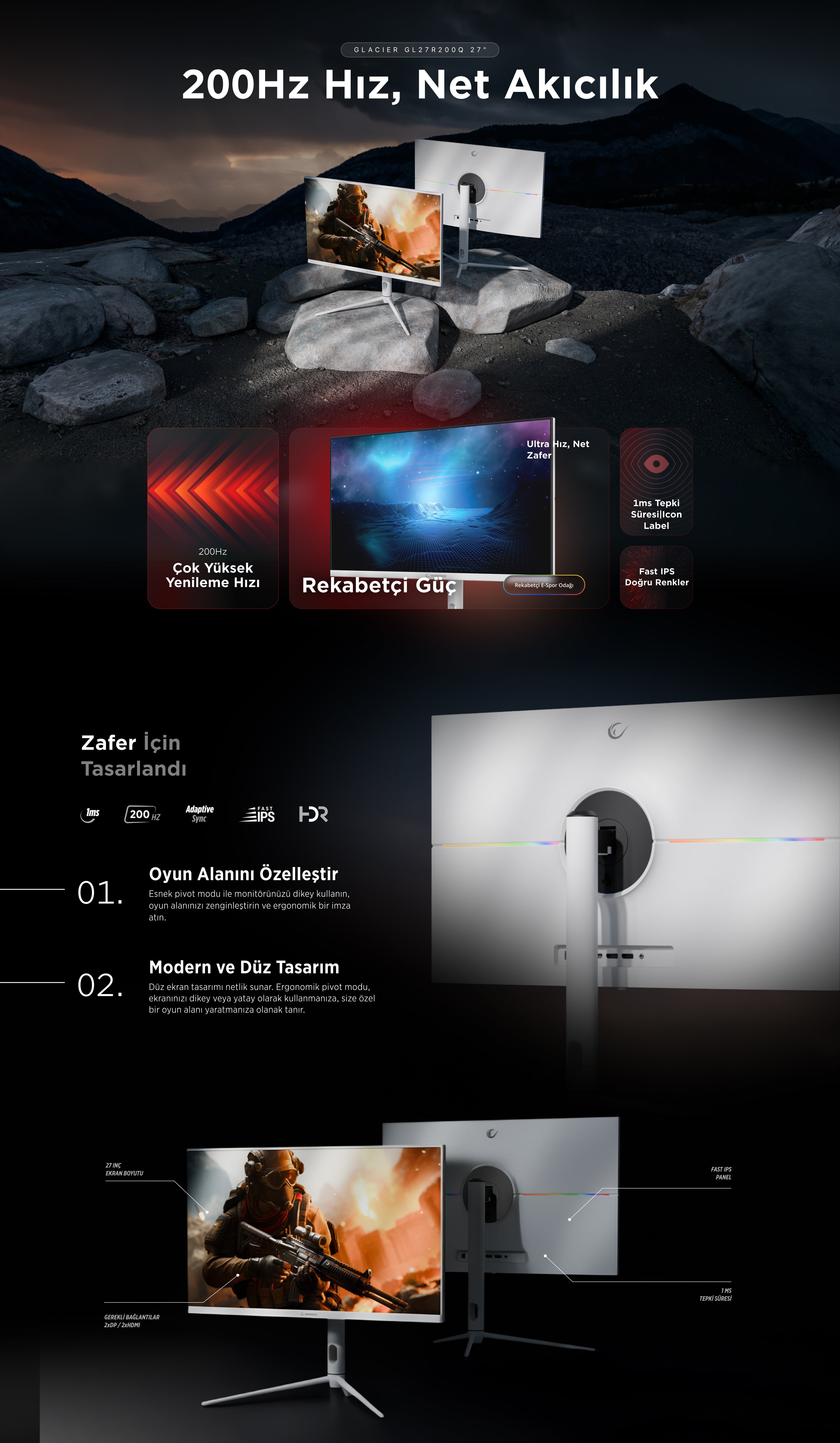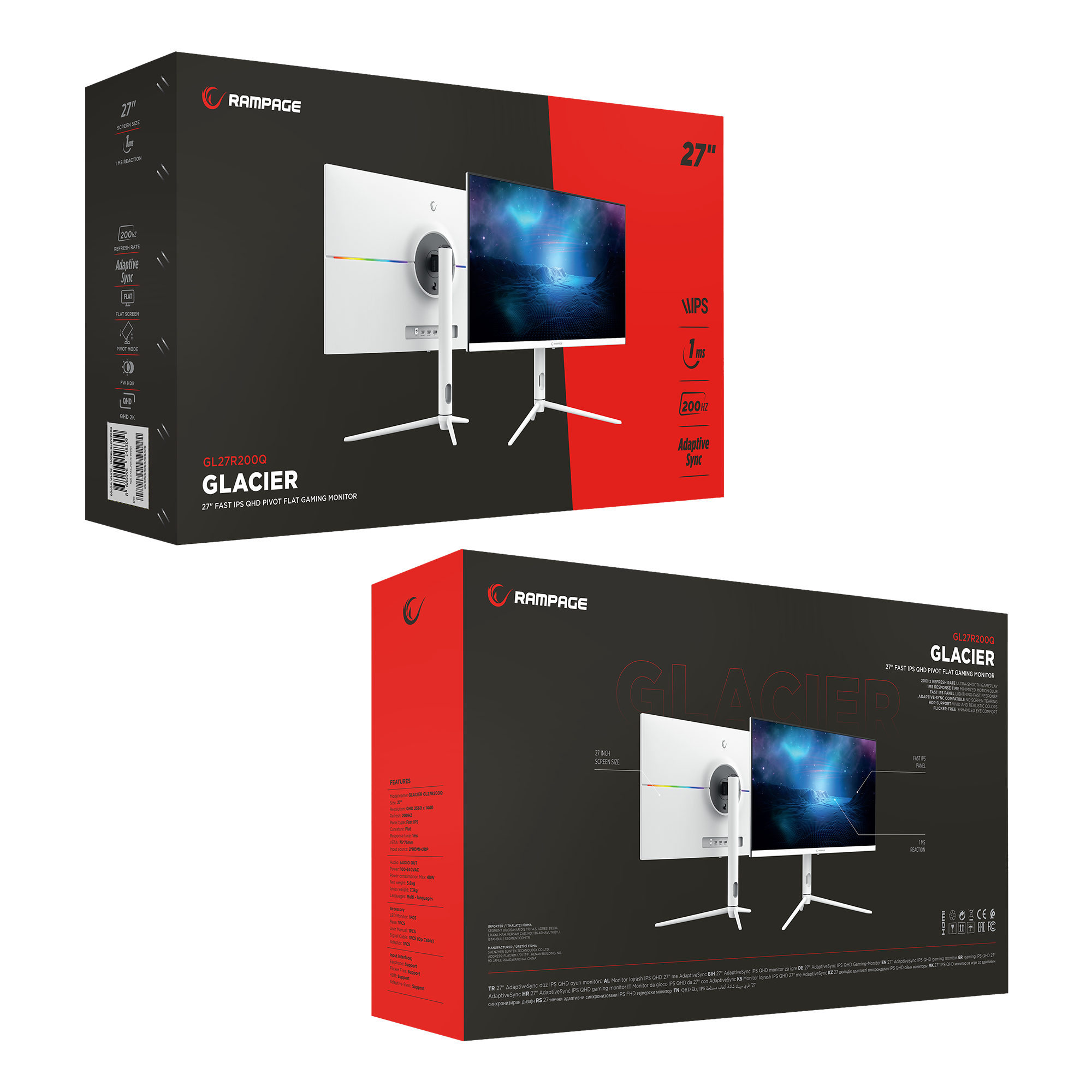 Glacier GL27R200Q 27'' 200Hz 1ms Fast IPS QHD 2K AdaptiveSync RGB Pivot Flat Gaming Monitor-White