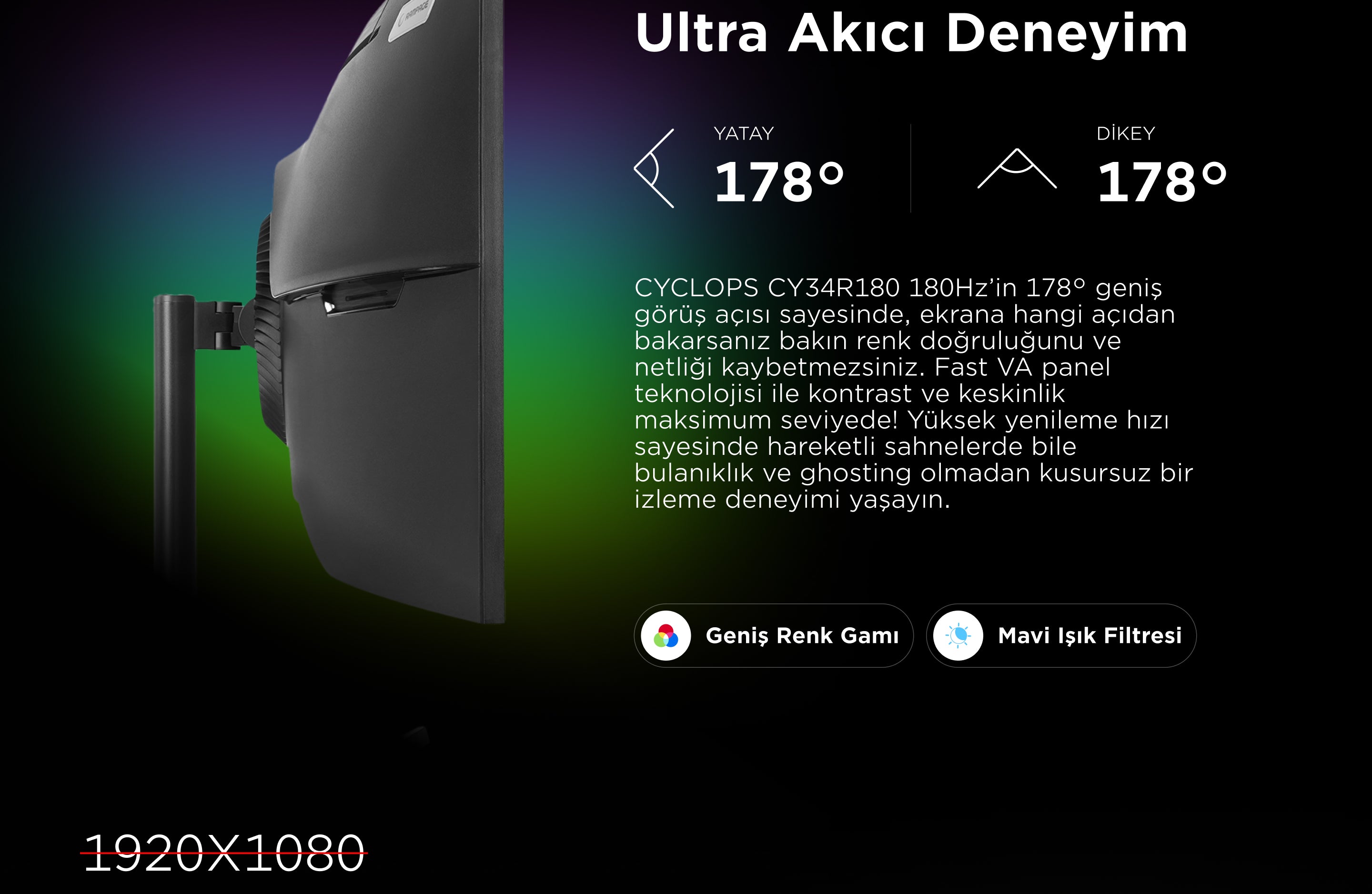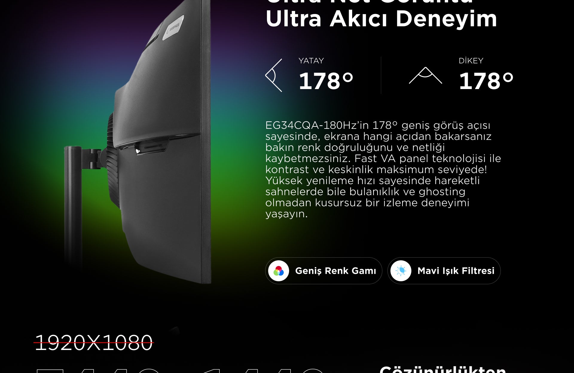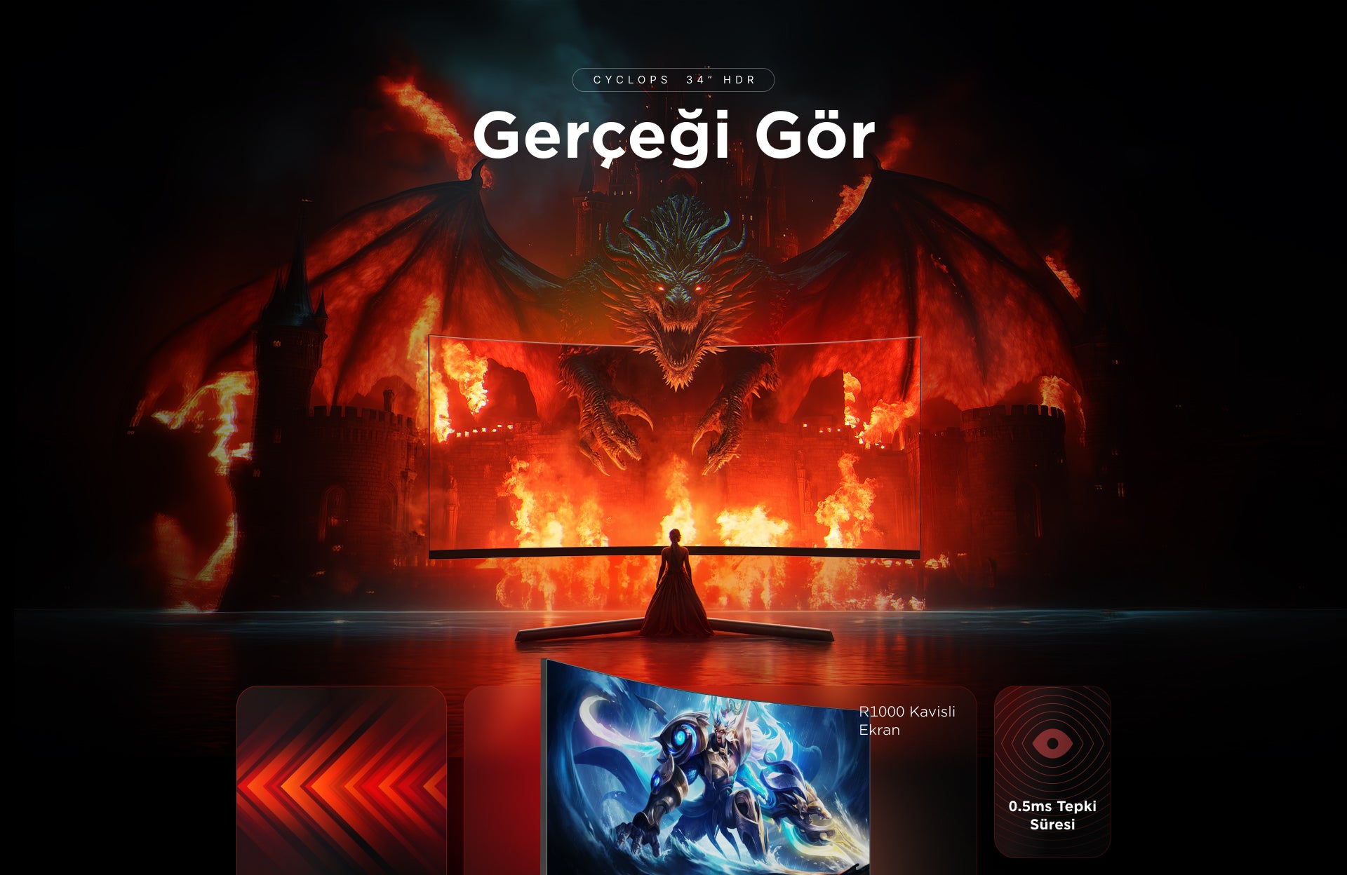 Cyclops CY34R180 34'' 180Hz Fast VA HDR Freesync Pivot PC Curved Gaming Monitor