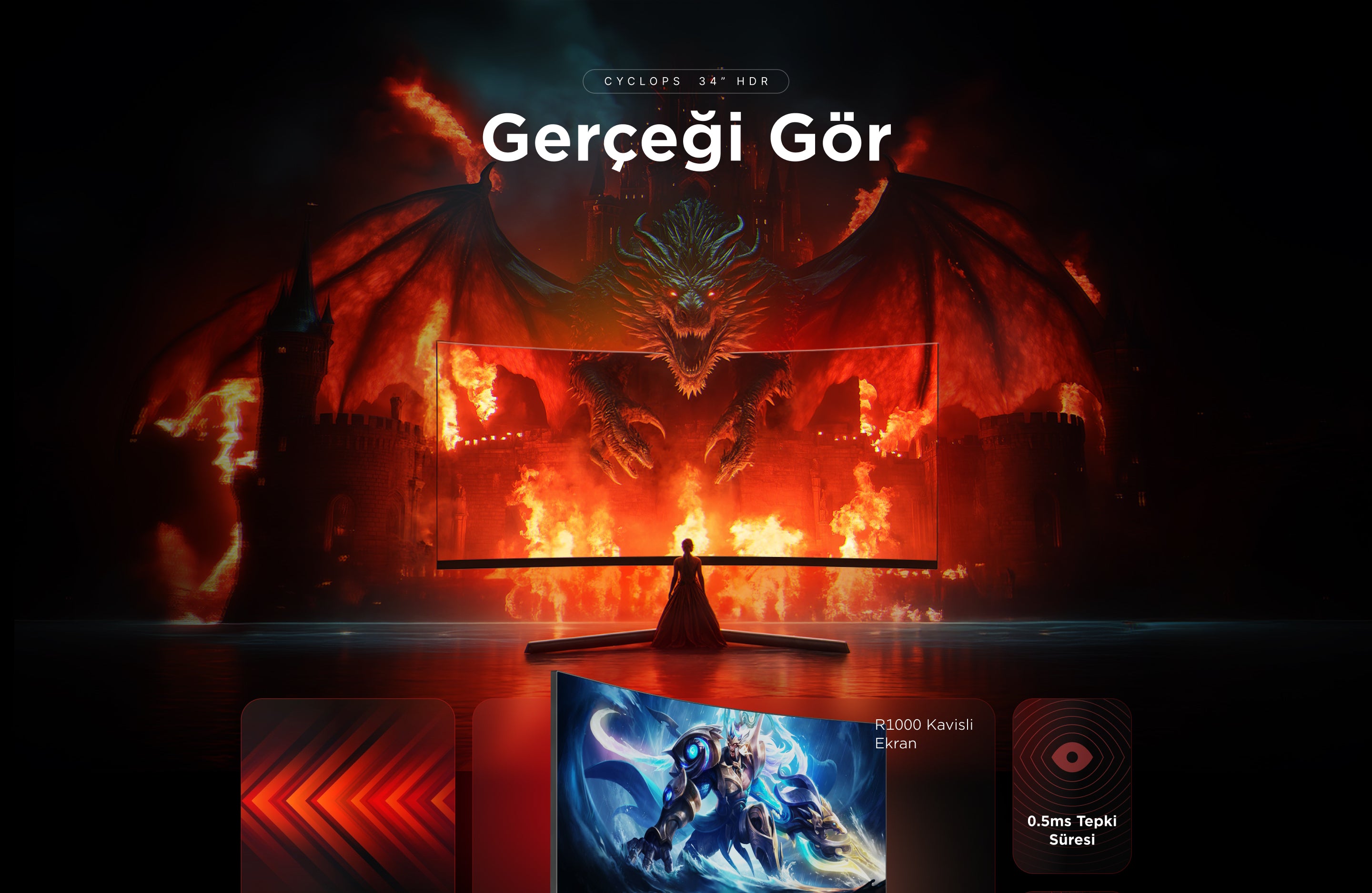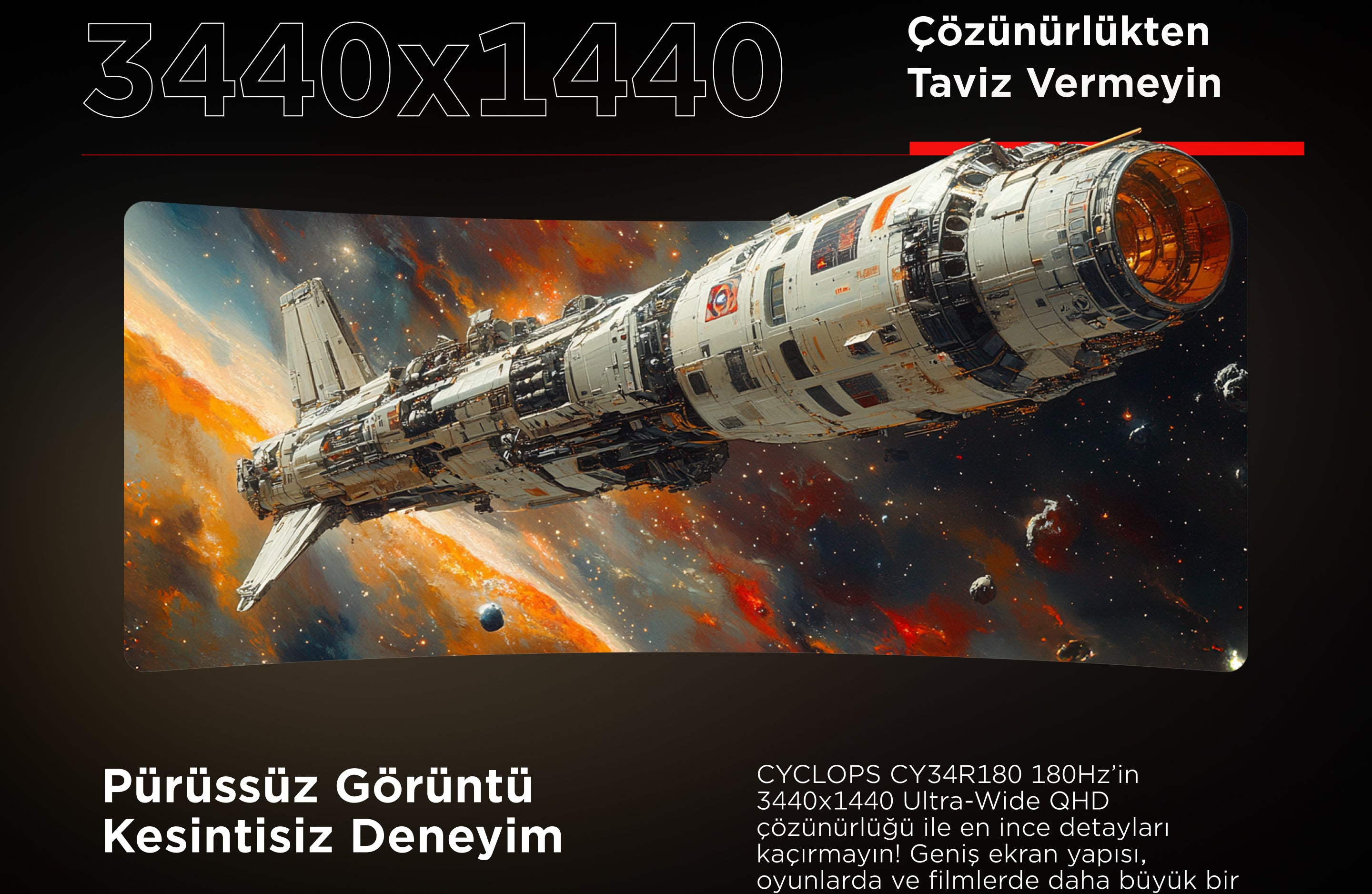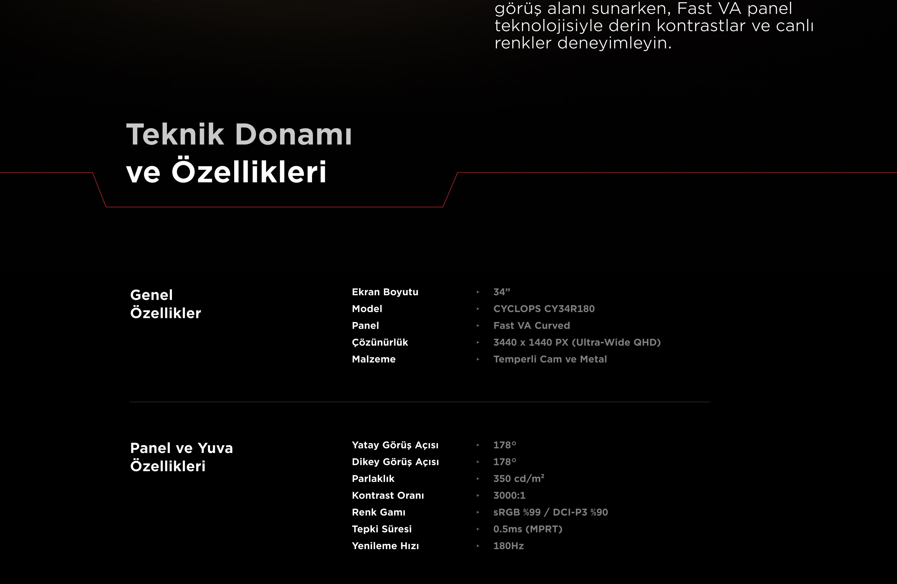 Cyclops CY34R180 34'' 180Hz Fast VA HDR Freesync Pivot PC Curved Gaming Monitor