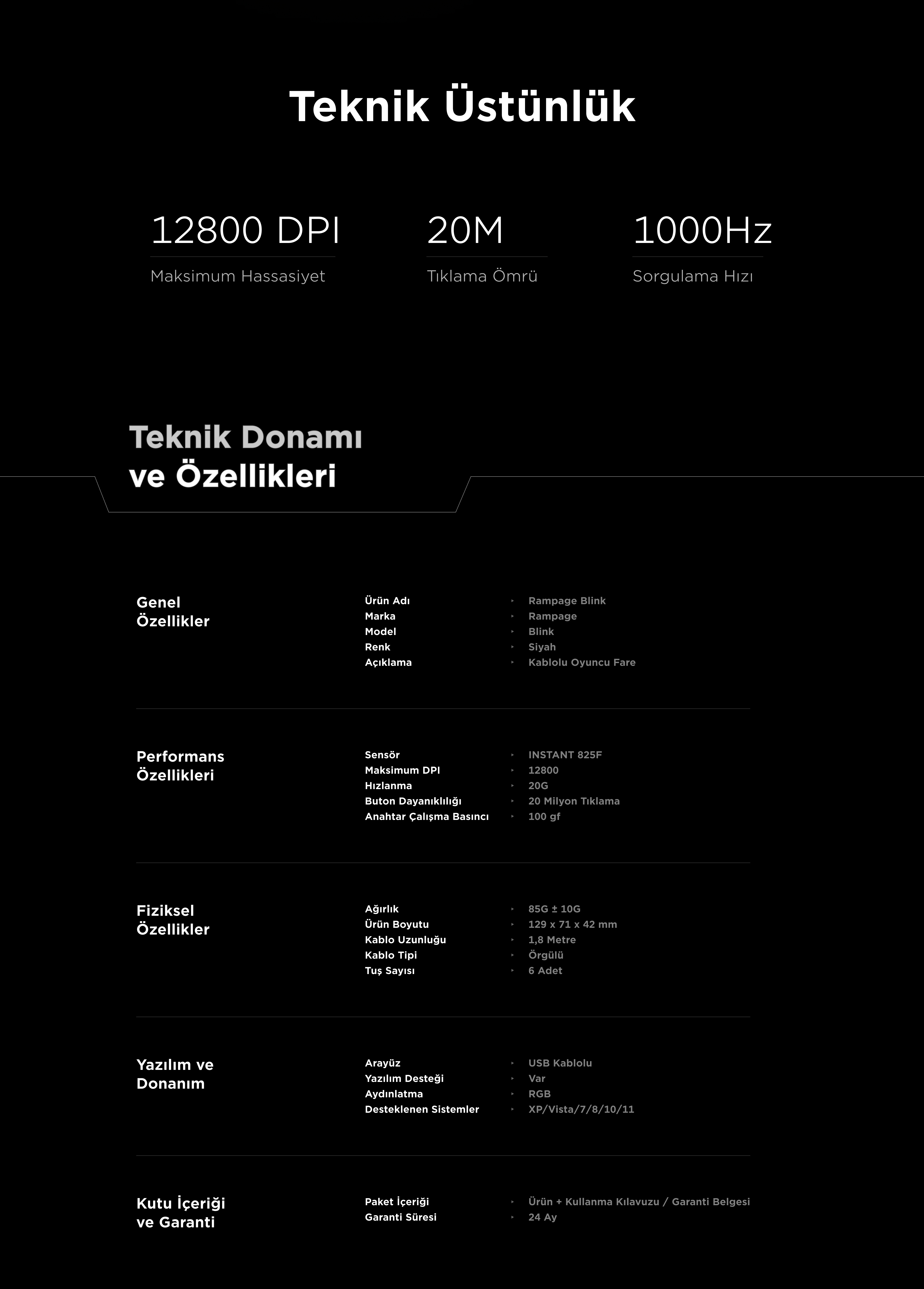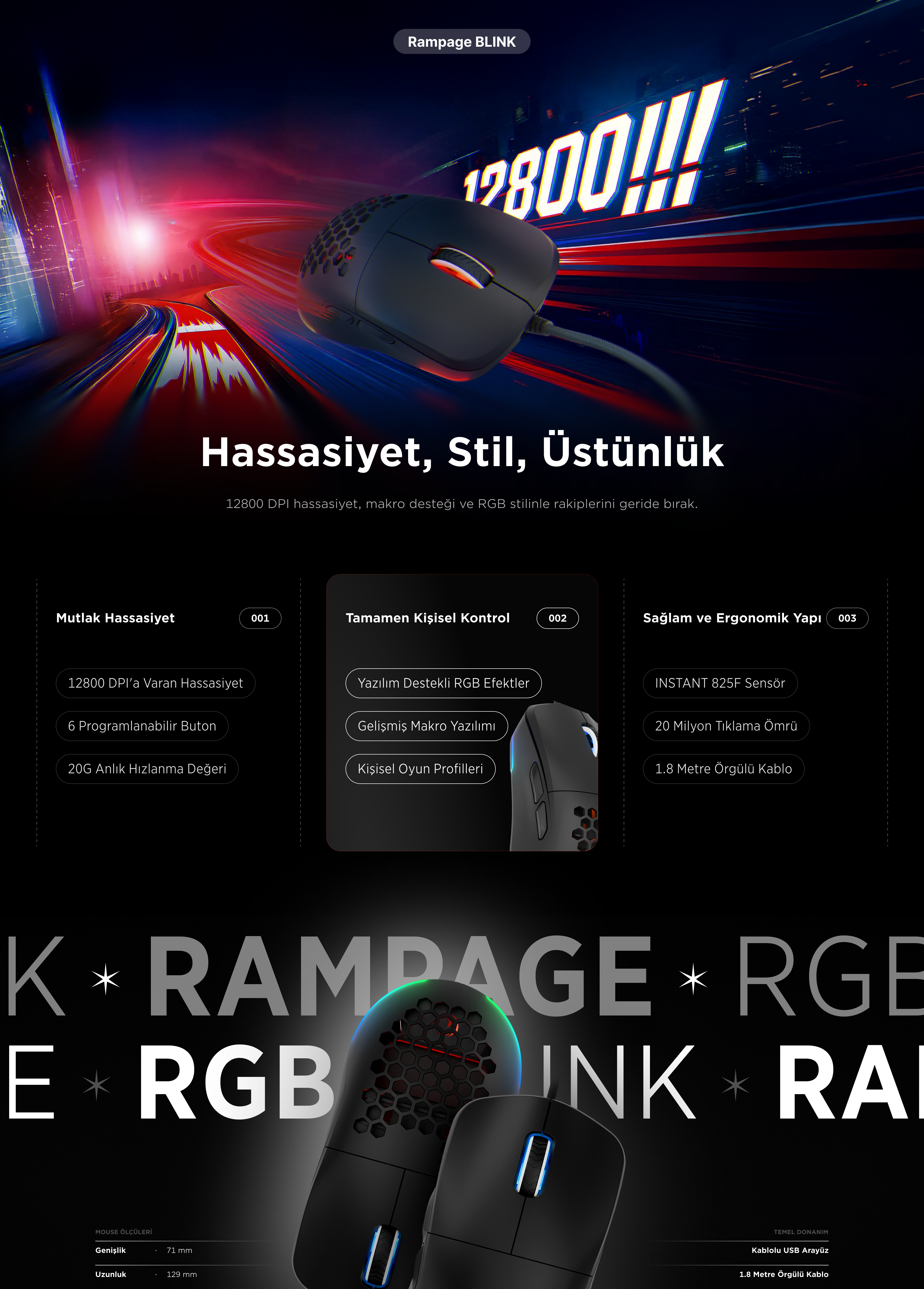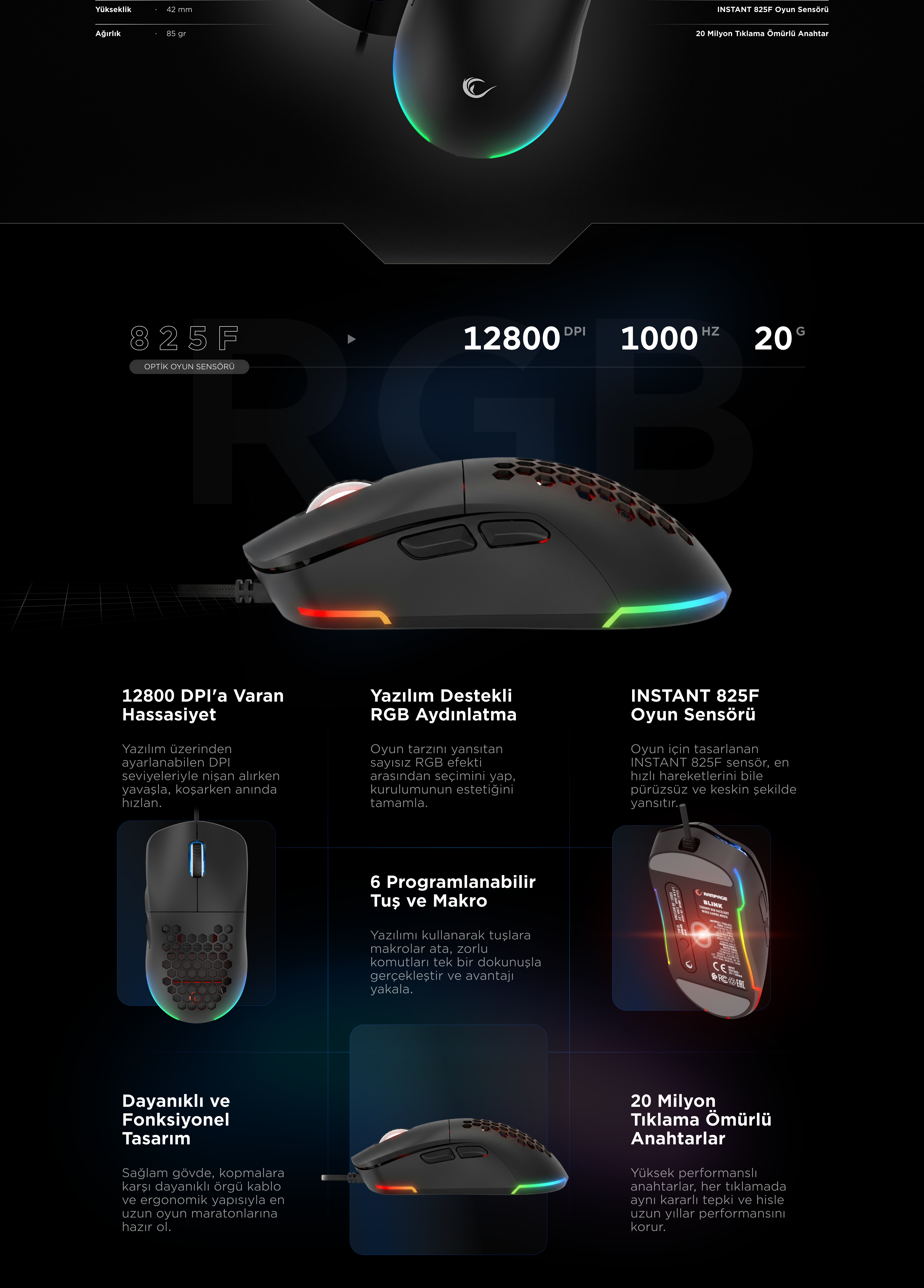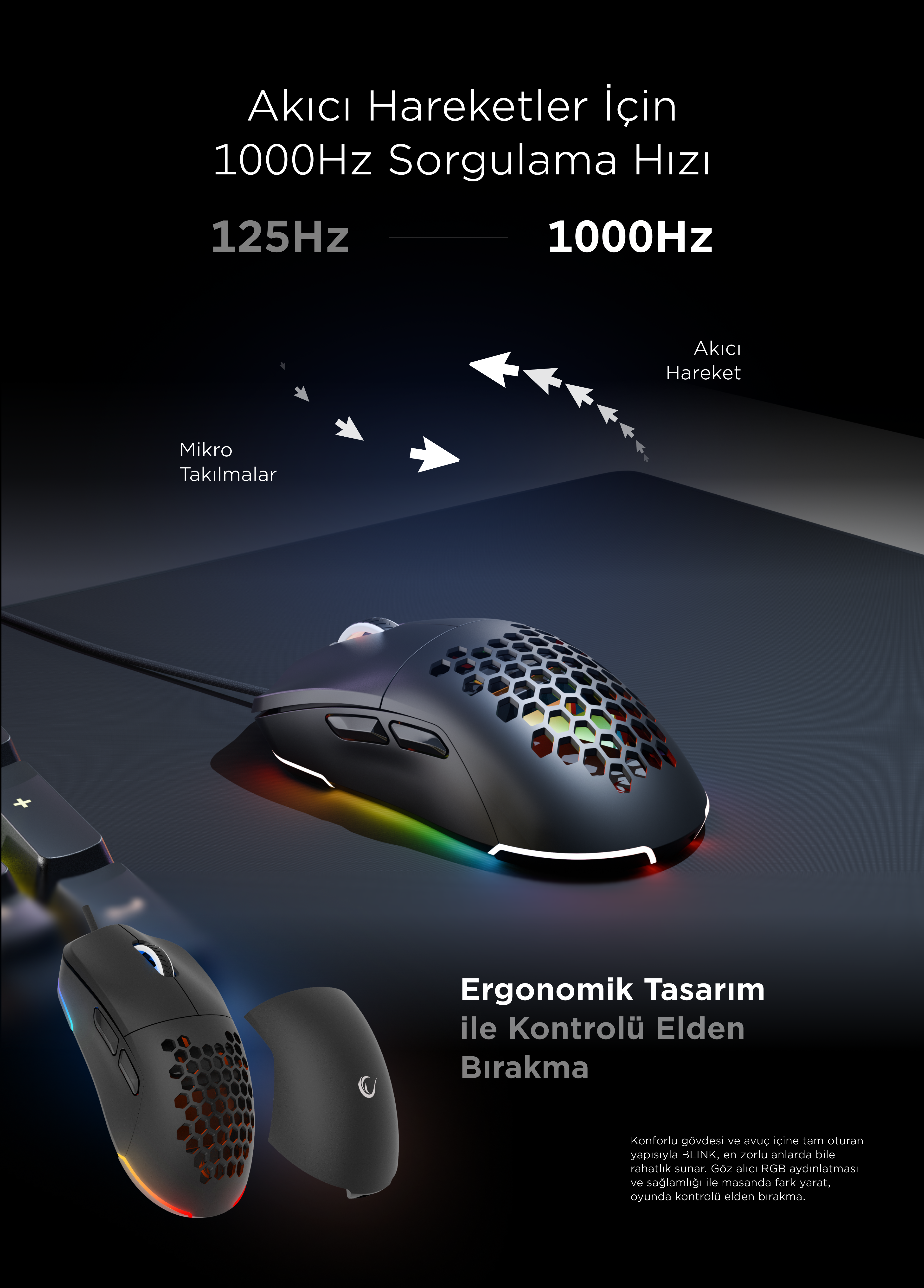 Blink 7 Macro Key RGB 12800 Dpi Gaming Mouse-Black