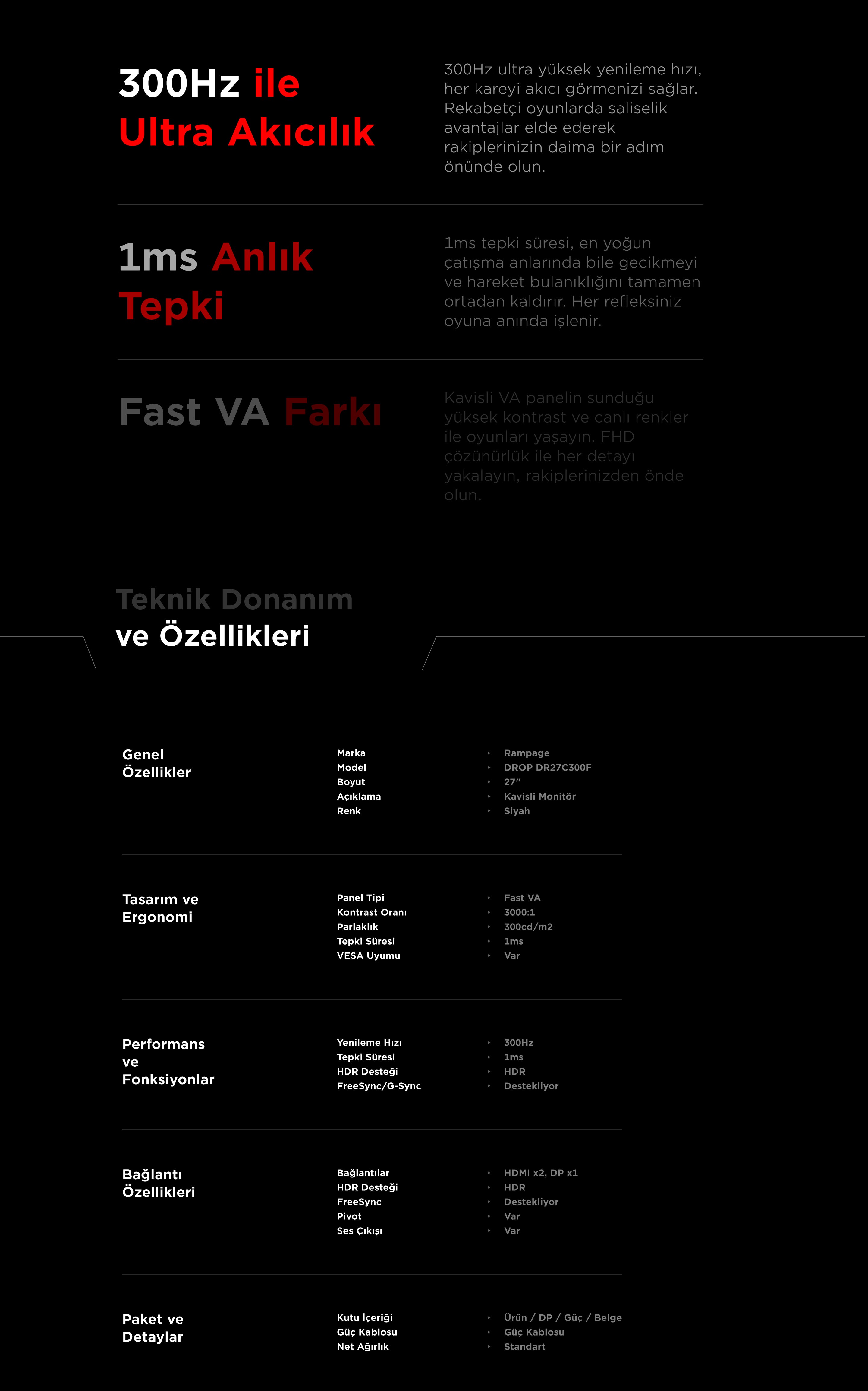 - 300Hz Yenileme Hızı