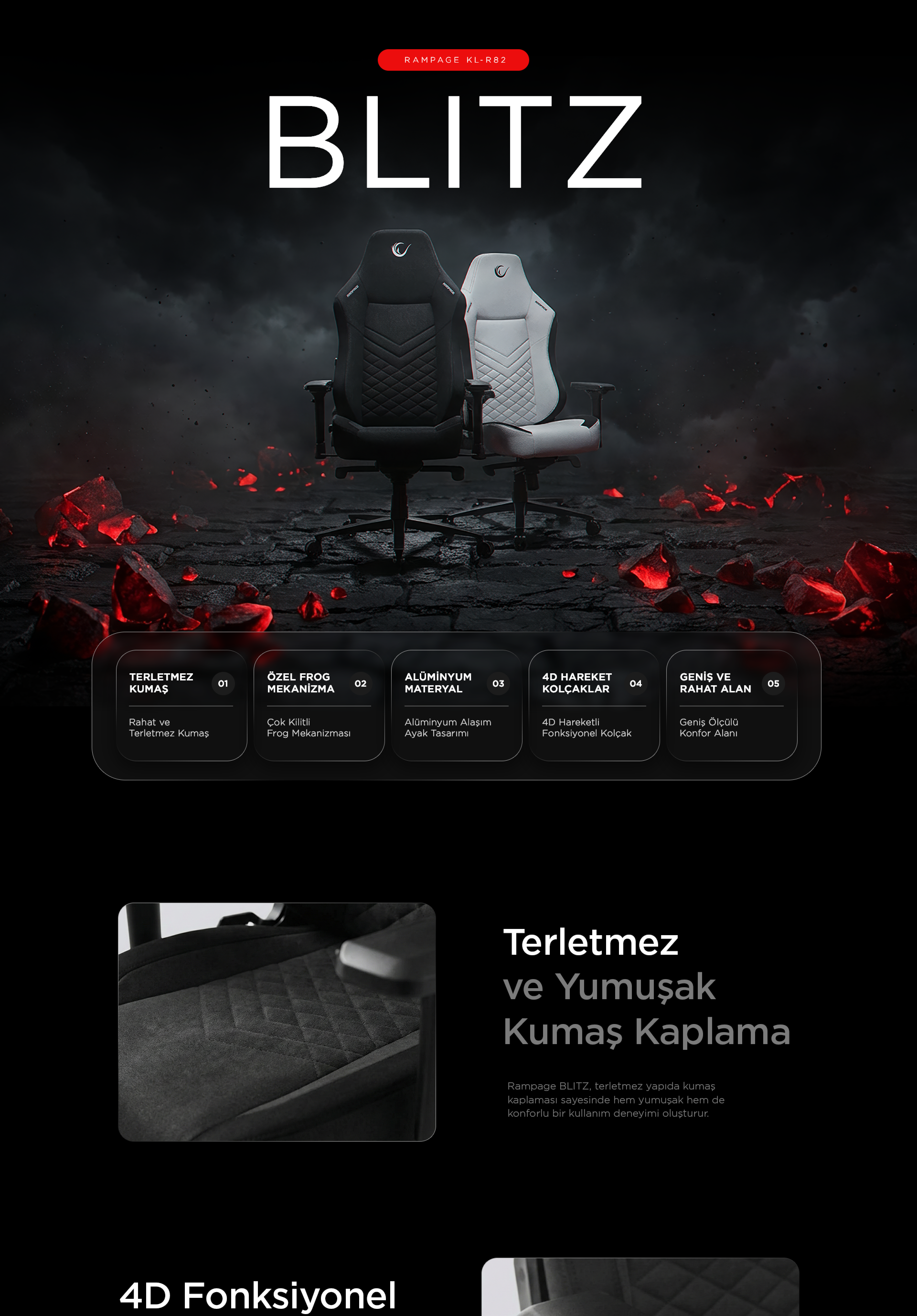 KL-R82 Blitz Anti-Sweat Fabric Adjustable Backrest Mechanism Gaming Chair-Gray/Black