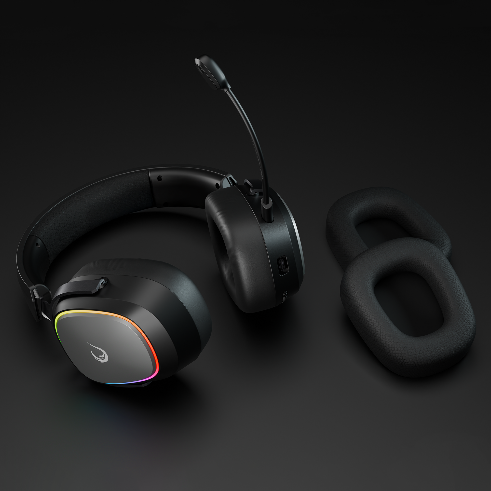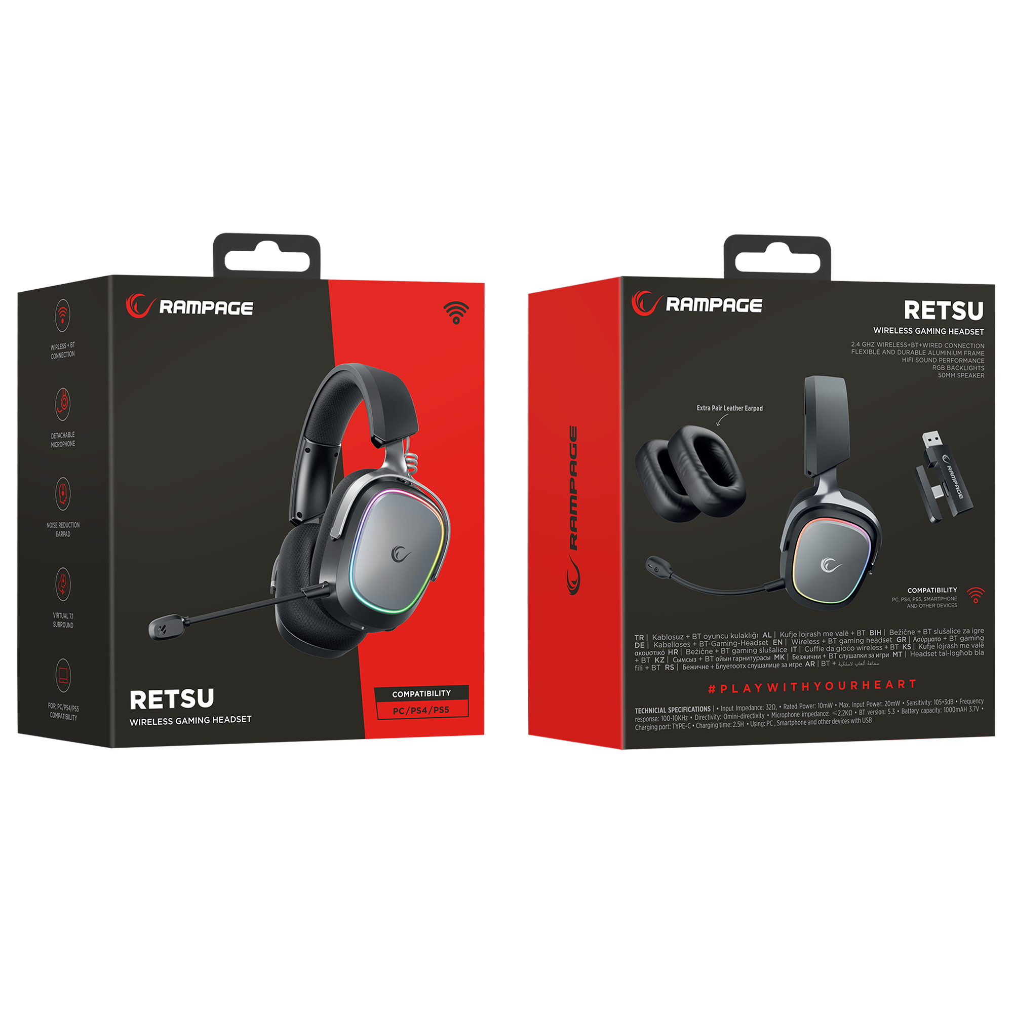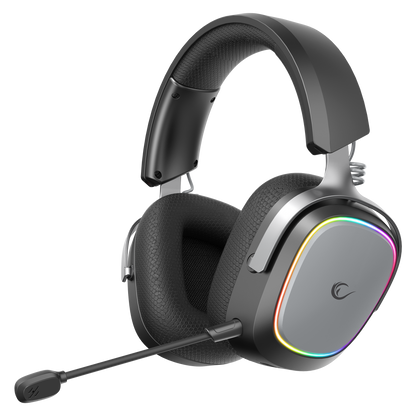 Retsu 2.4G+ Bluetooth Fabric and Leather Protein Earpad Gaming Headset with Microphone - Black/Gray