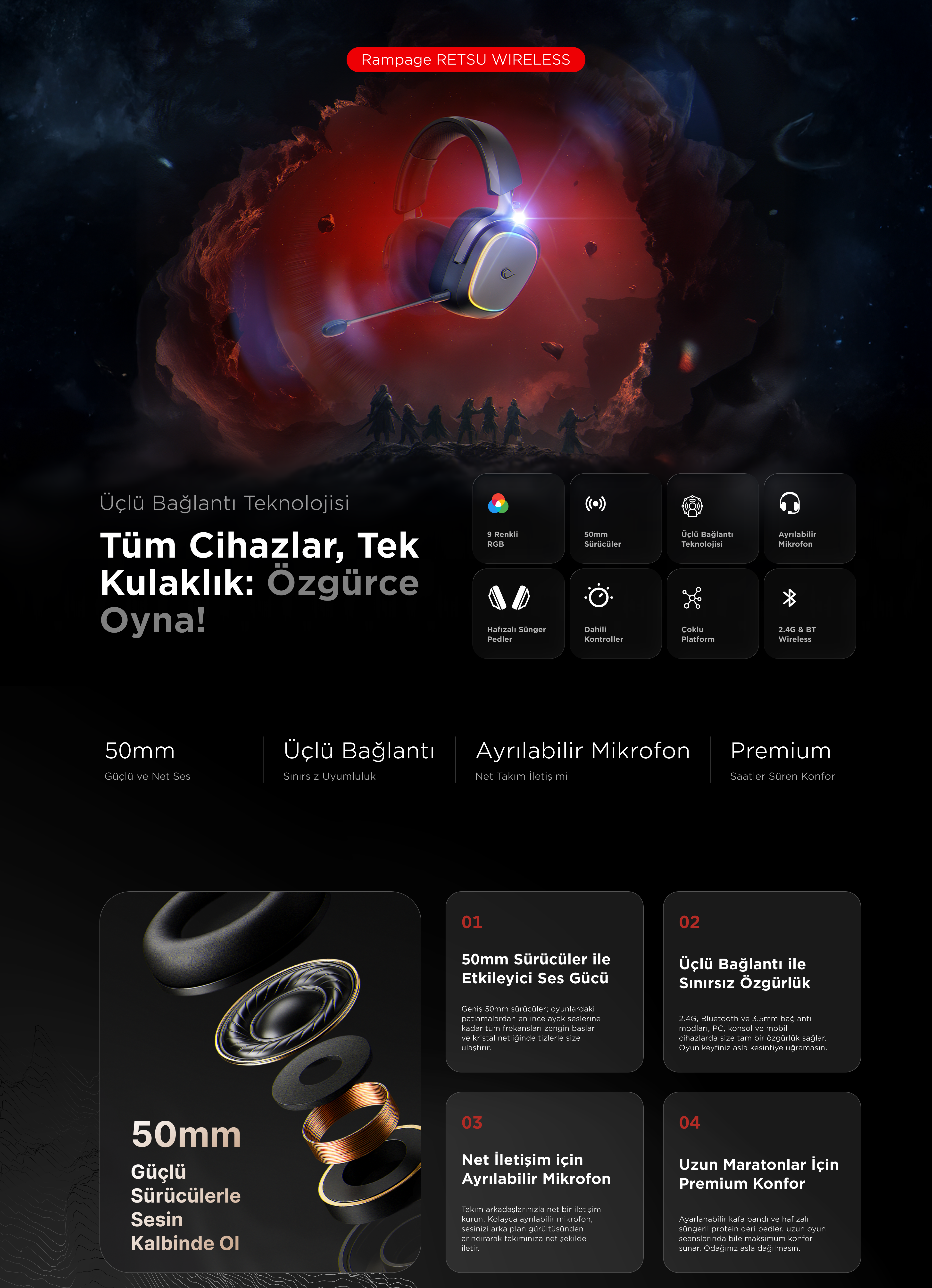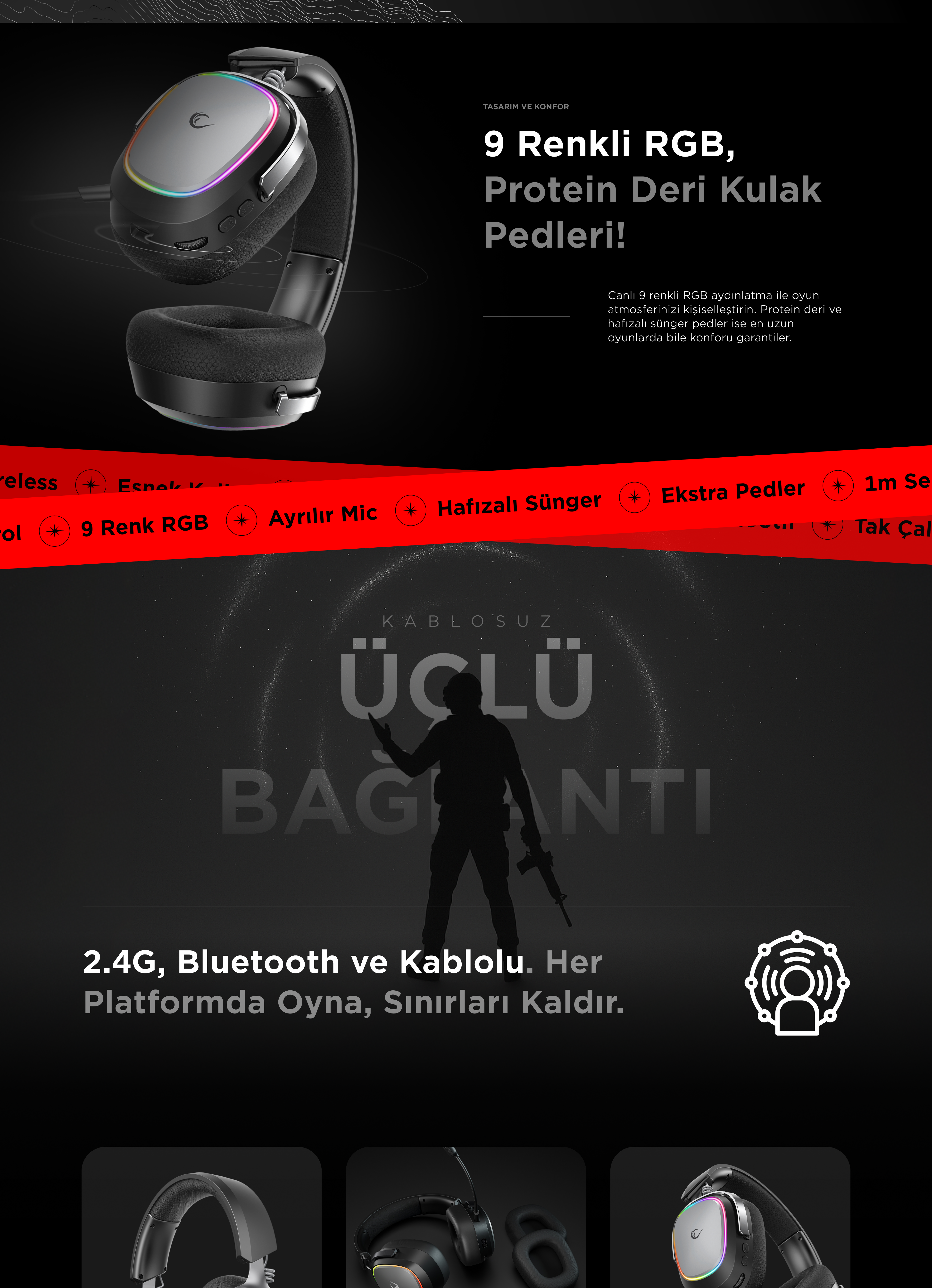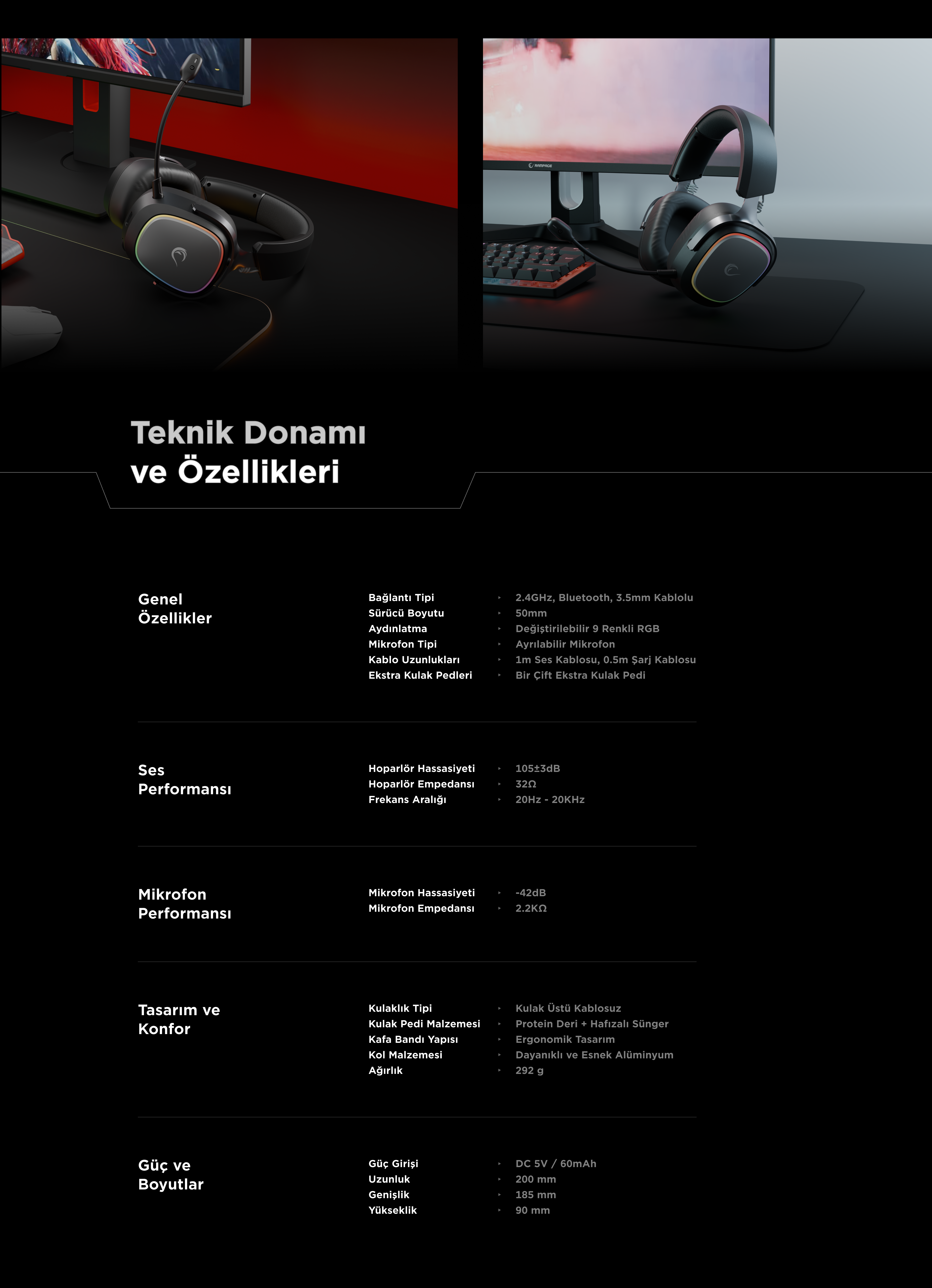 - 9 Farklı RGB Aydınlatma Modu ile Kişiselleştirilebilir Oyun Atmosferi