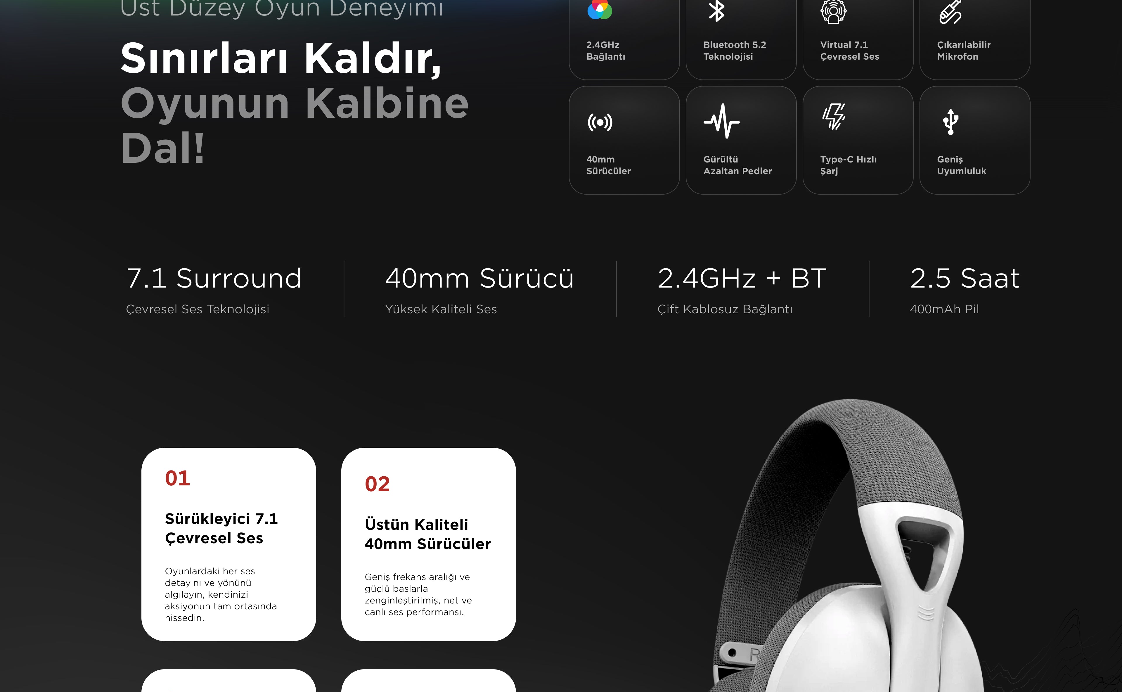 - 2.4GHz Receiver+Bluetooth 7.1 Surround