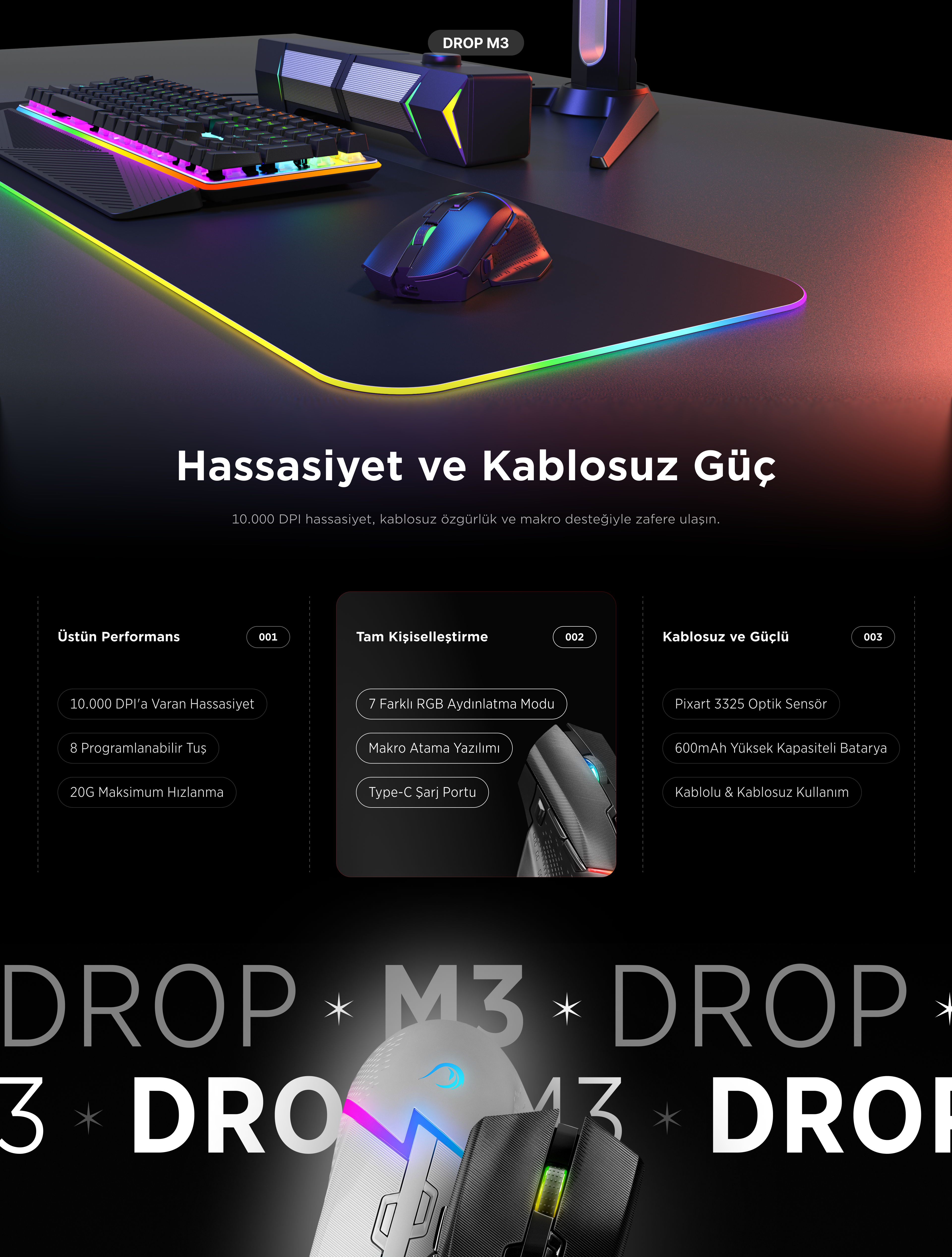 Drop M3 RGB 10000 Dpi Wireless Gaming Mouse-Black
