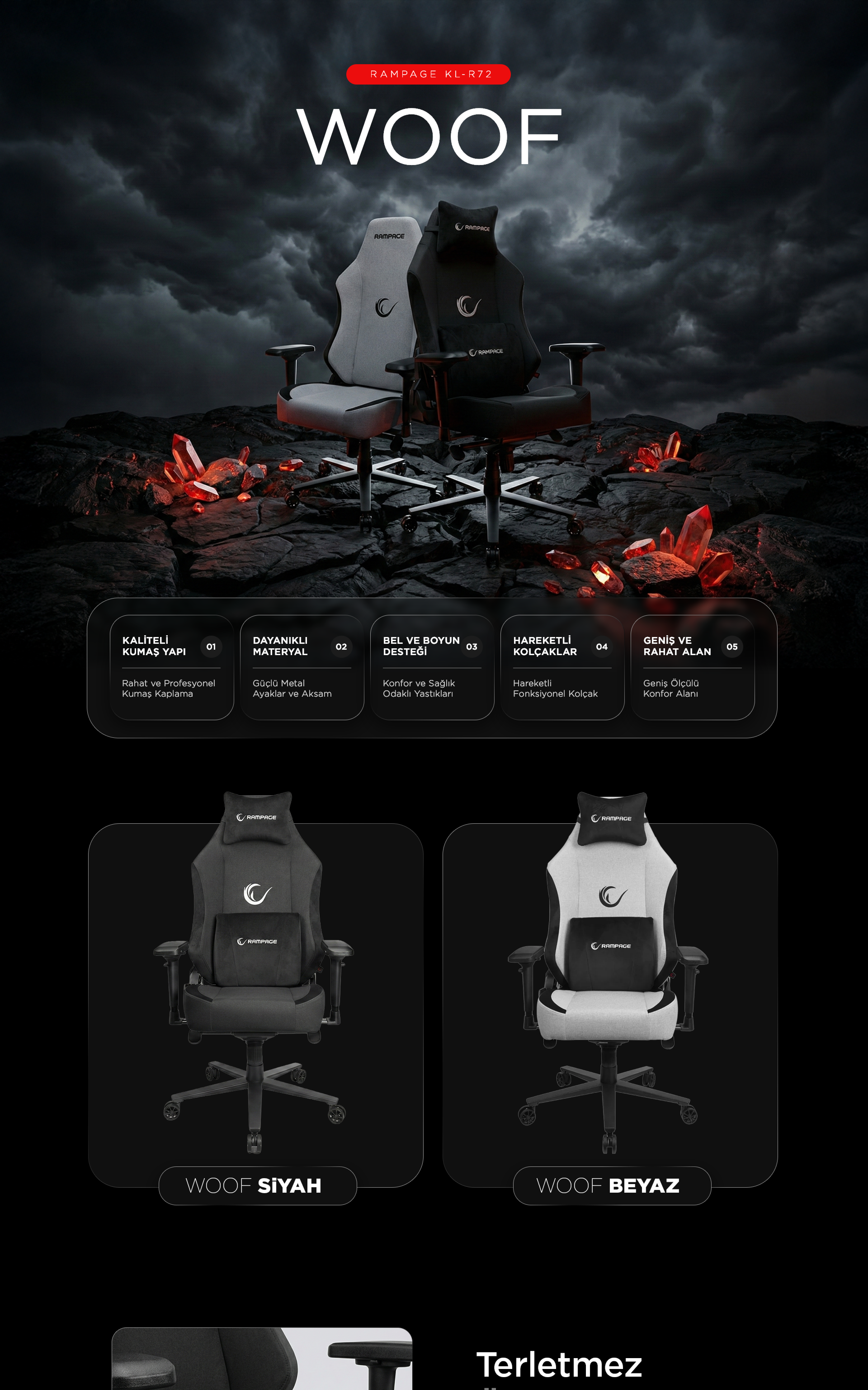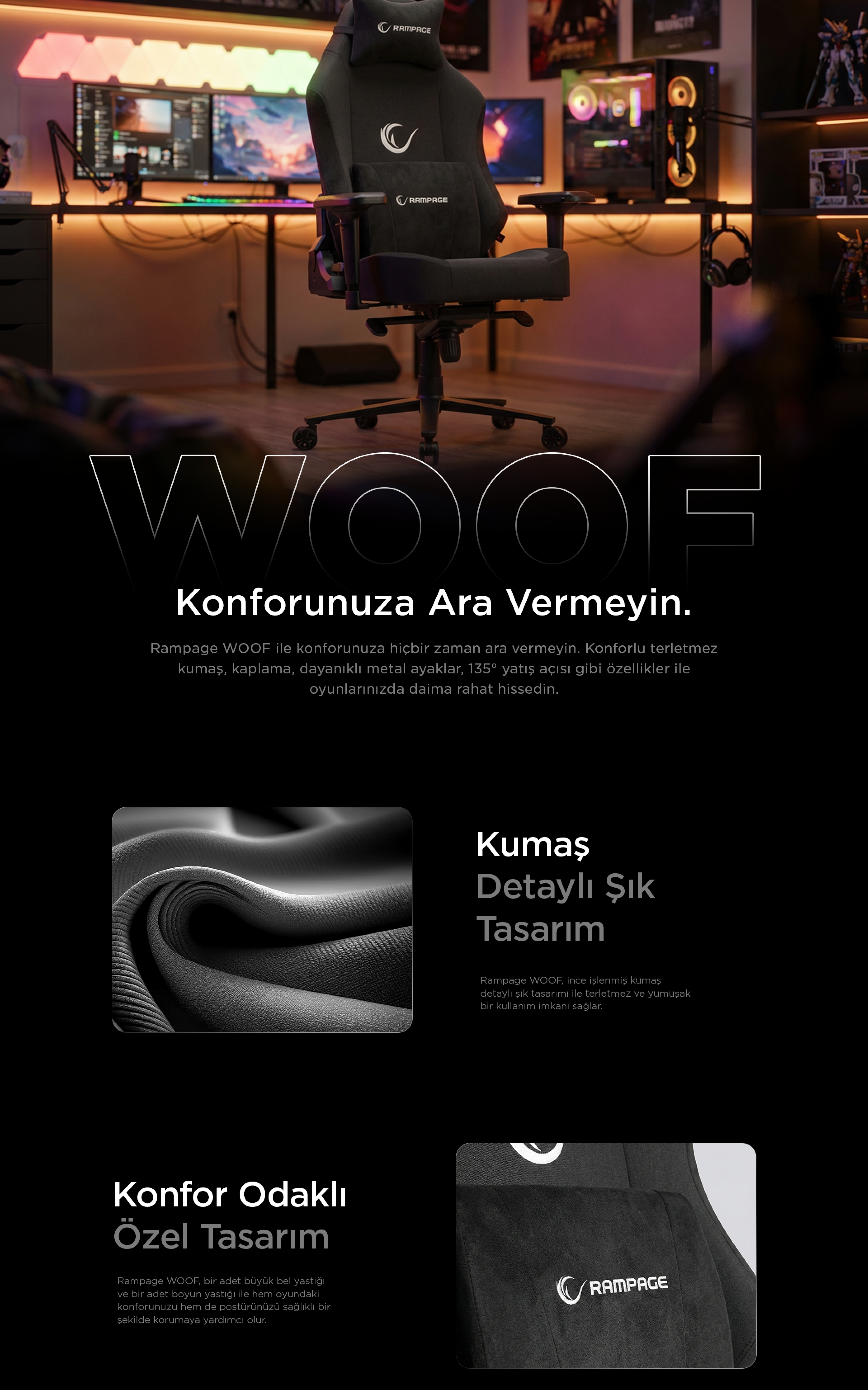KL-R72 Woof High-End Non-Sweating Fabric Gaming Chair-Gray/Black