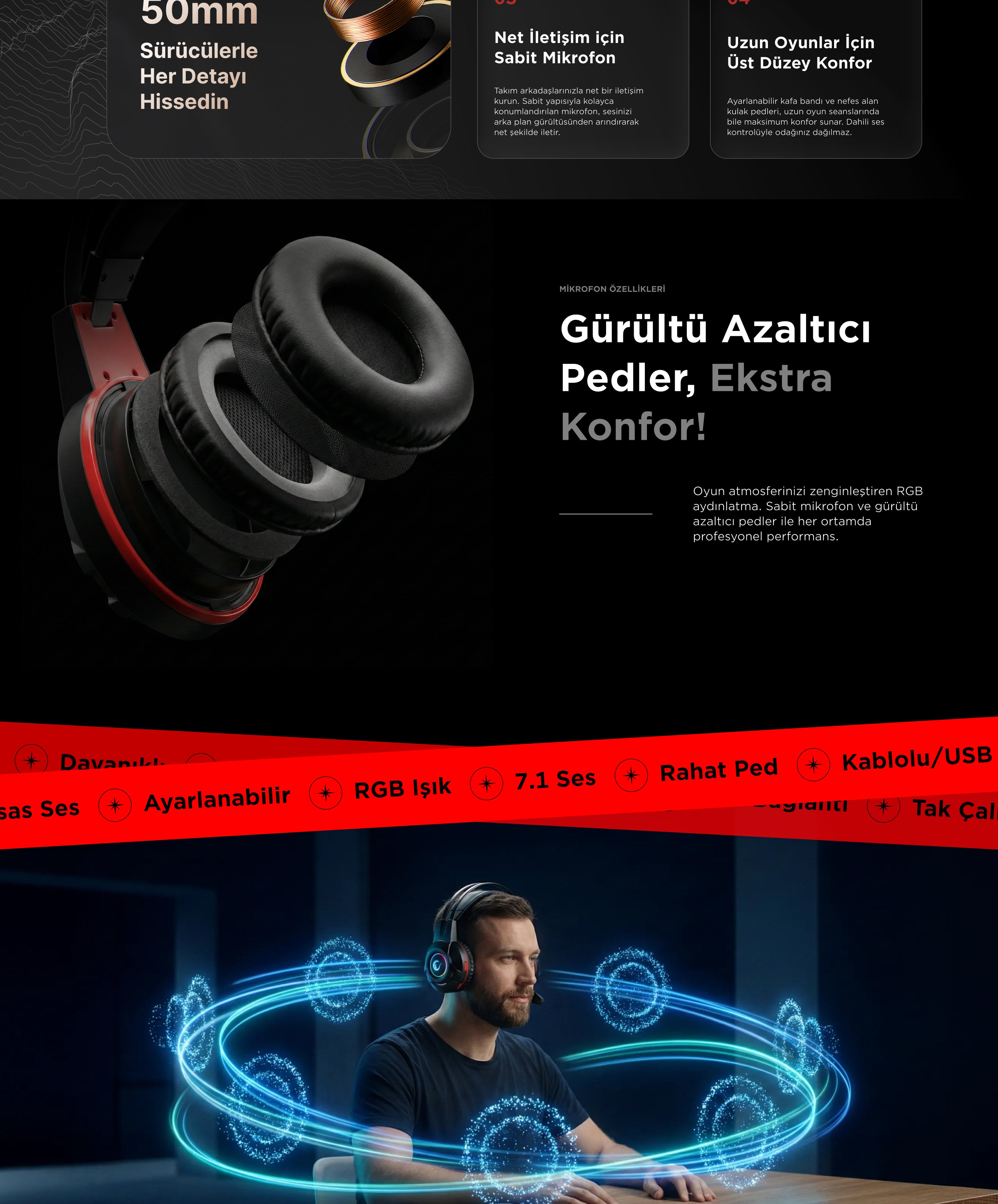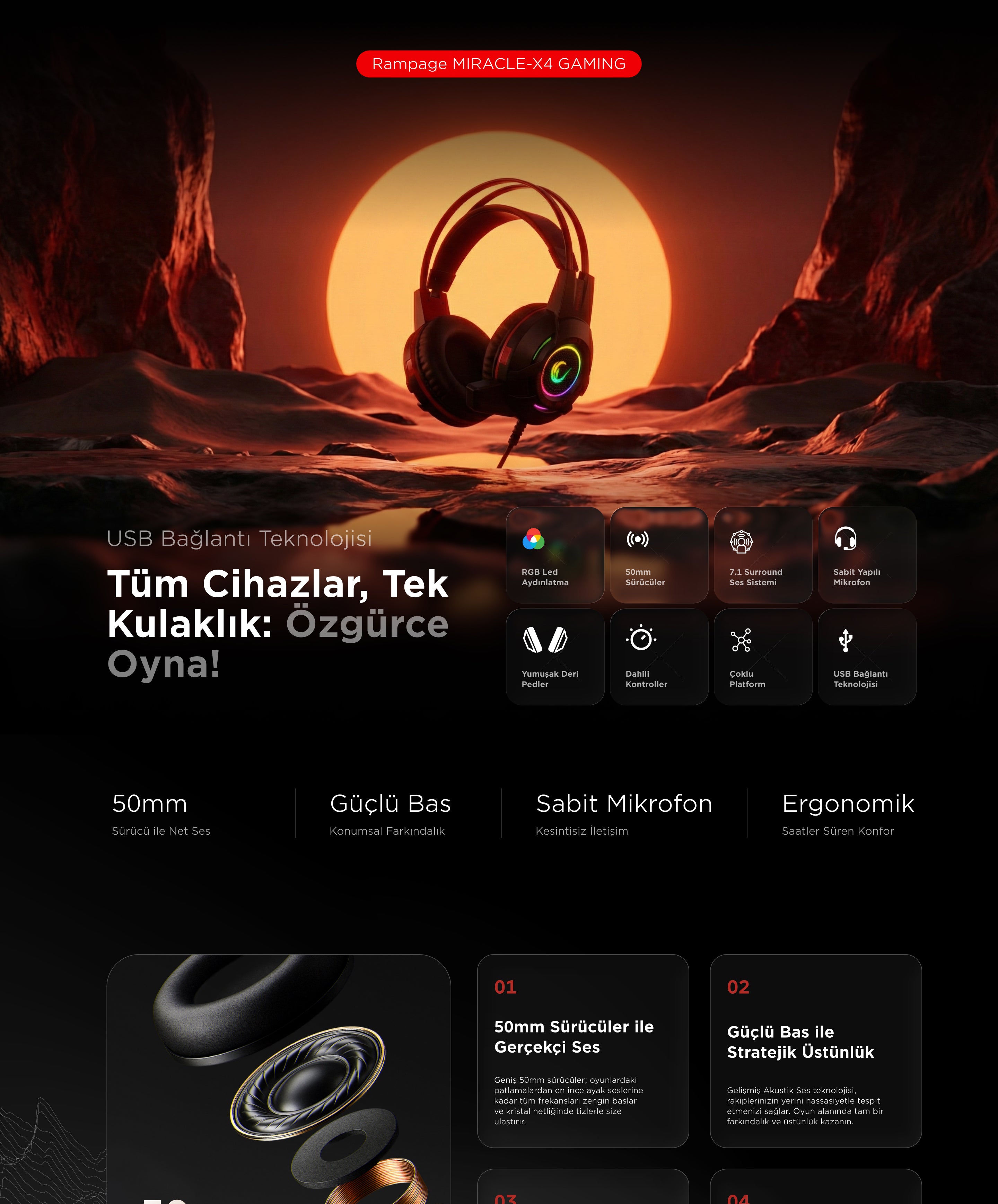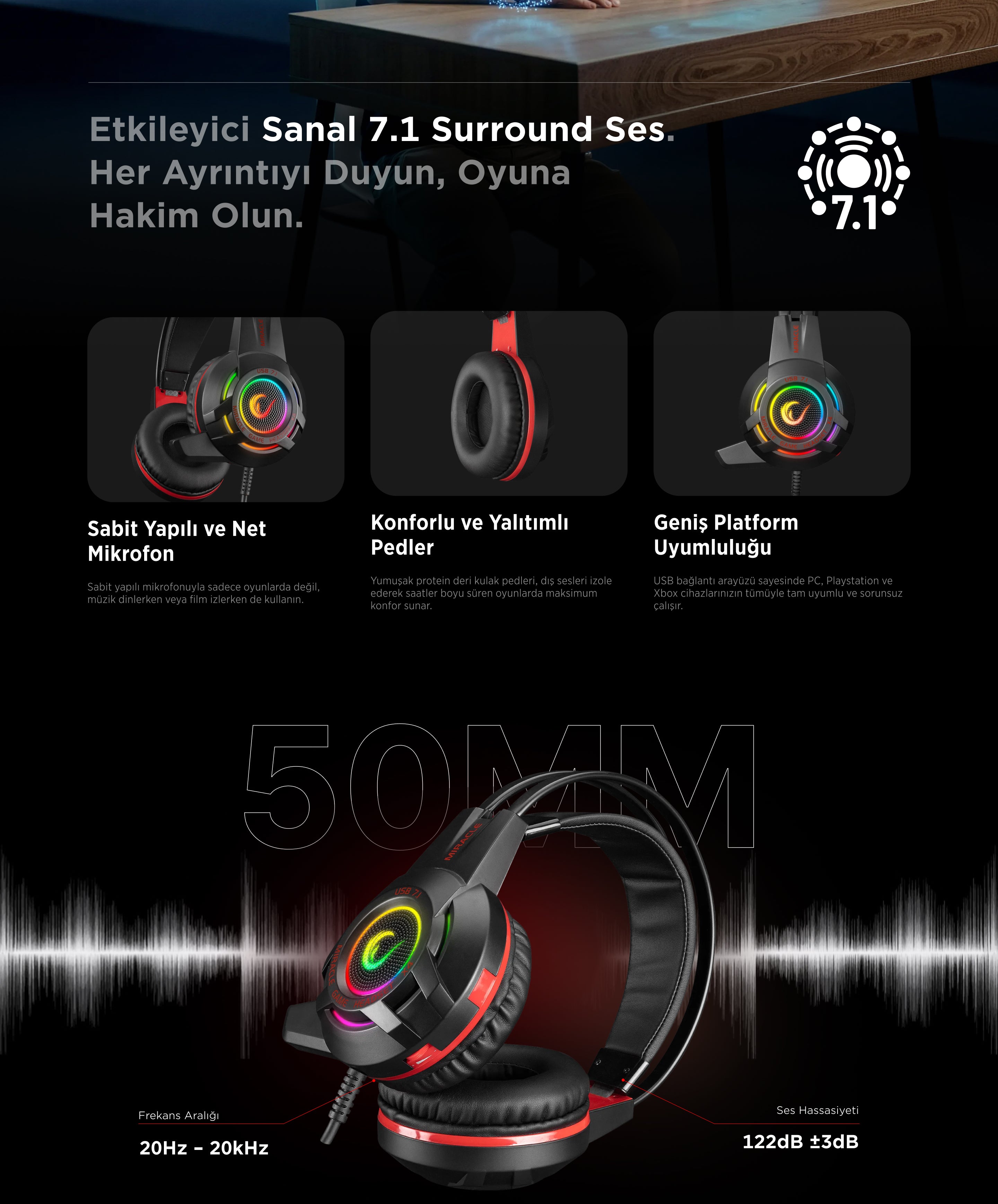 Miracle X4 RGB 7.1 Gaming Headset-Red/Black