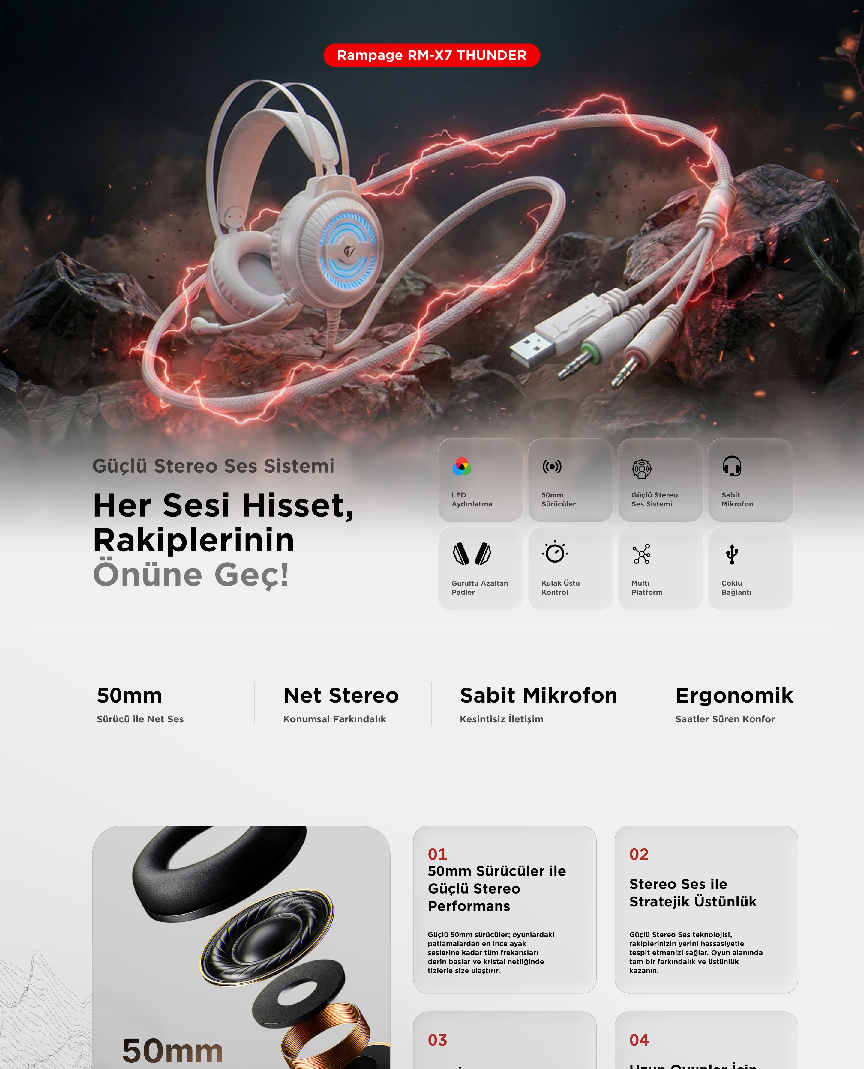 Rm-K29 Thunder 3.5mm Gaming Headset-White