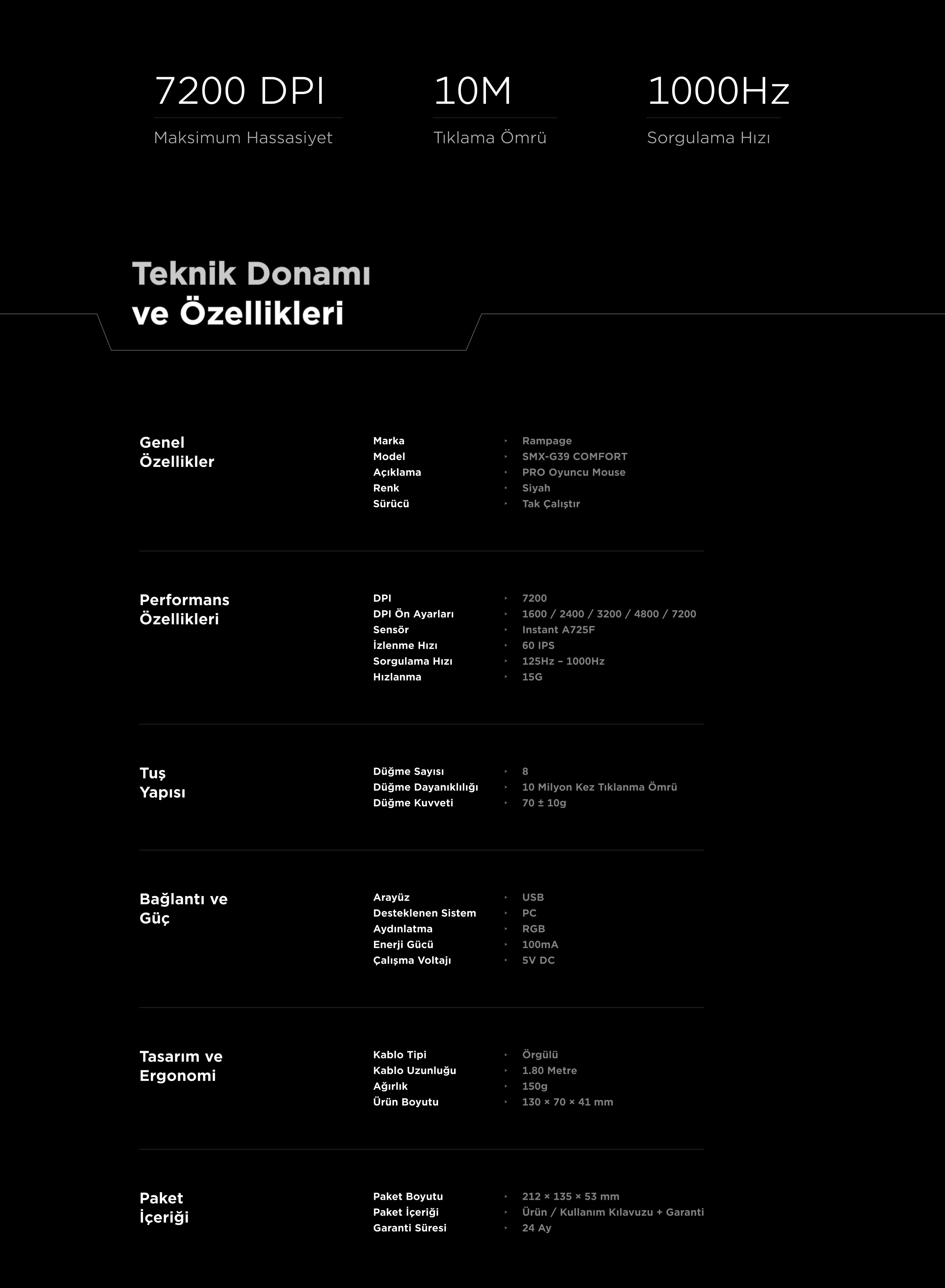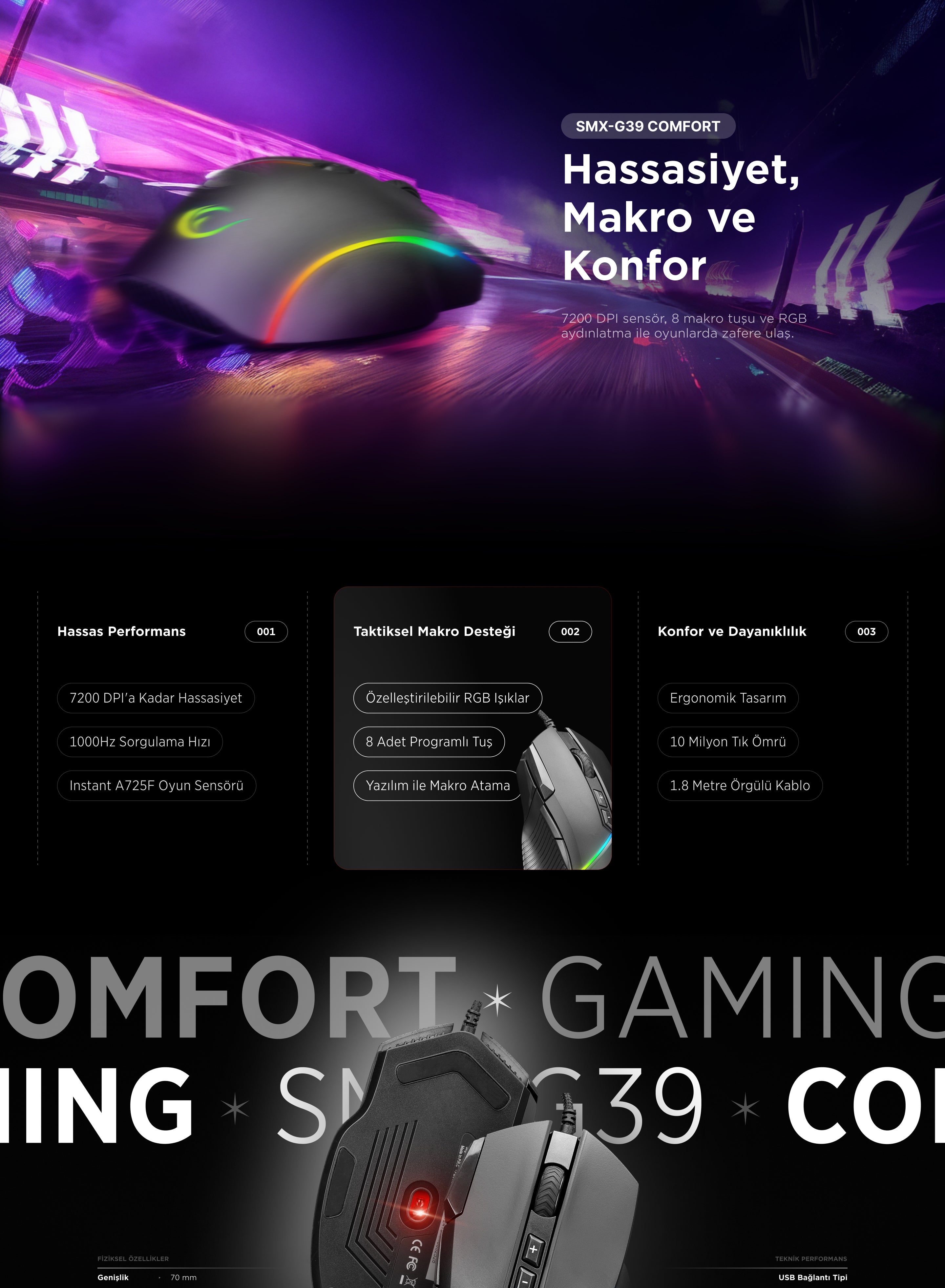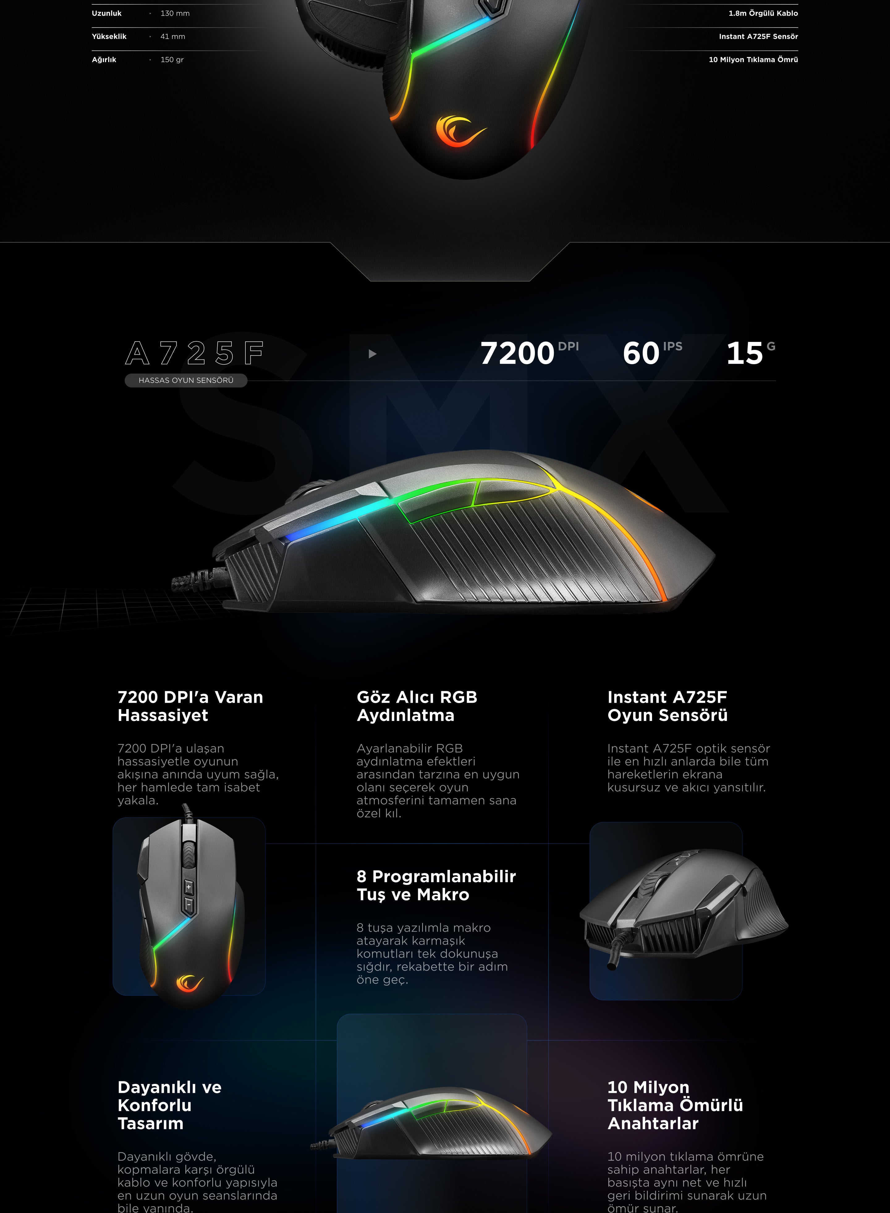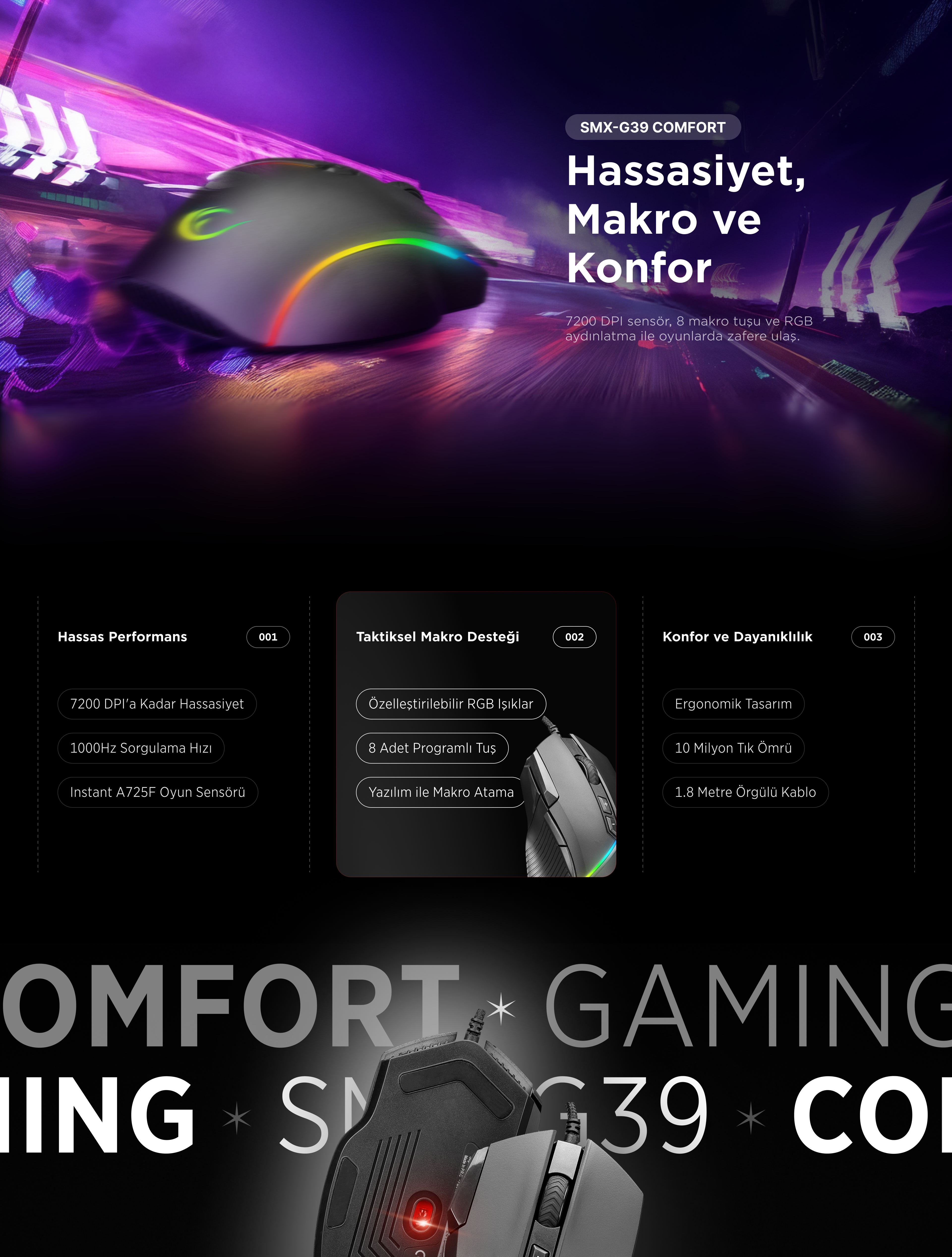 Smx-G39 Comfort 8 Macro + Extra Shooting Key RGB 12800 Dpi Gaming Mouse