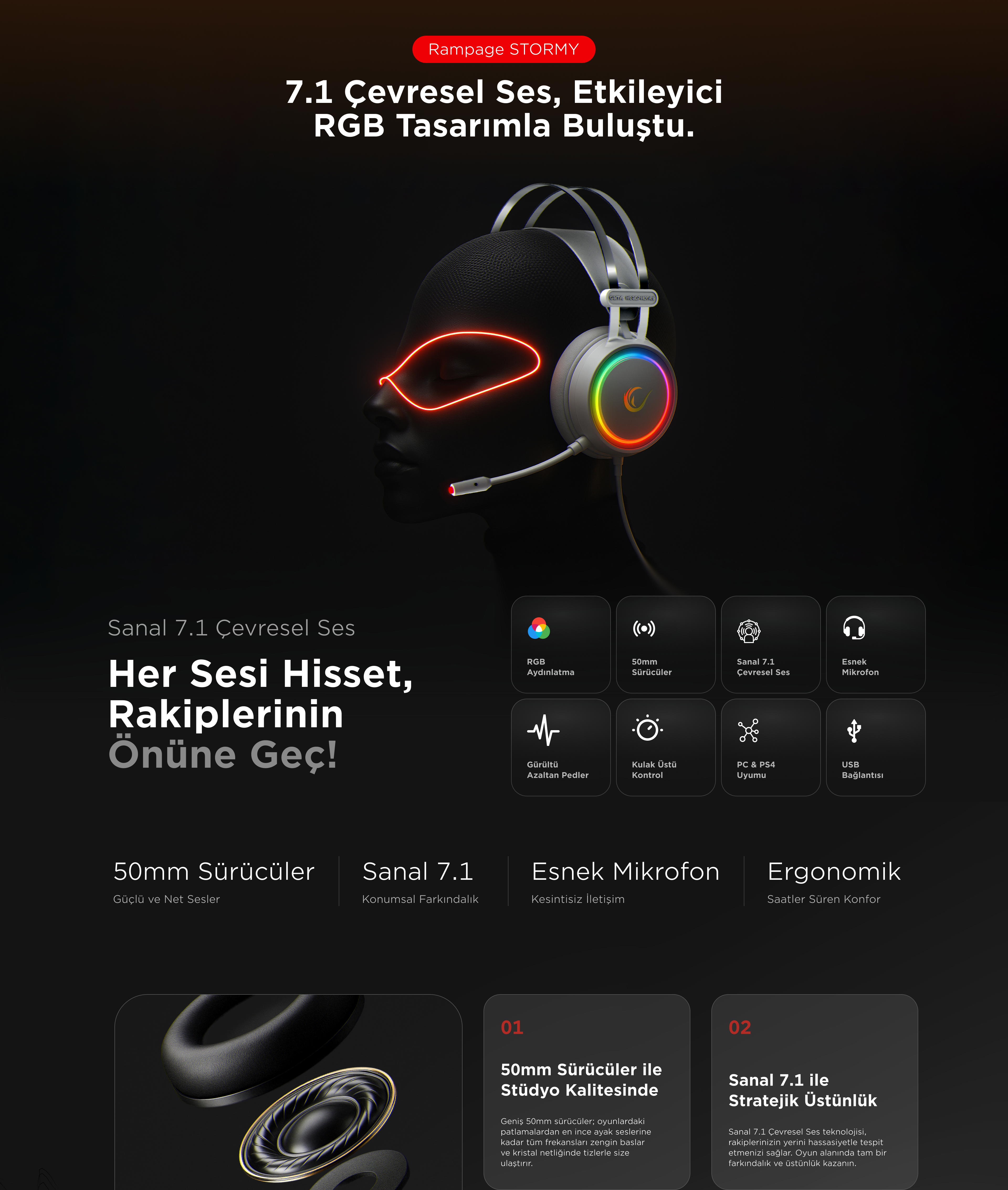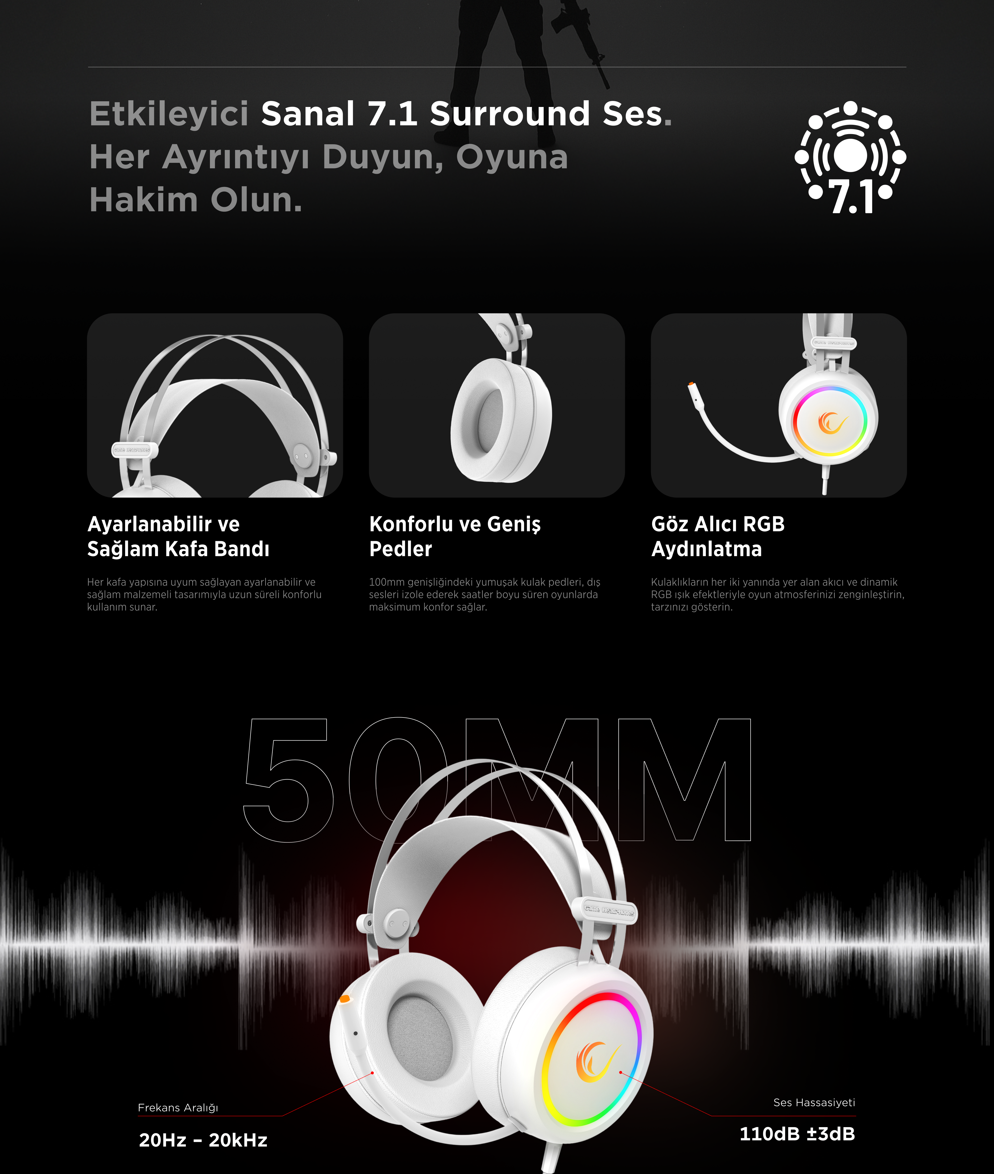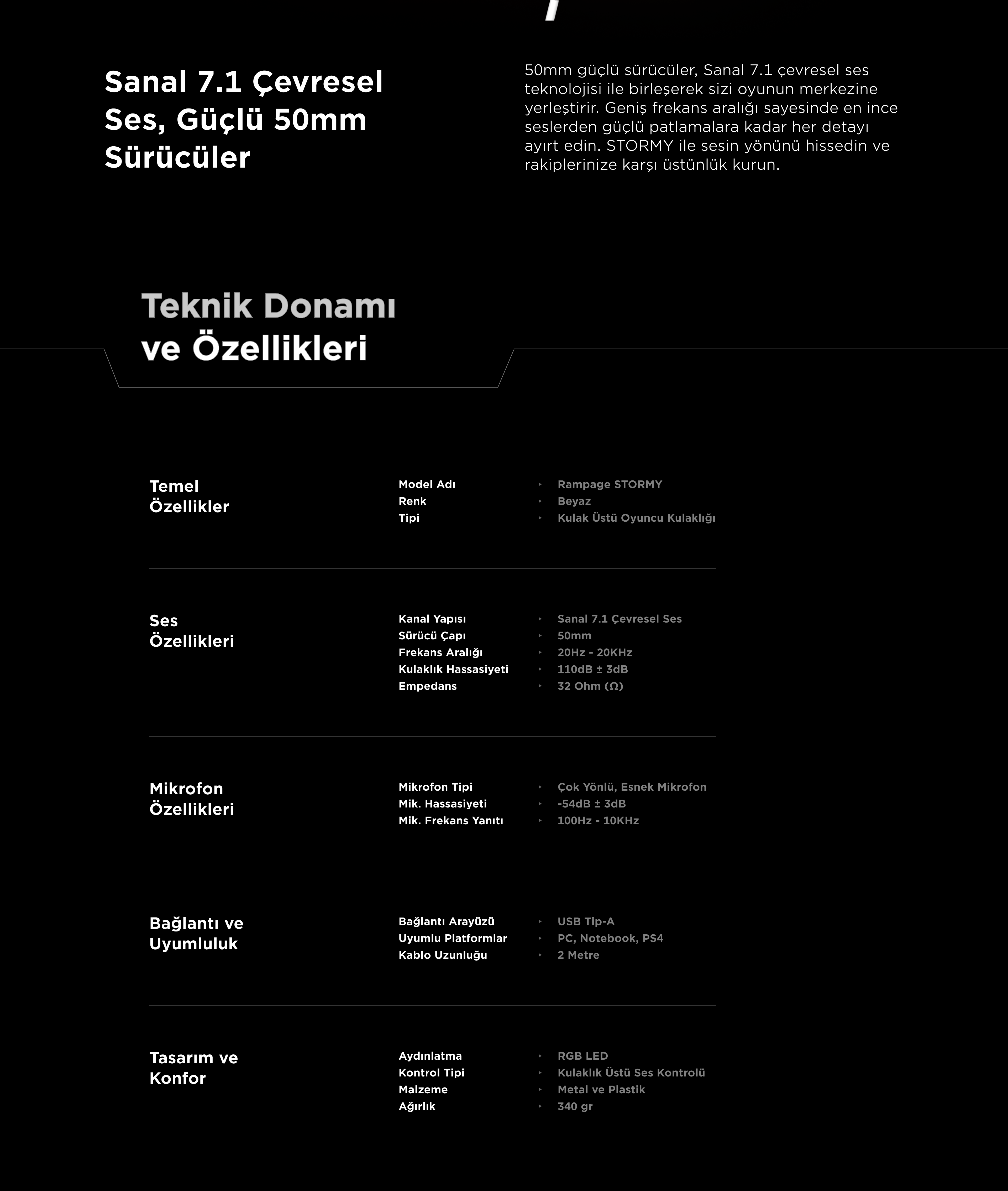 Stormy RGB 7.1 Gaming Headset-White