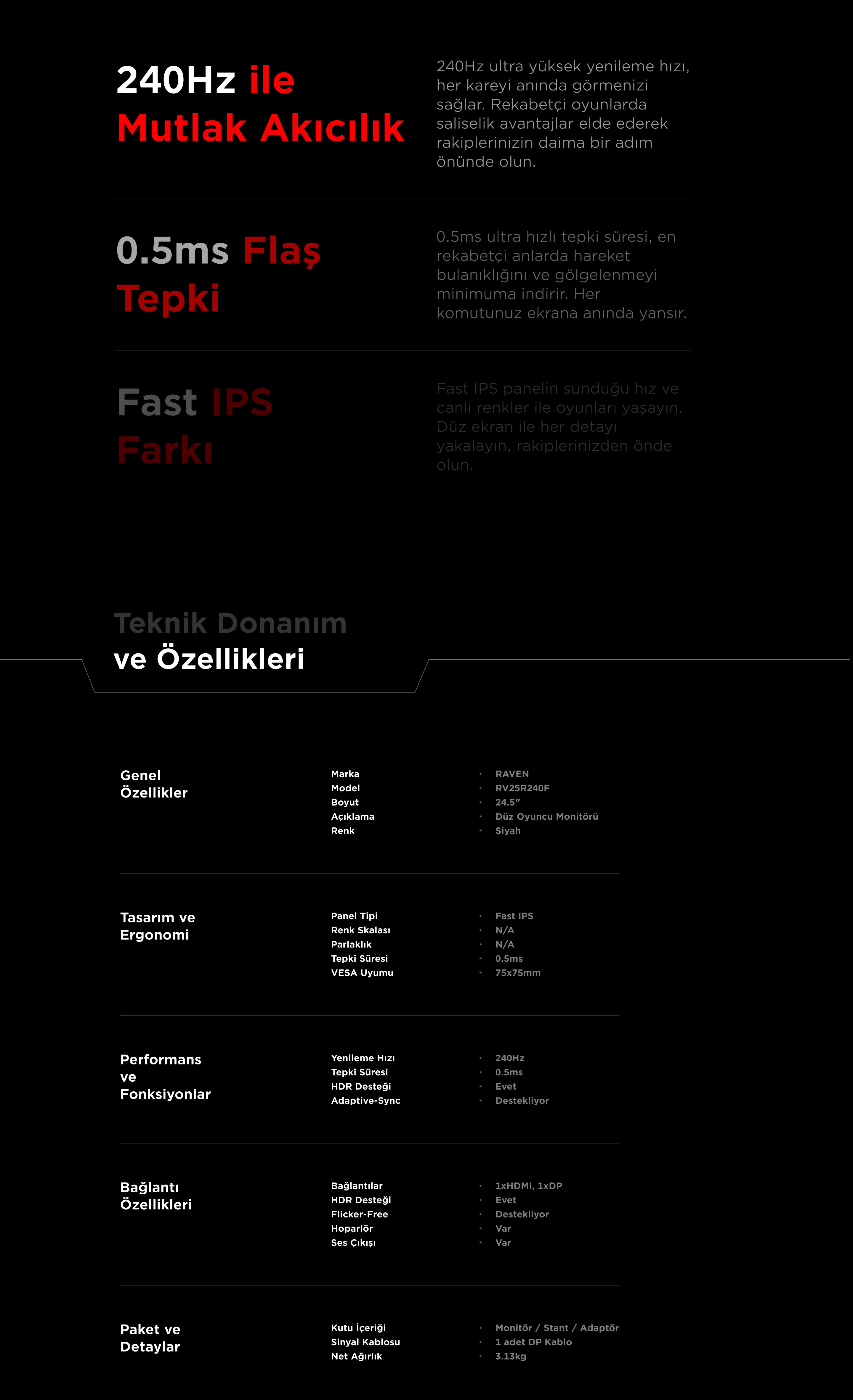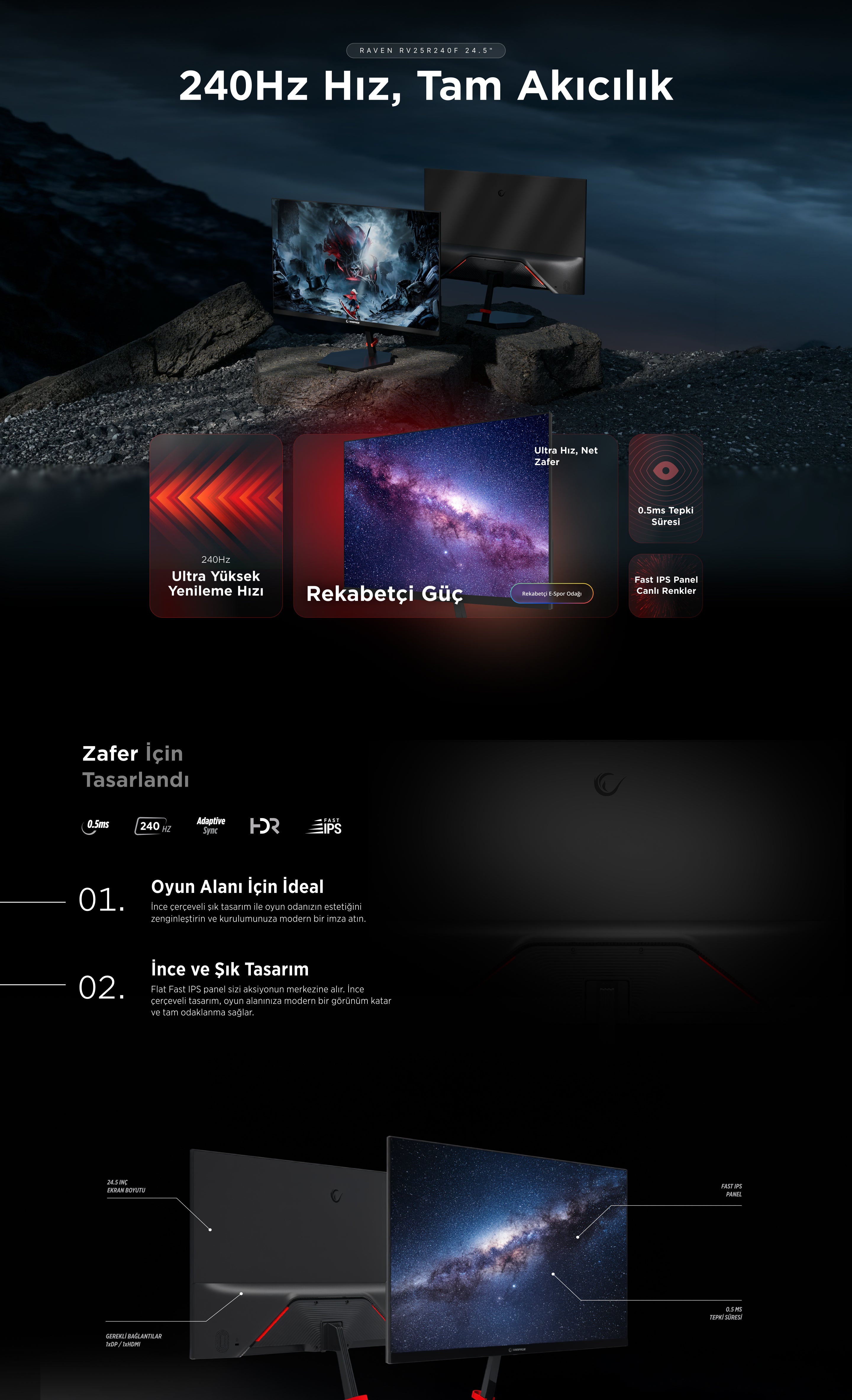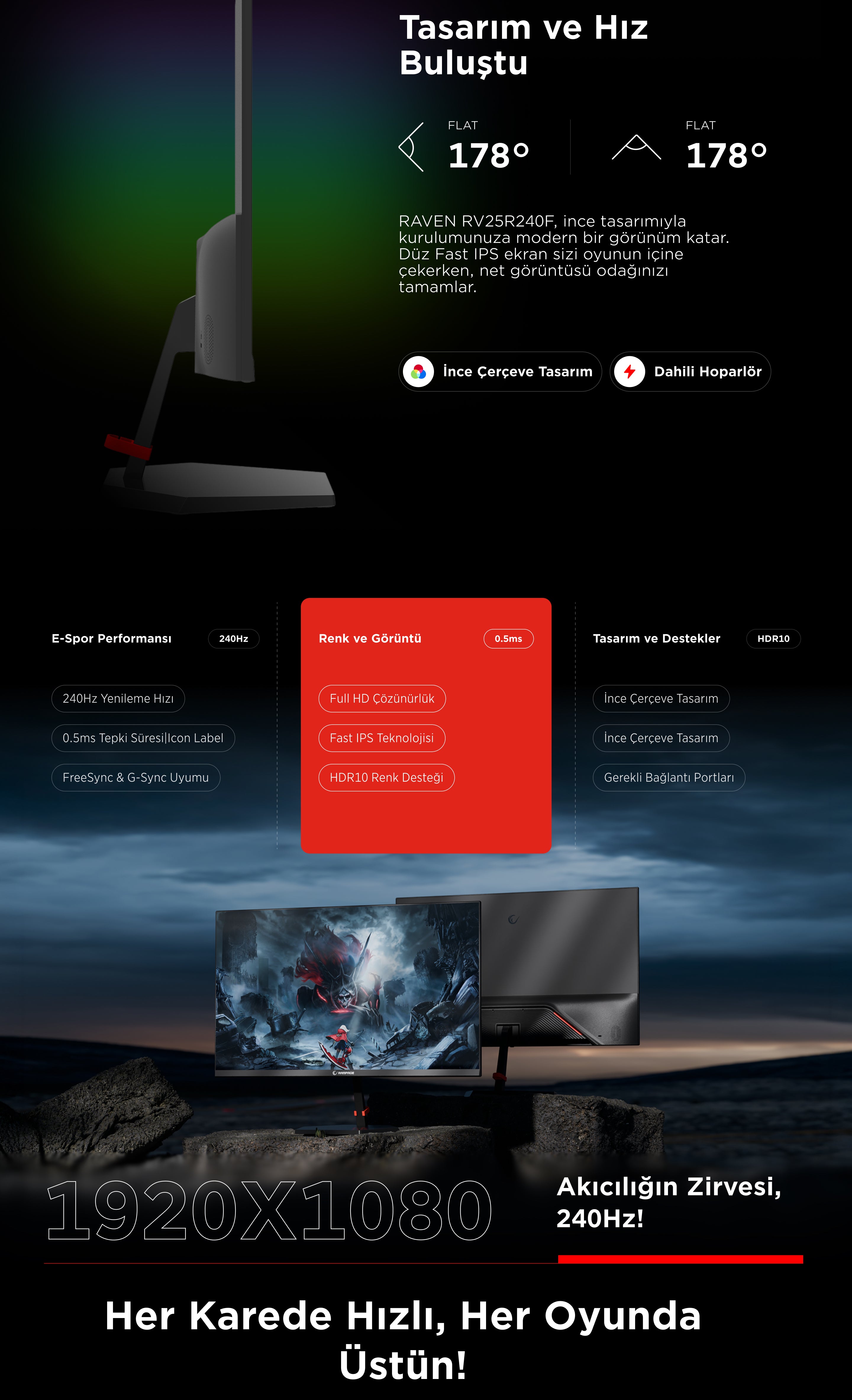 RAVEN RV25R240F 25'' 240hz 0.5ms FAST IPS FHD Freesync/G-Sync Flat Gaming Monitor