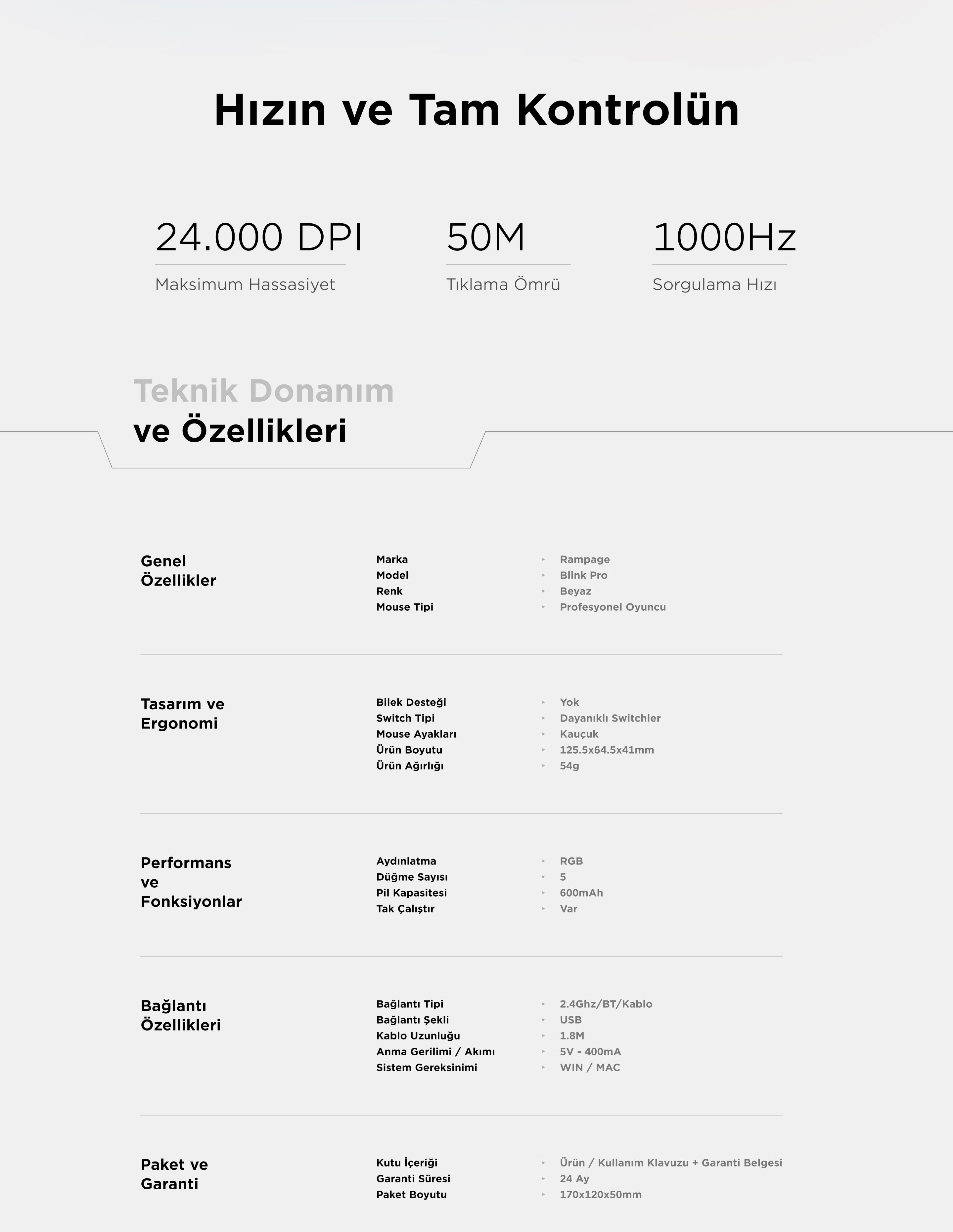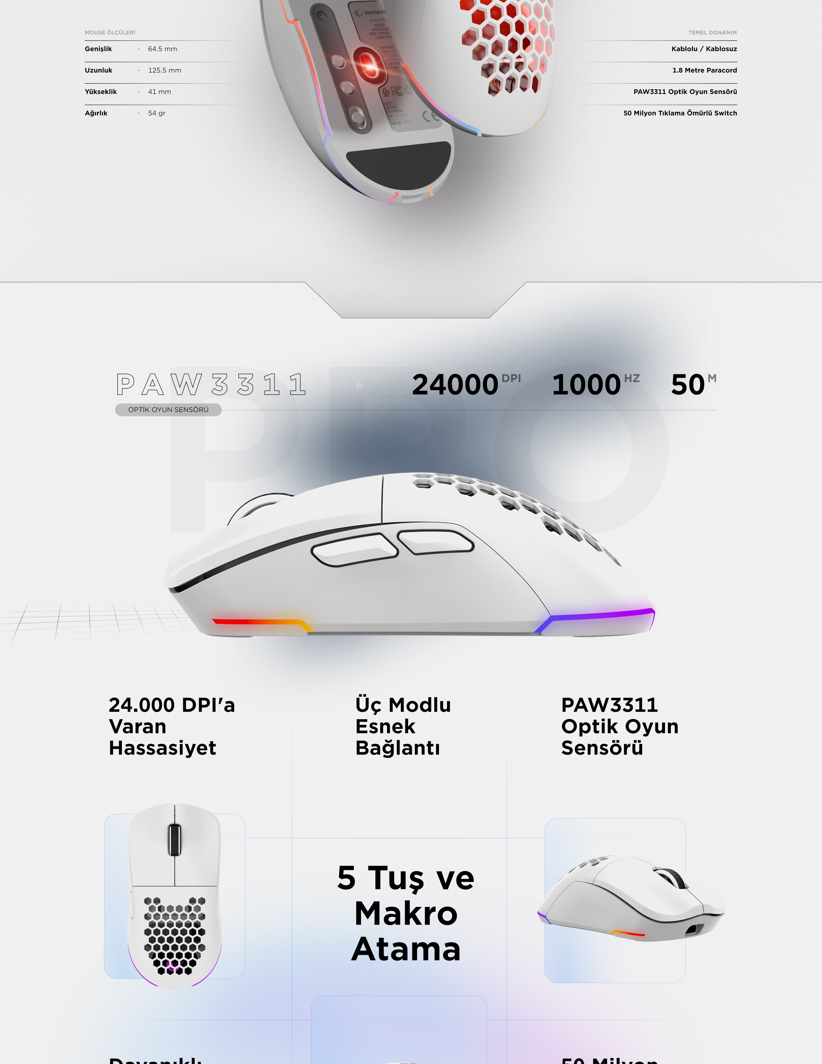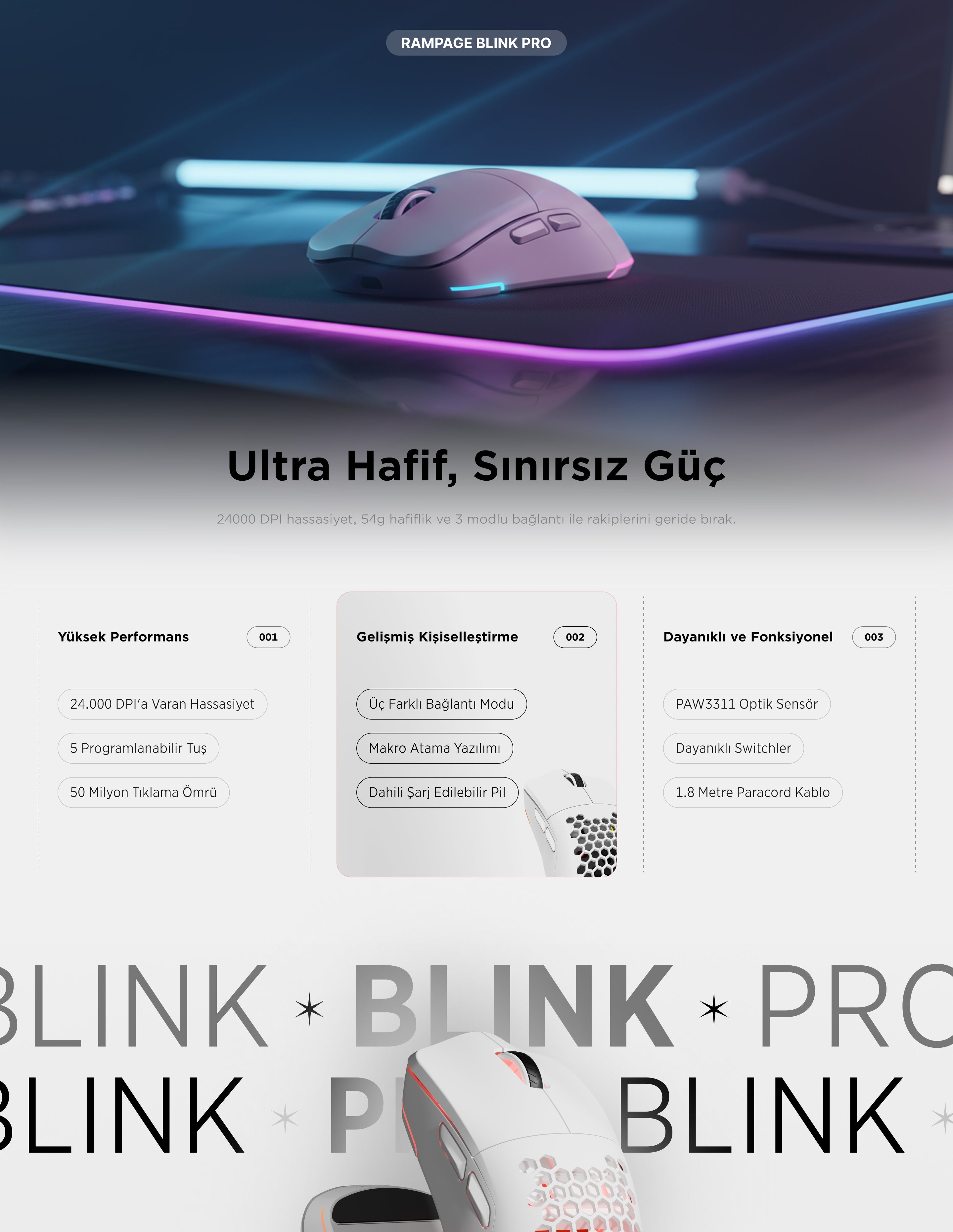 Blink Pro RGB 24000 Dpi 3311 Sensor Wireless Gaming Mouse-White