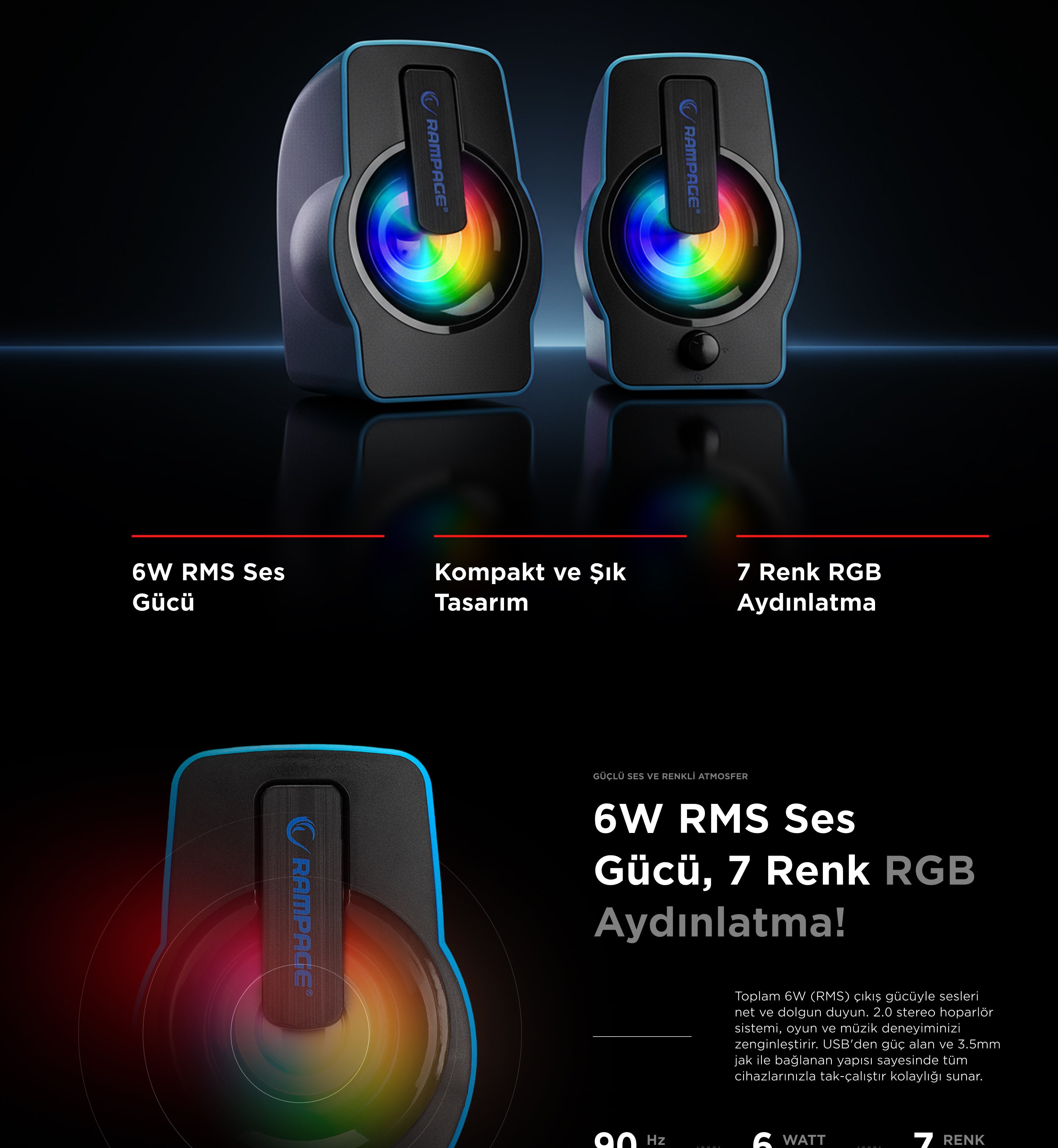 Rms-G7 Falsetto 2.0 6 Watt RGB Multimedia Gaming Speaker-Blue
