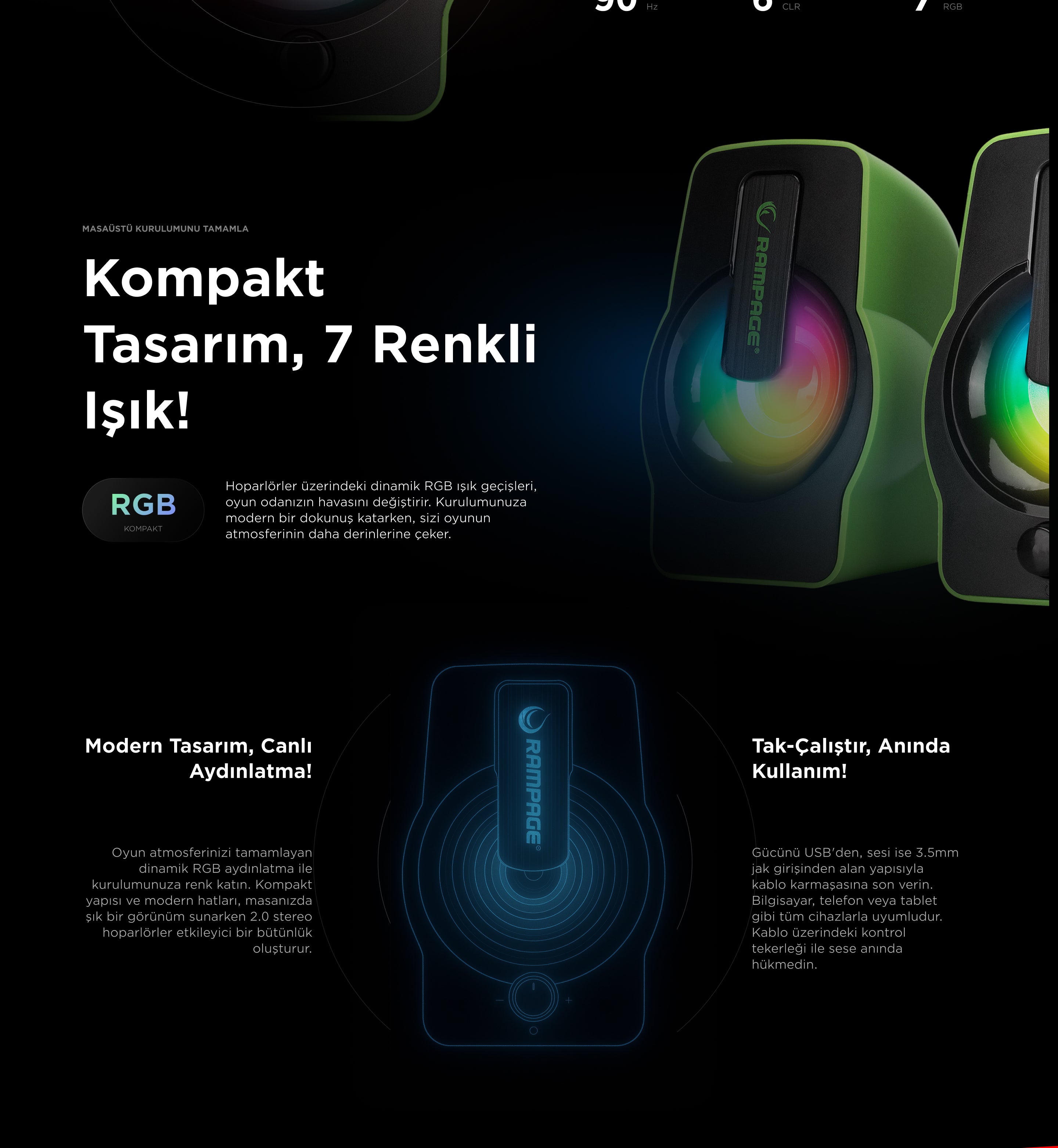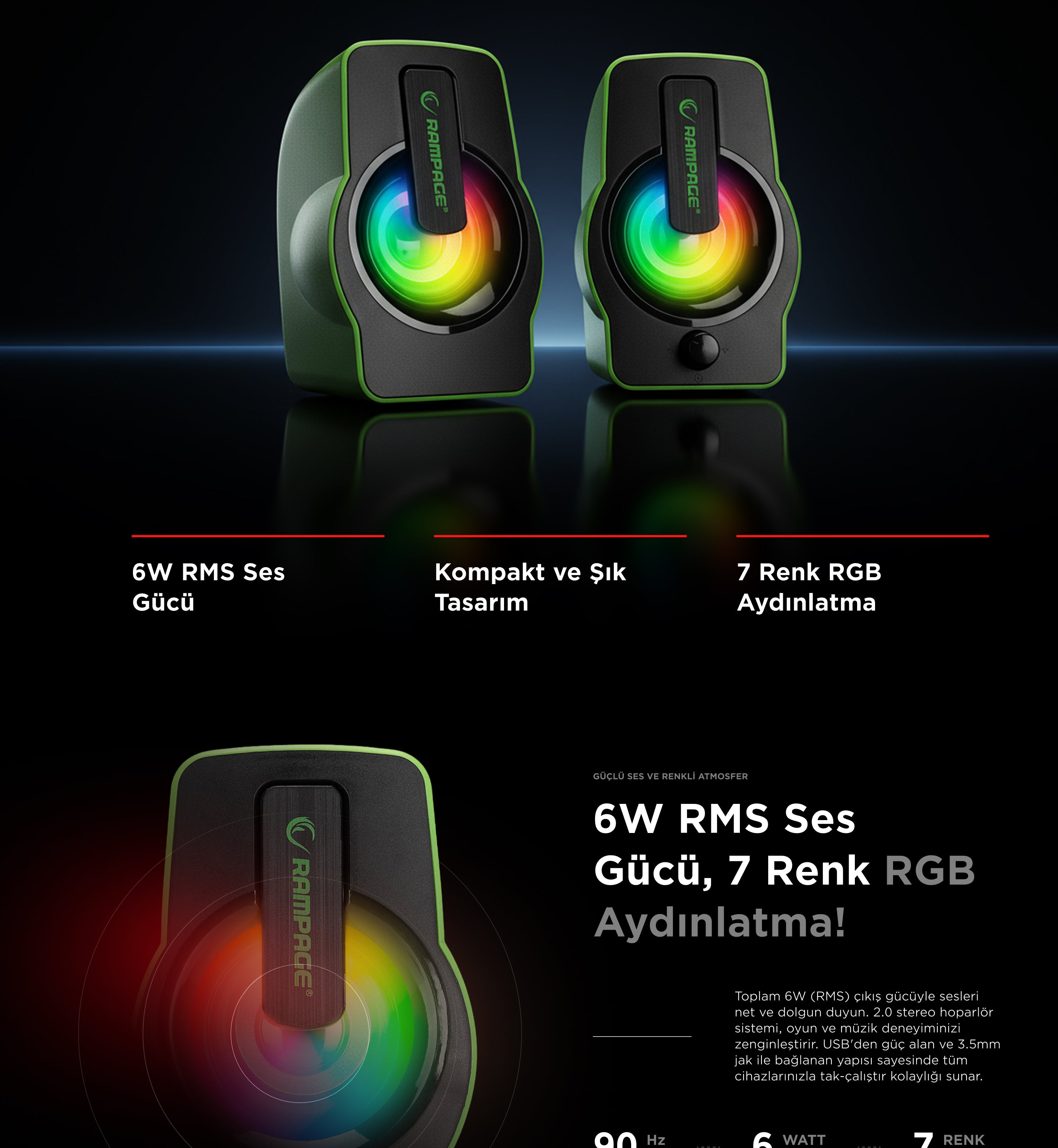 Rms-G7 Falsetto 2.0 6 Watt RGB Multimedia Gaming Speaker-Green