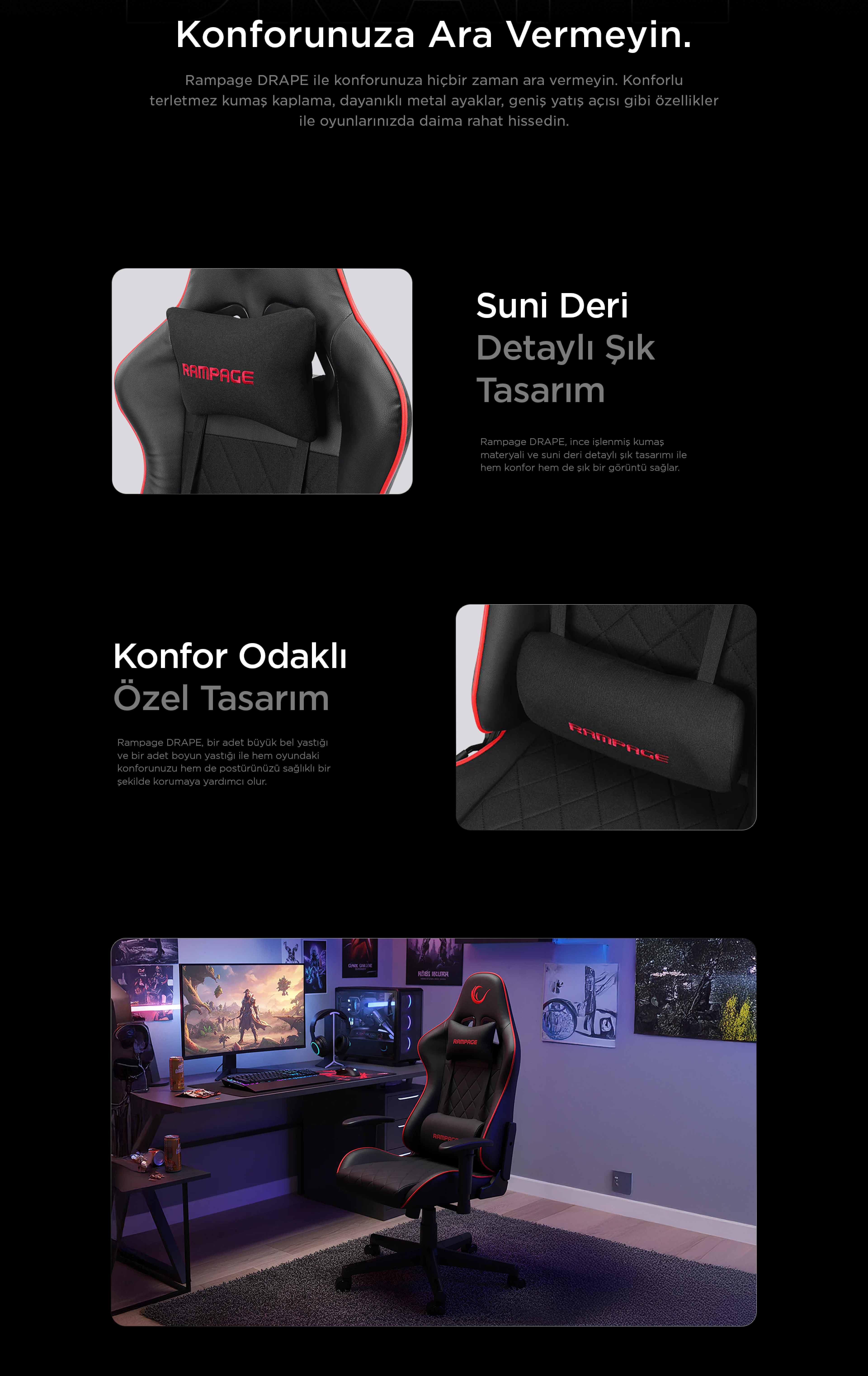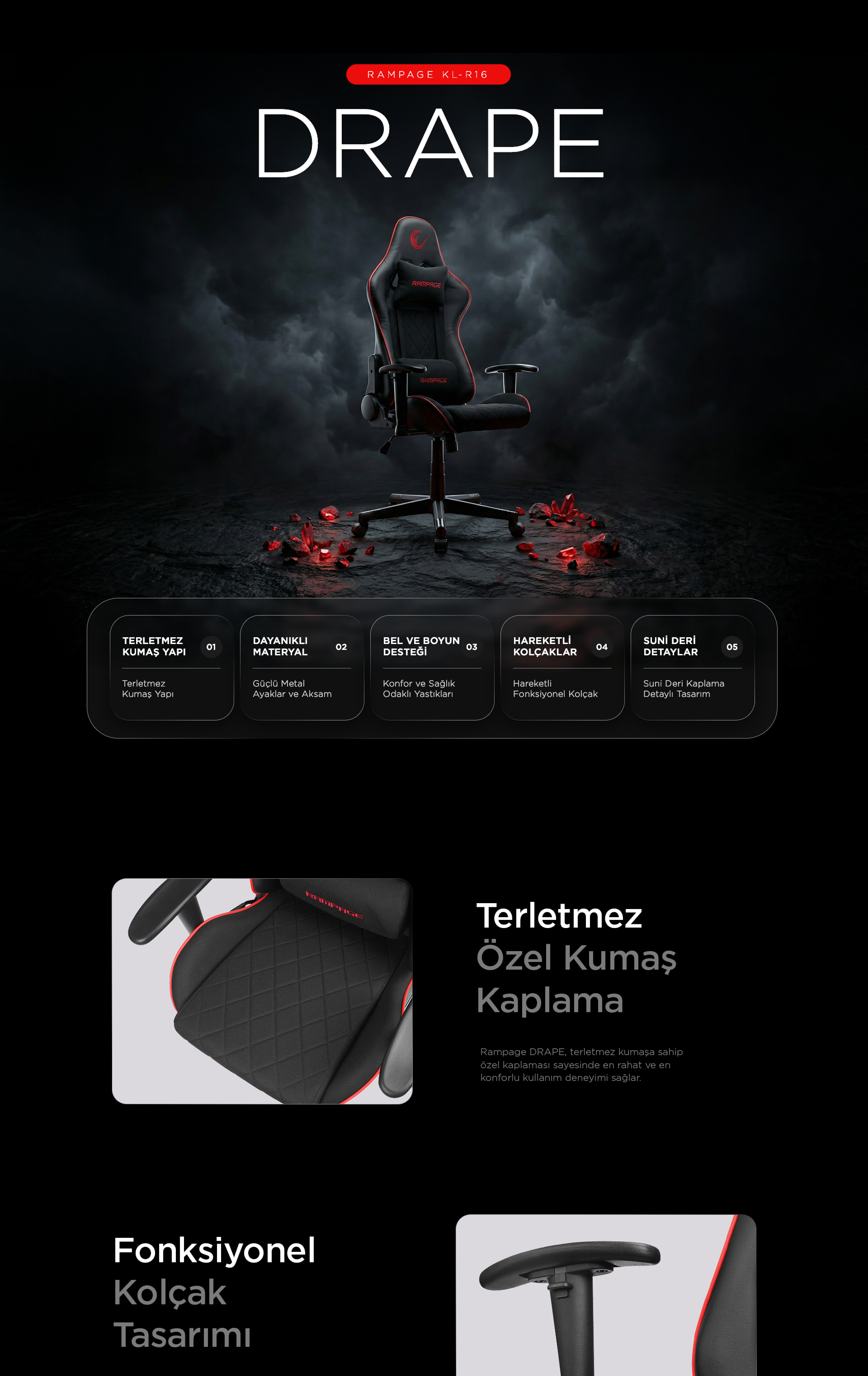 KL-R16 Drape High-End Non-Sweating Fabric Gaming Chair-Black