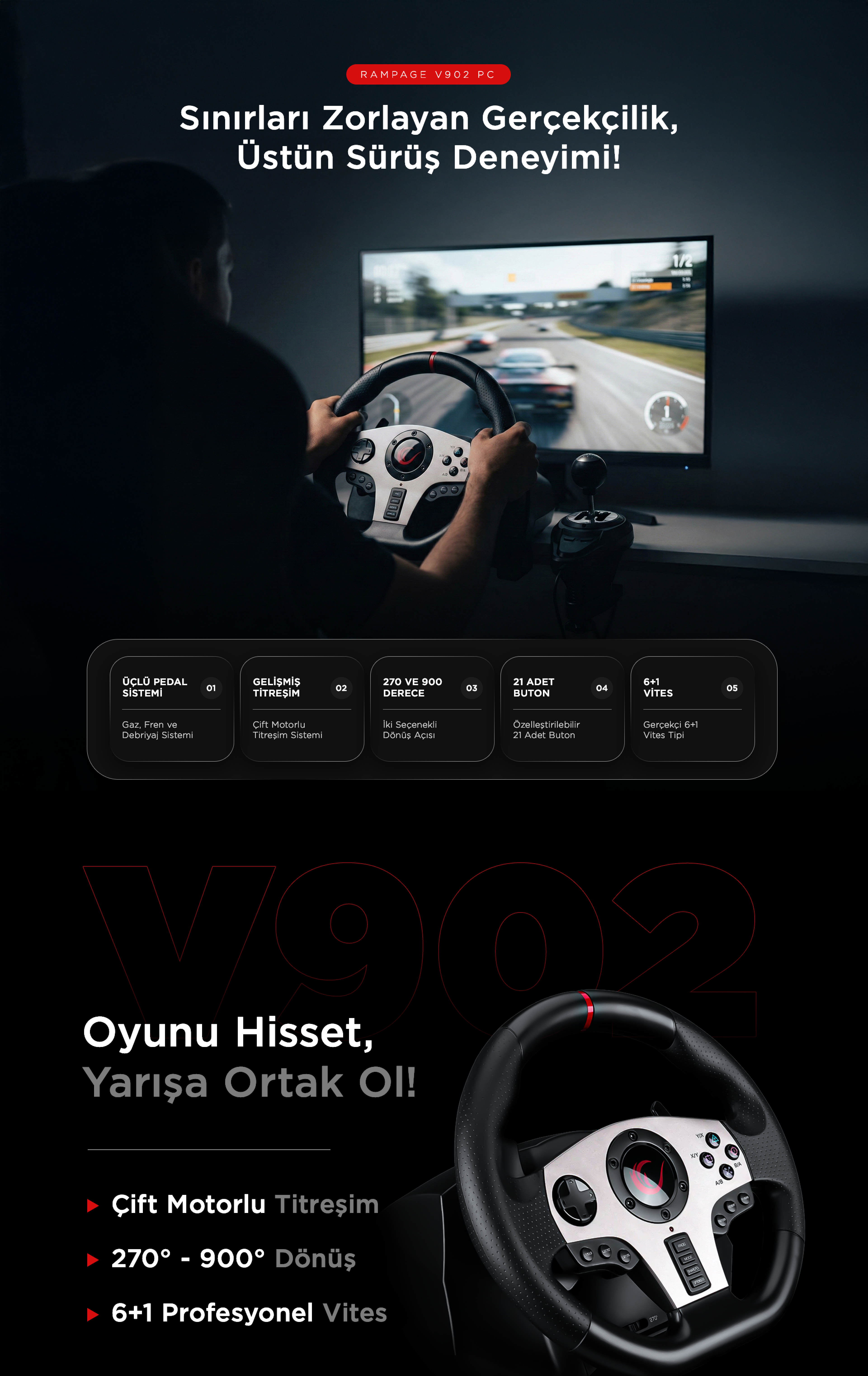 V902 PC-3 Pedal-Powered Gaming Wheel with Manual Gear