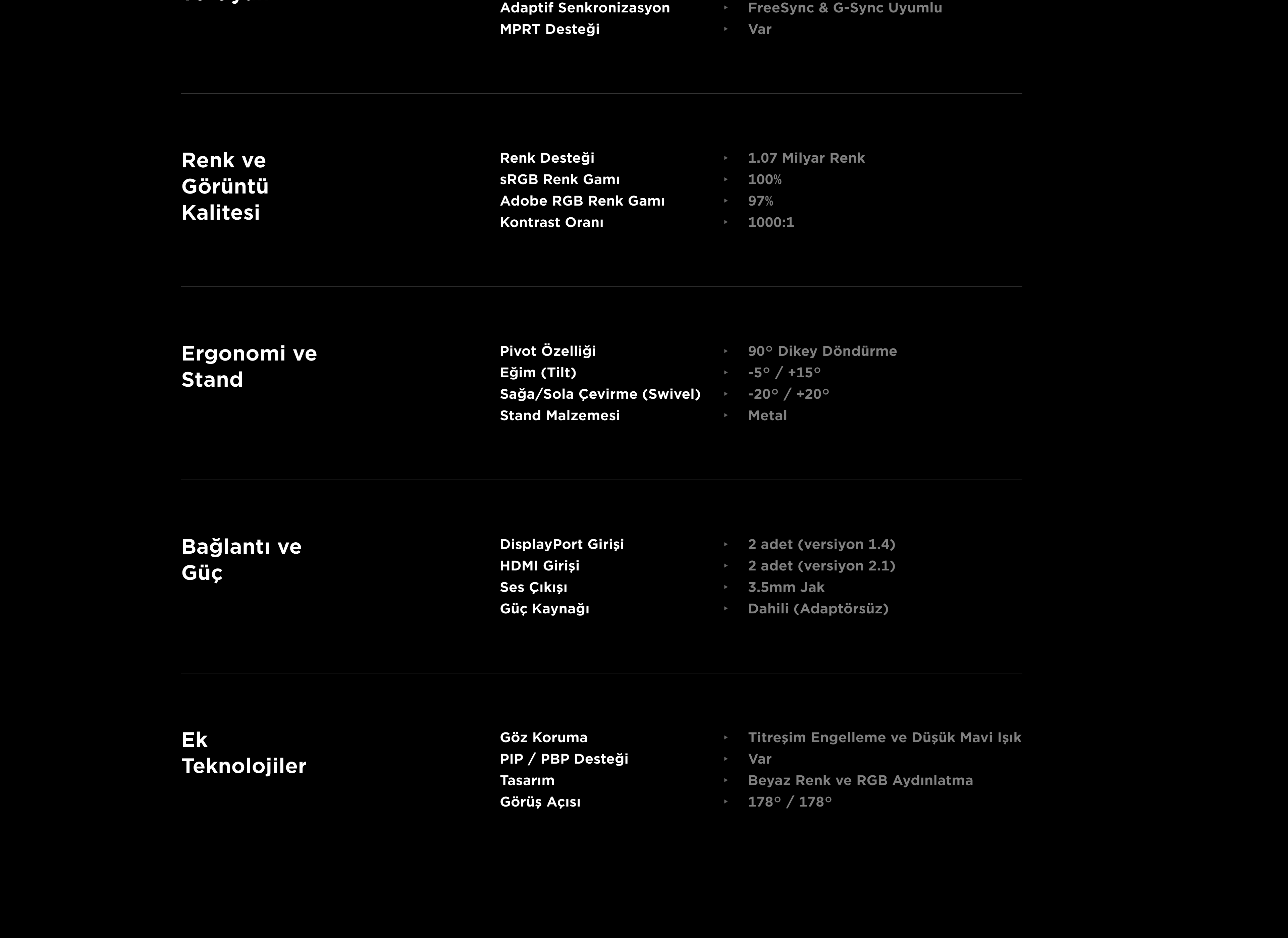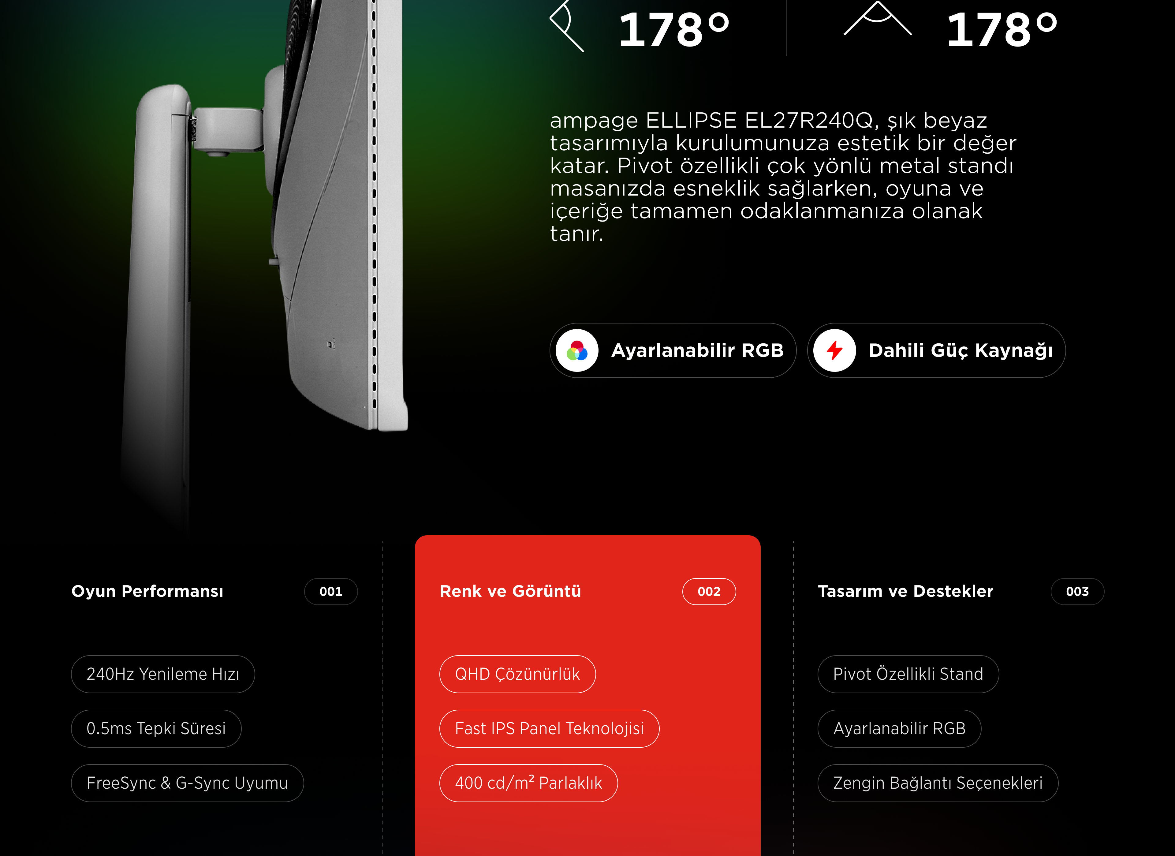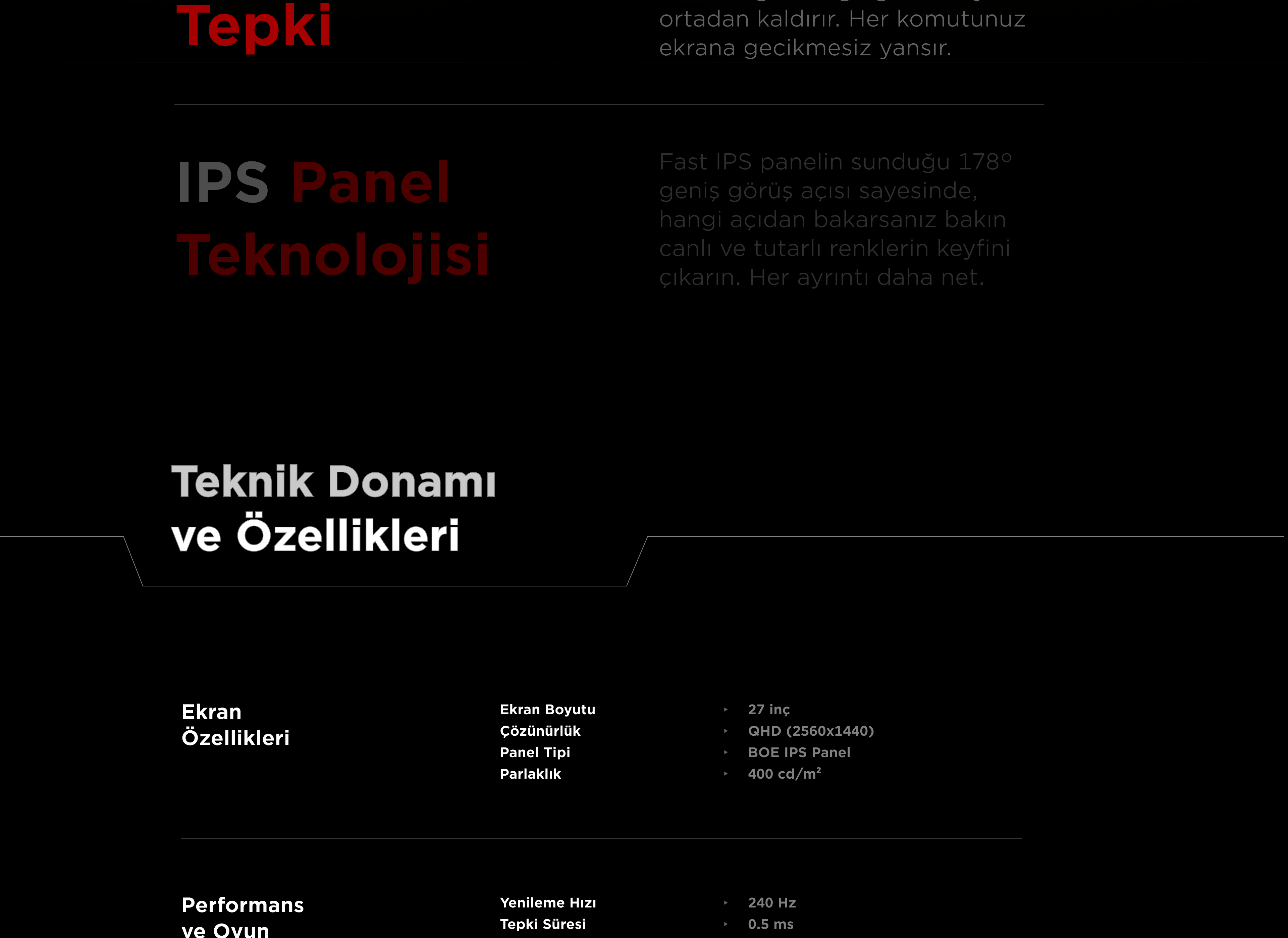 27” 240 Hz 0.5ms QHD Oyuncu Monitörü