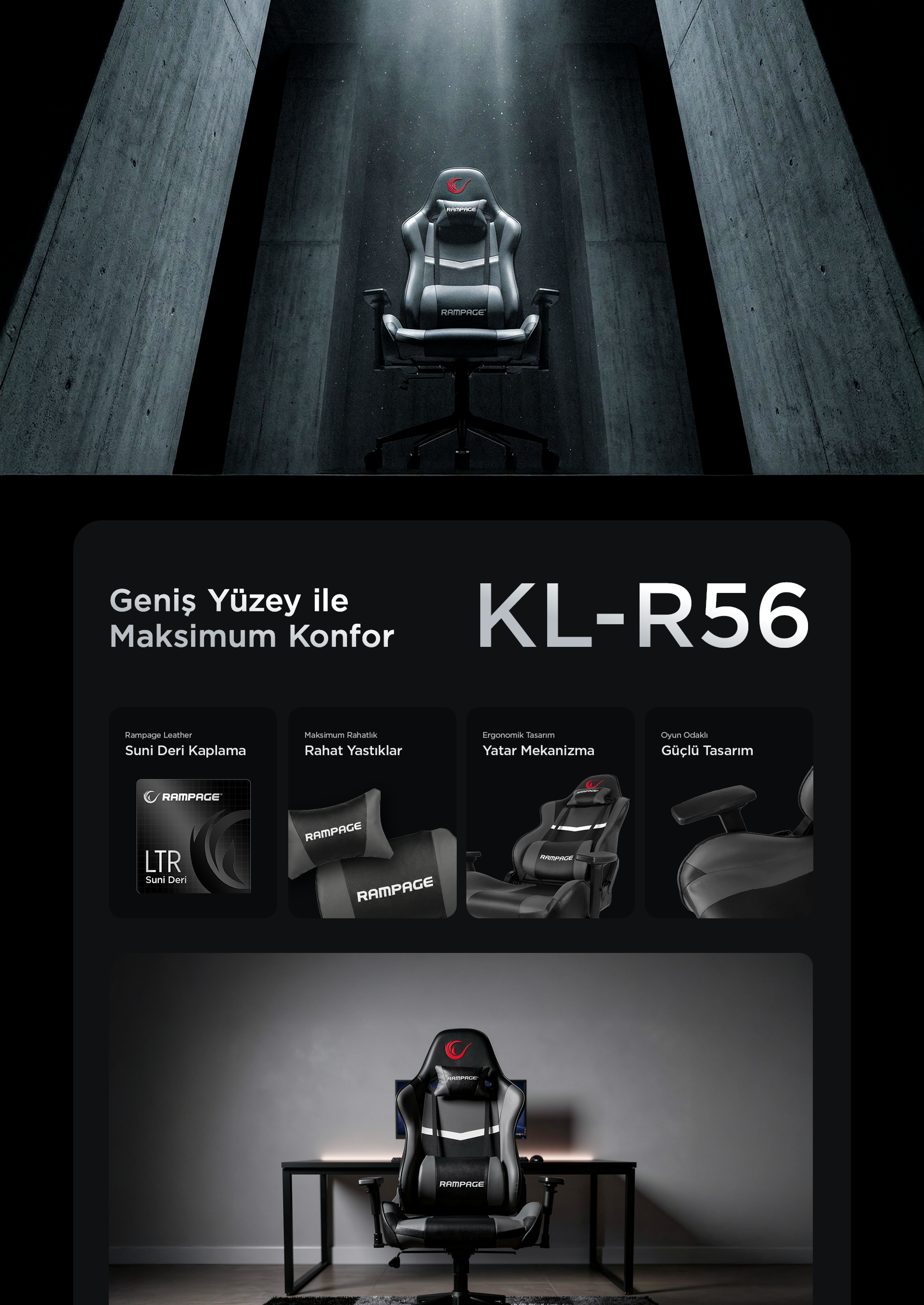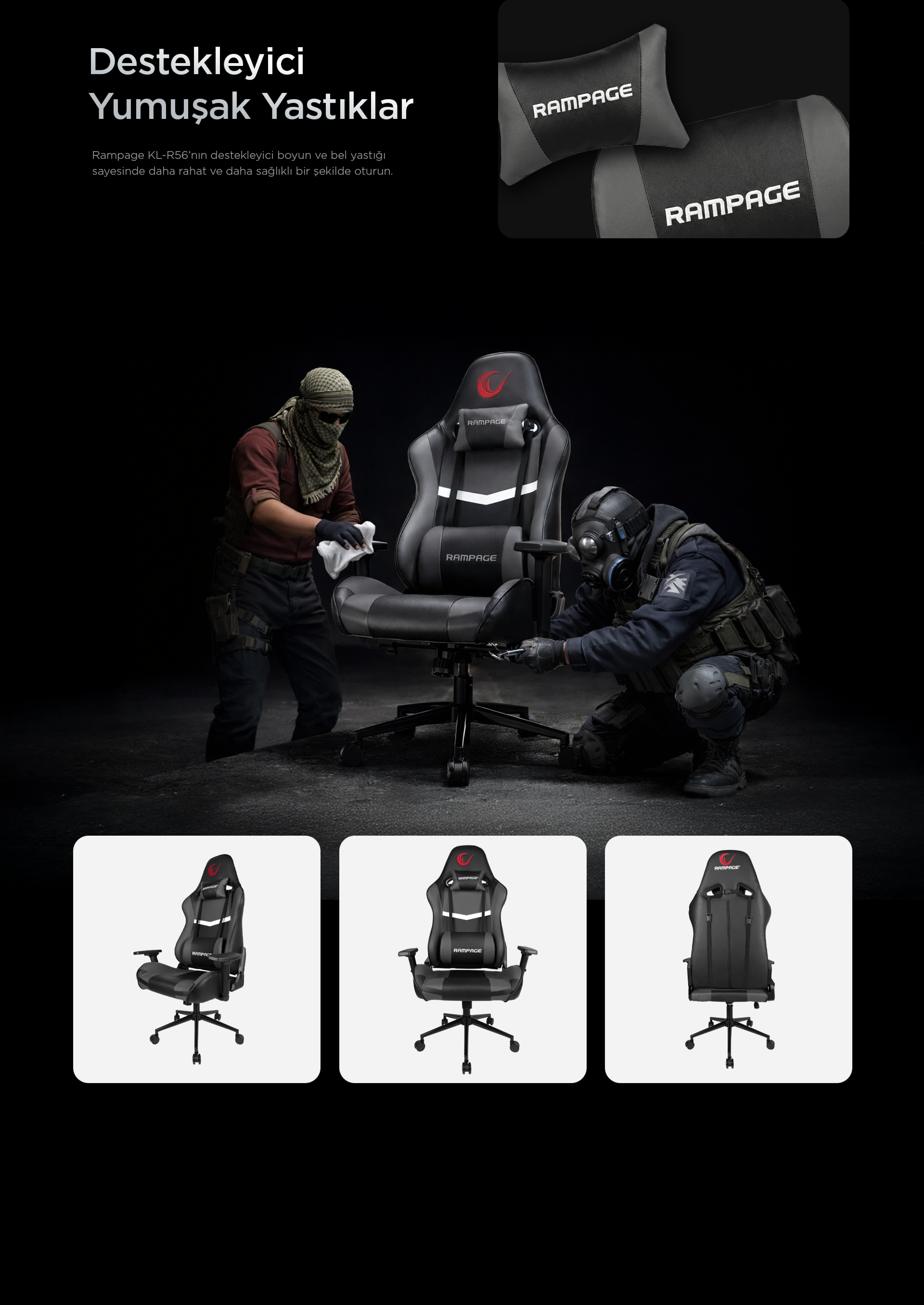 3D Kol,Tam Dökme Süngerli Oyuncu Koltuğu-Siyah/Gri