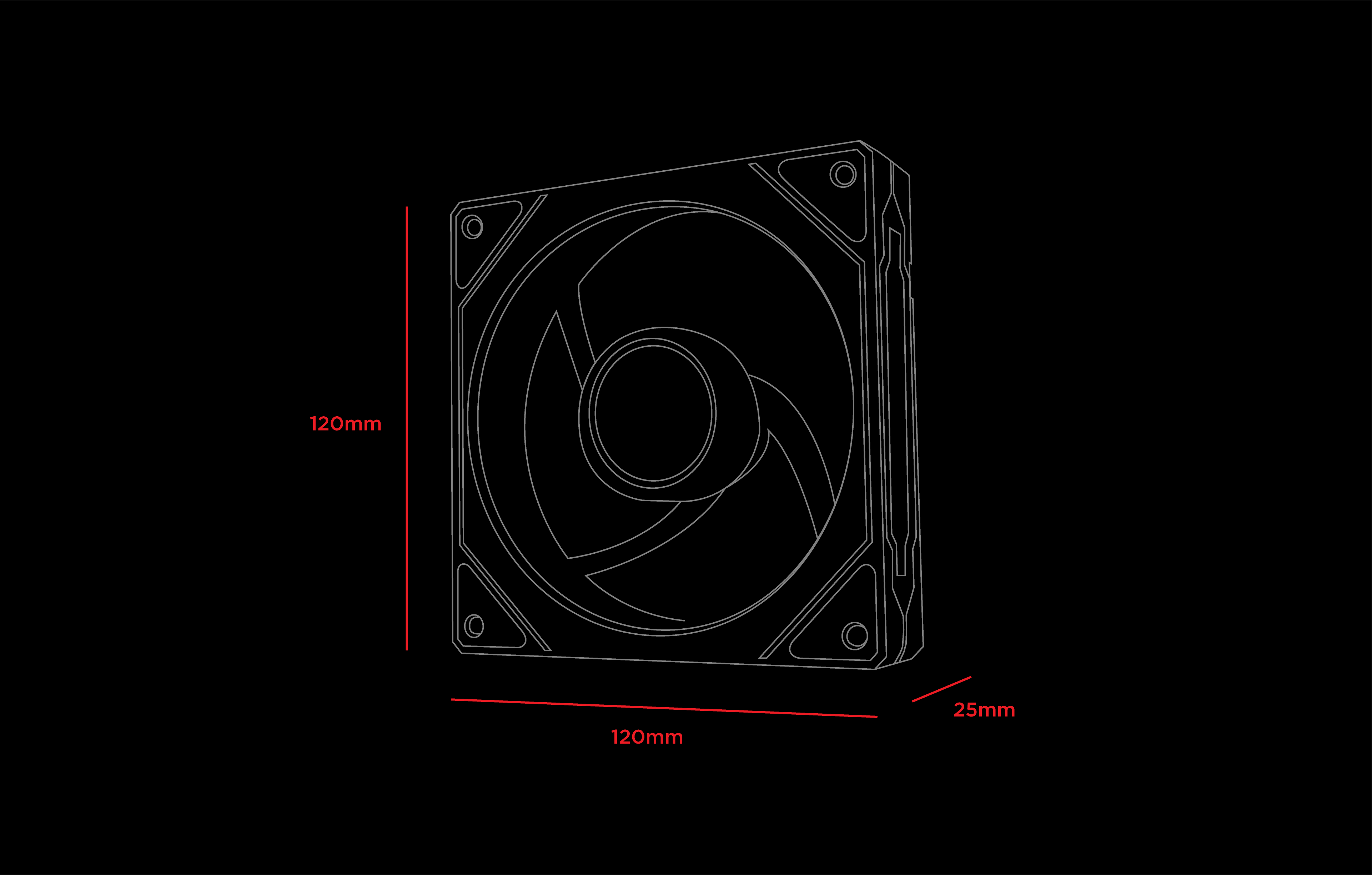 120x120x25mm Double Ring Aynalı ARGB Kasa Fanı-Siyah