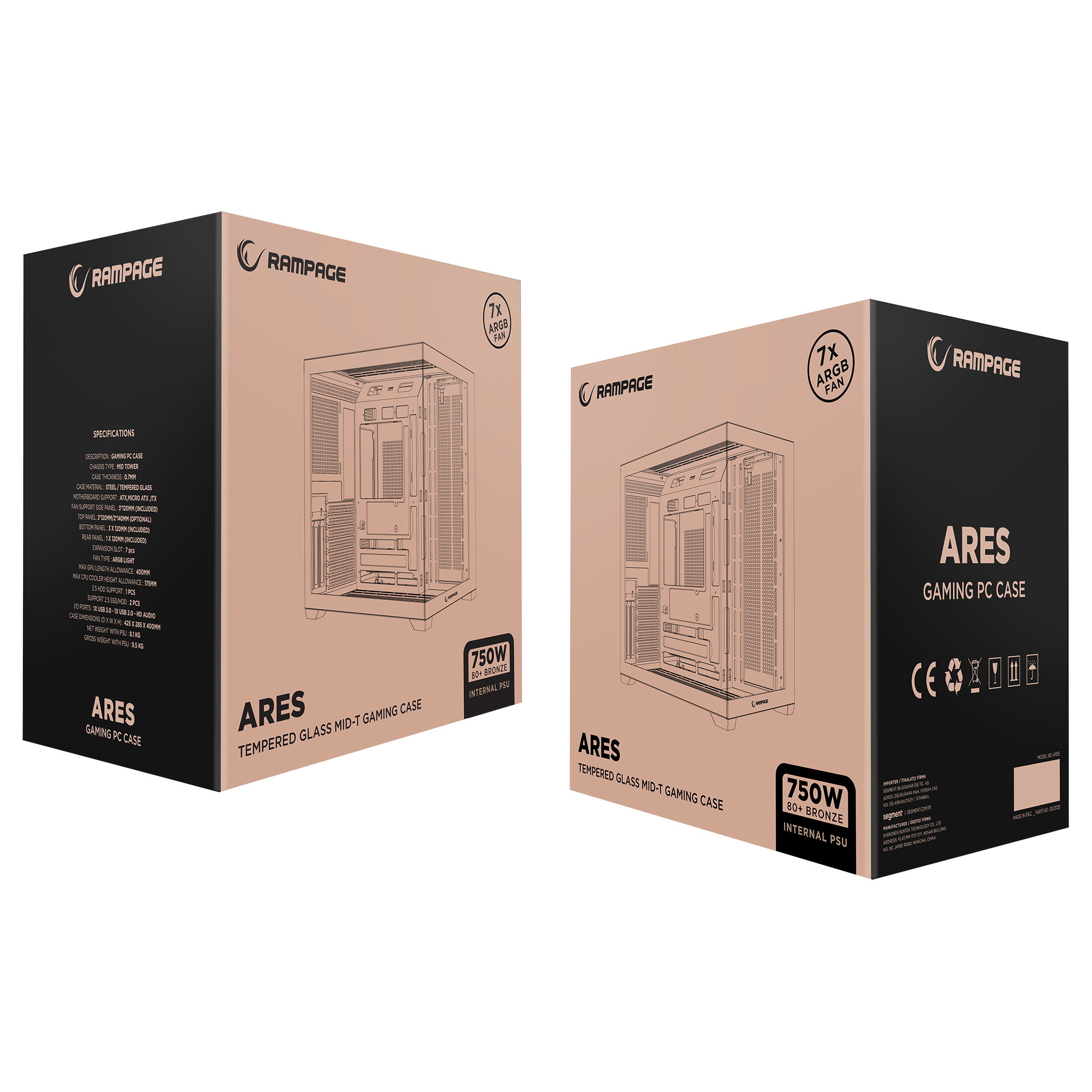 750W 80 Plus Bronze Temperli Camlı 7x12cm ARGB Fan ATX Mid-T Oyuncu Kasası