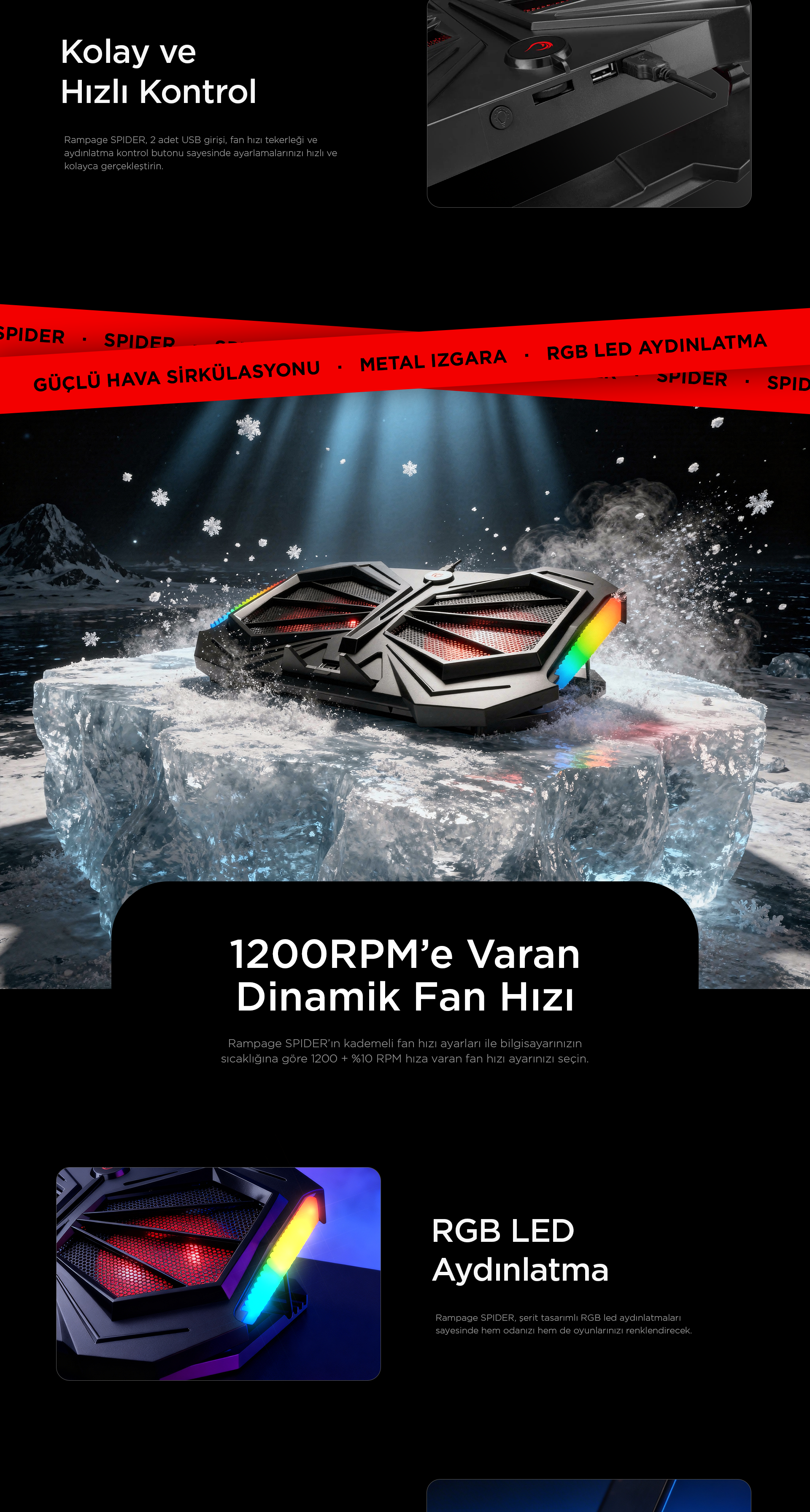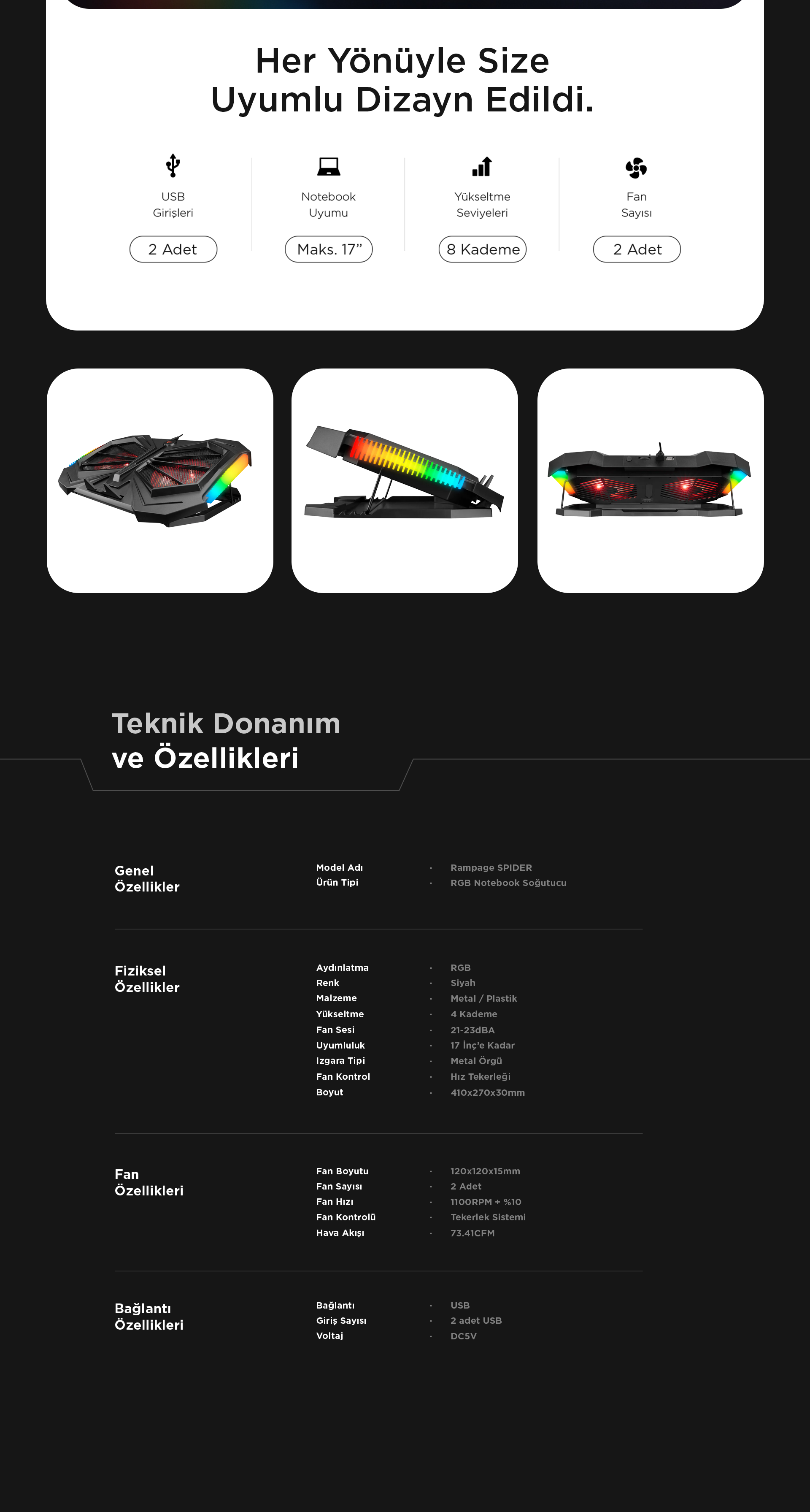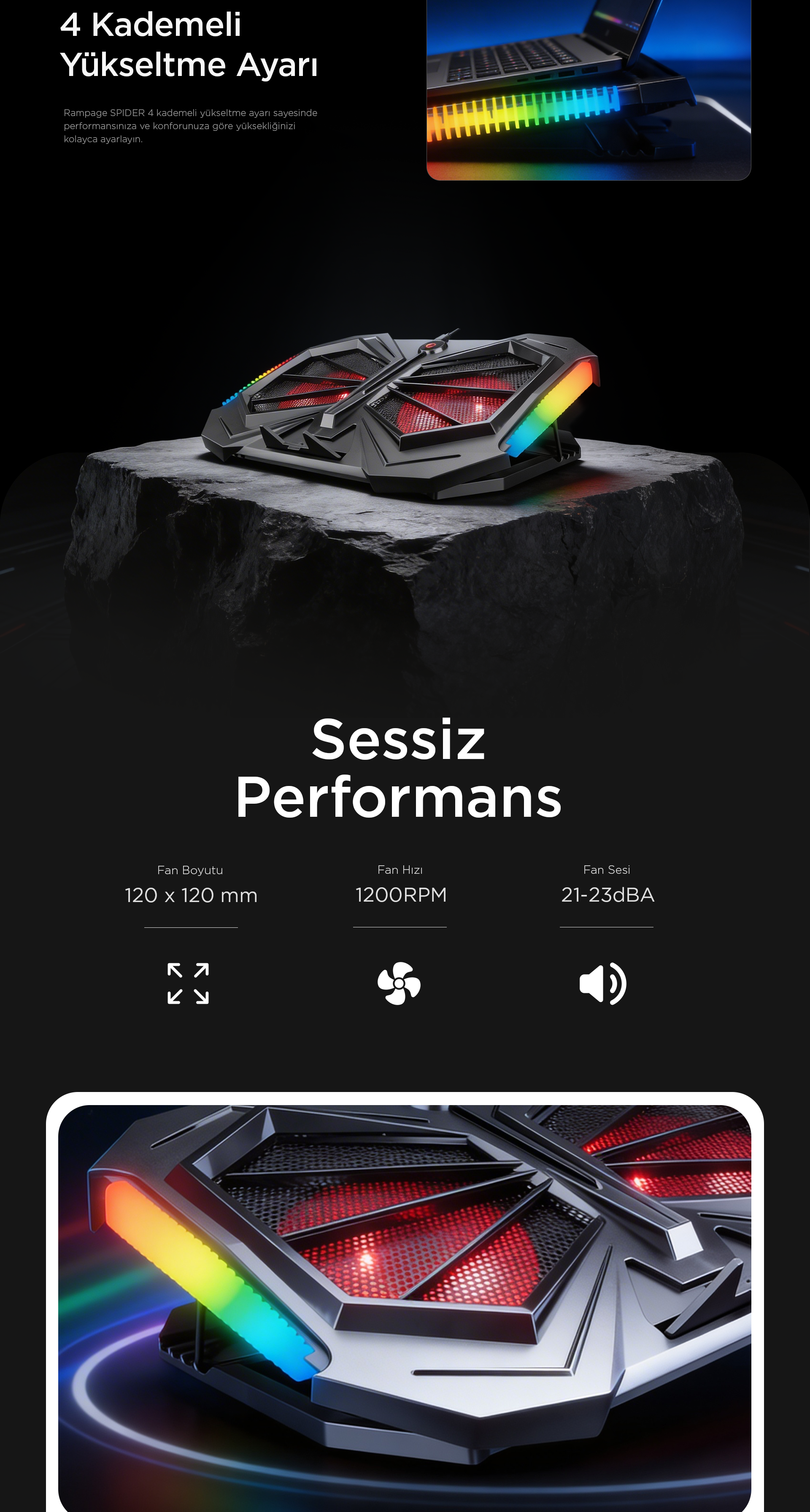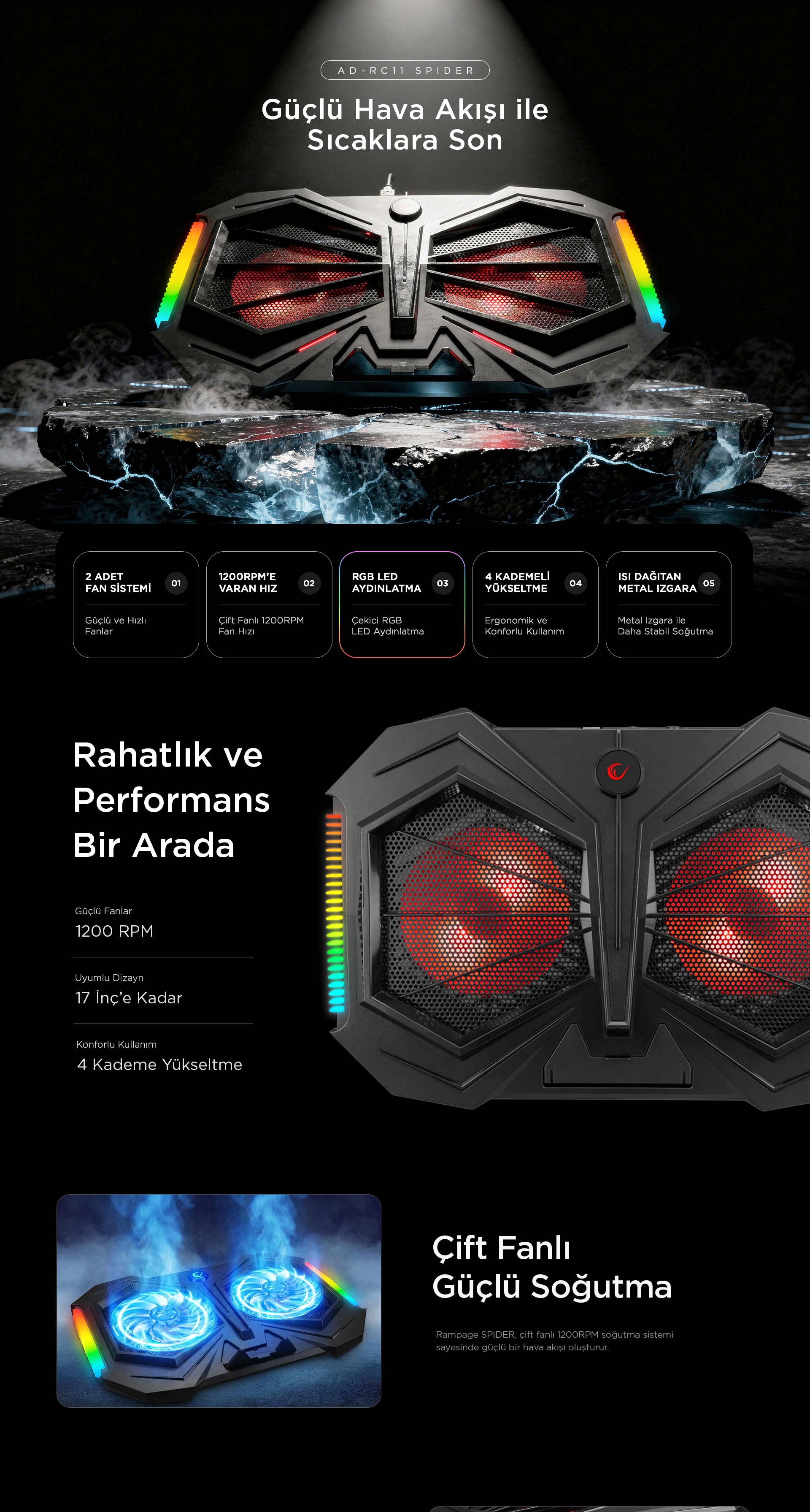 RGB 2 Fan 15-17 inç Notebook Soğutucu Stand-Siyah