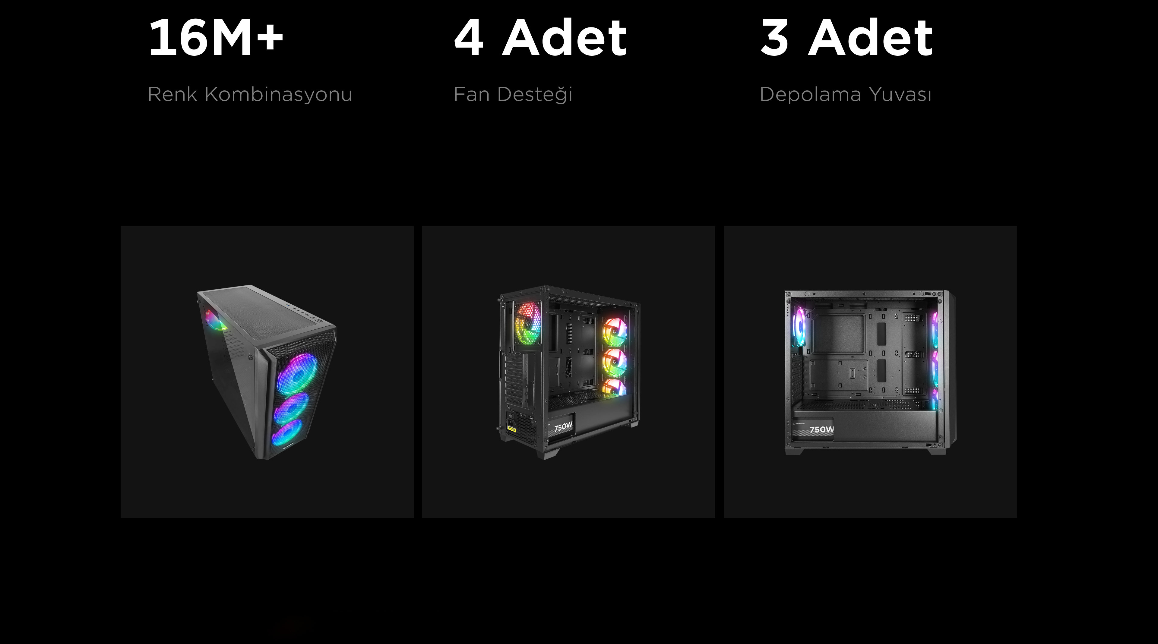 750W 80 Plus Bronze Temperli Camlı Mid-T Oyuncu Kasası-Siyah