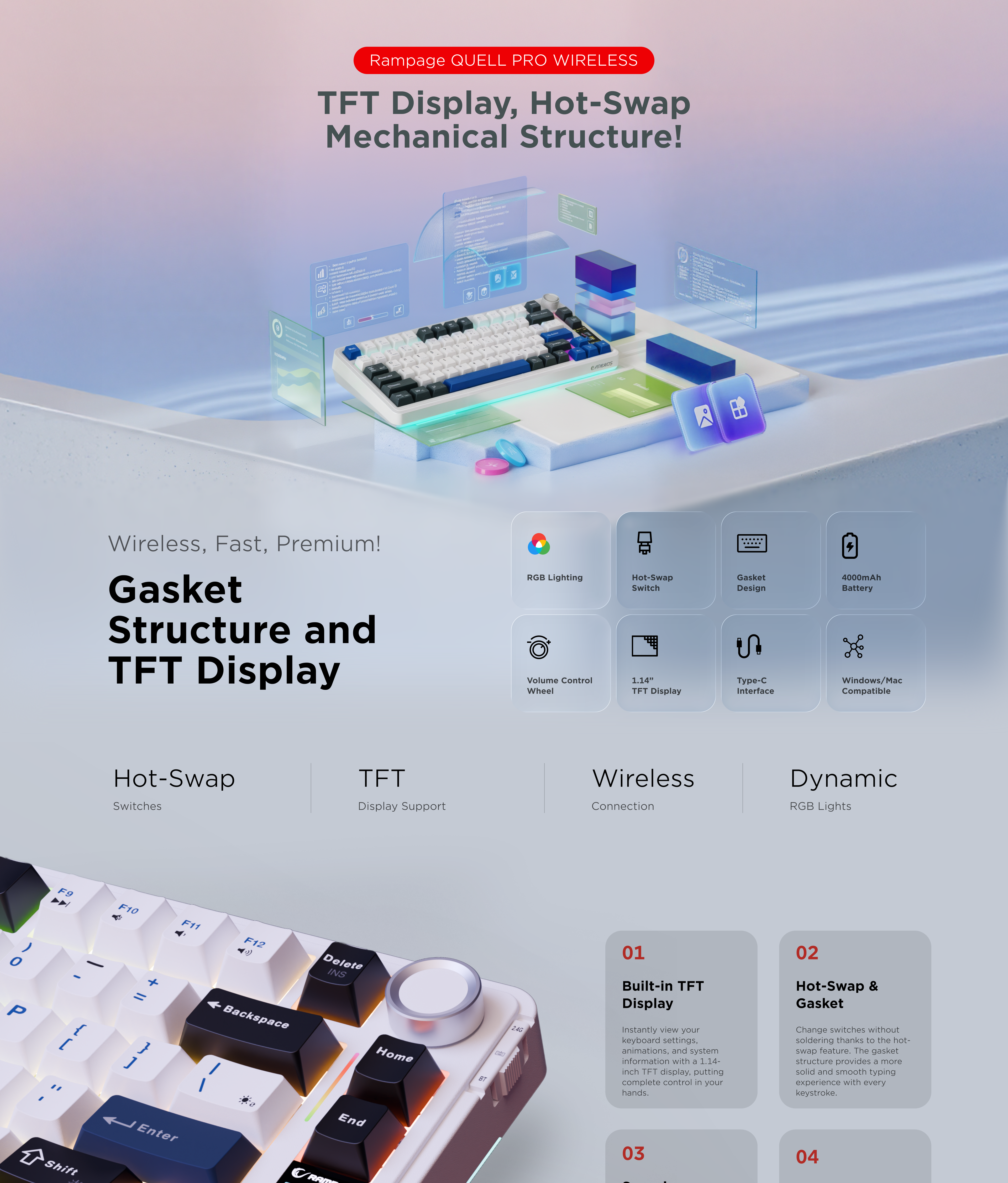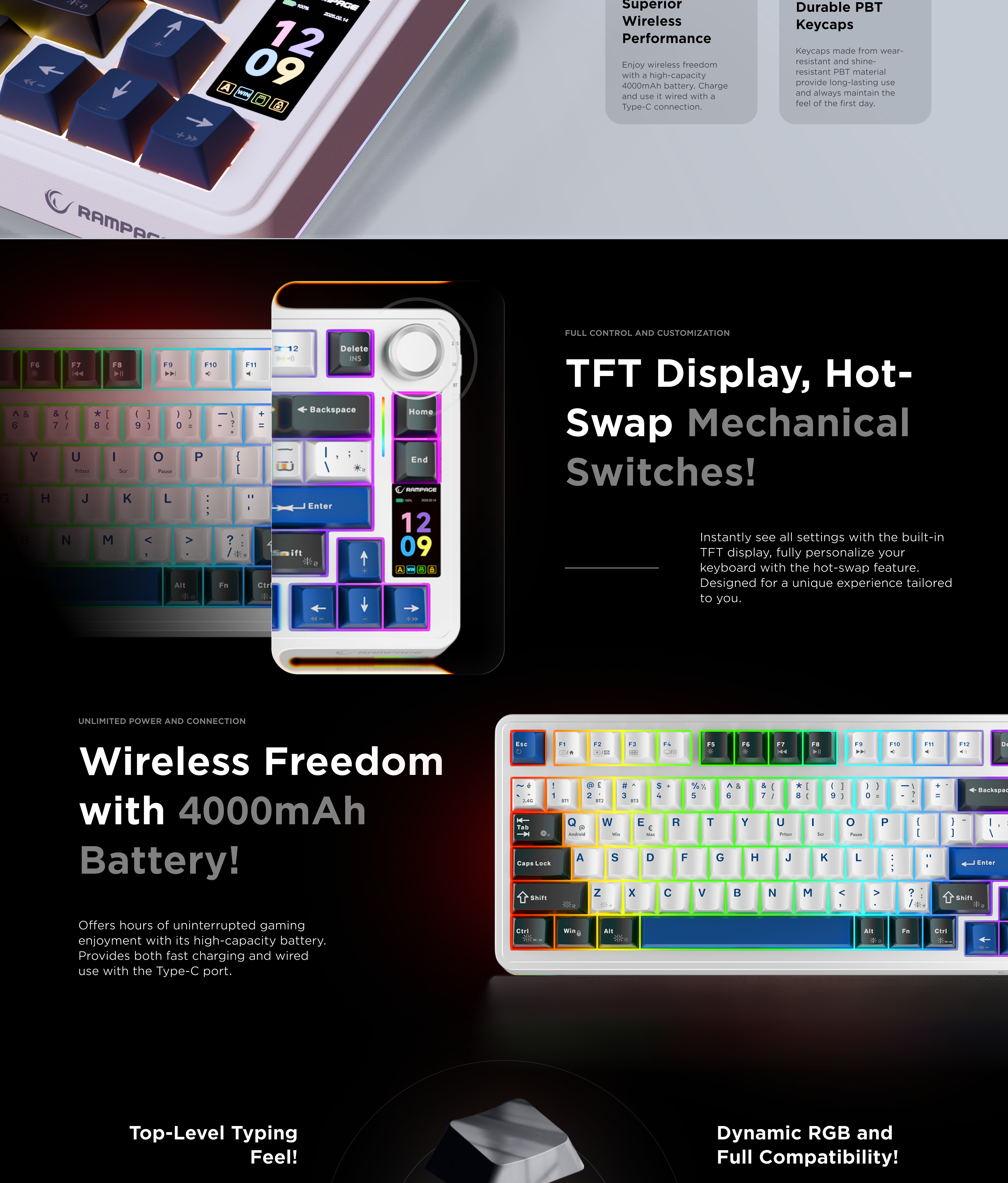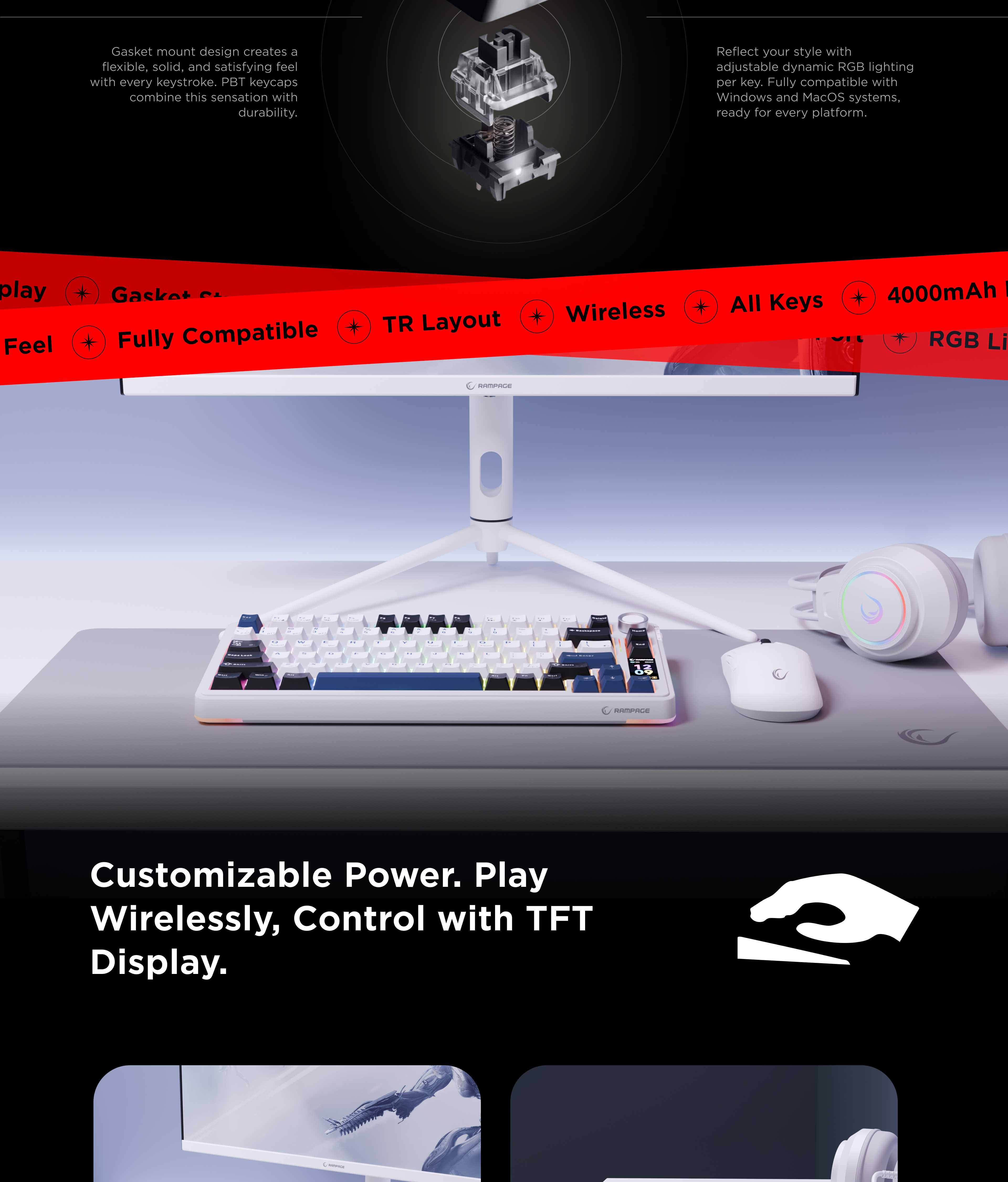 Hot Swap Gasket Oil Switch English Layout PBT Keycaps Kablosuz Mekanik Oyuncu Klavyesi