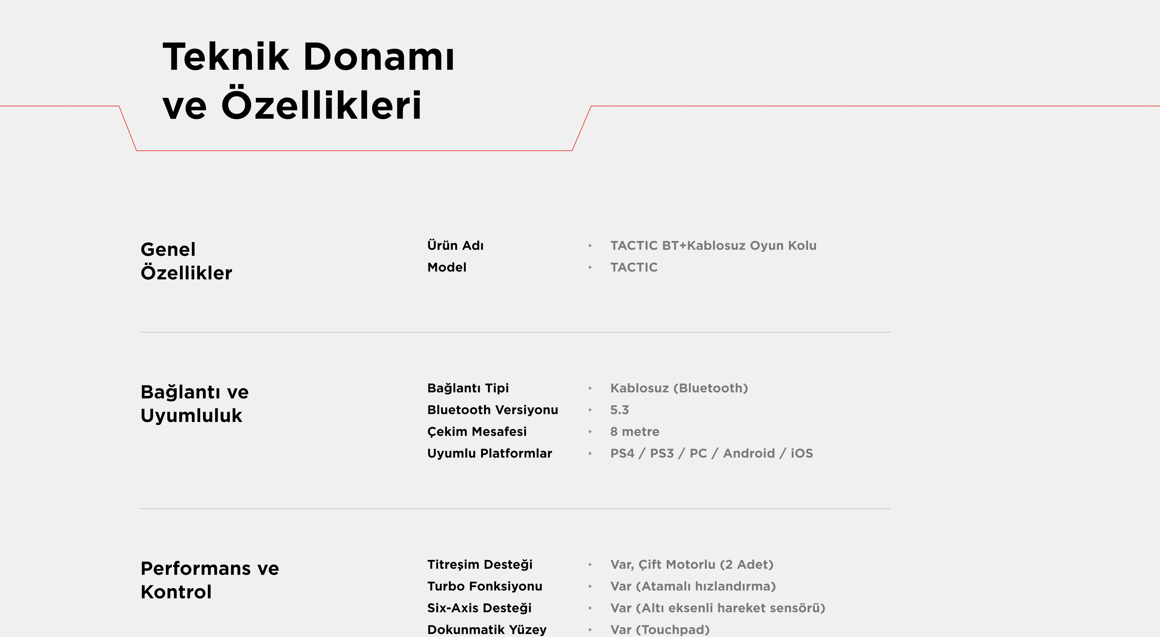 Tactic Bluetooth Çift Titreşimli PS4 Joypad-Beyaz