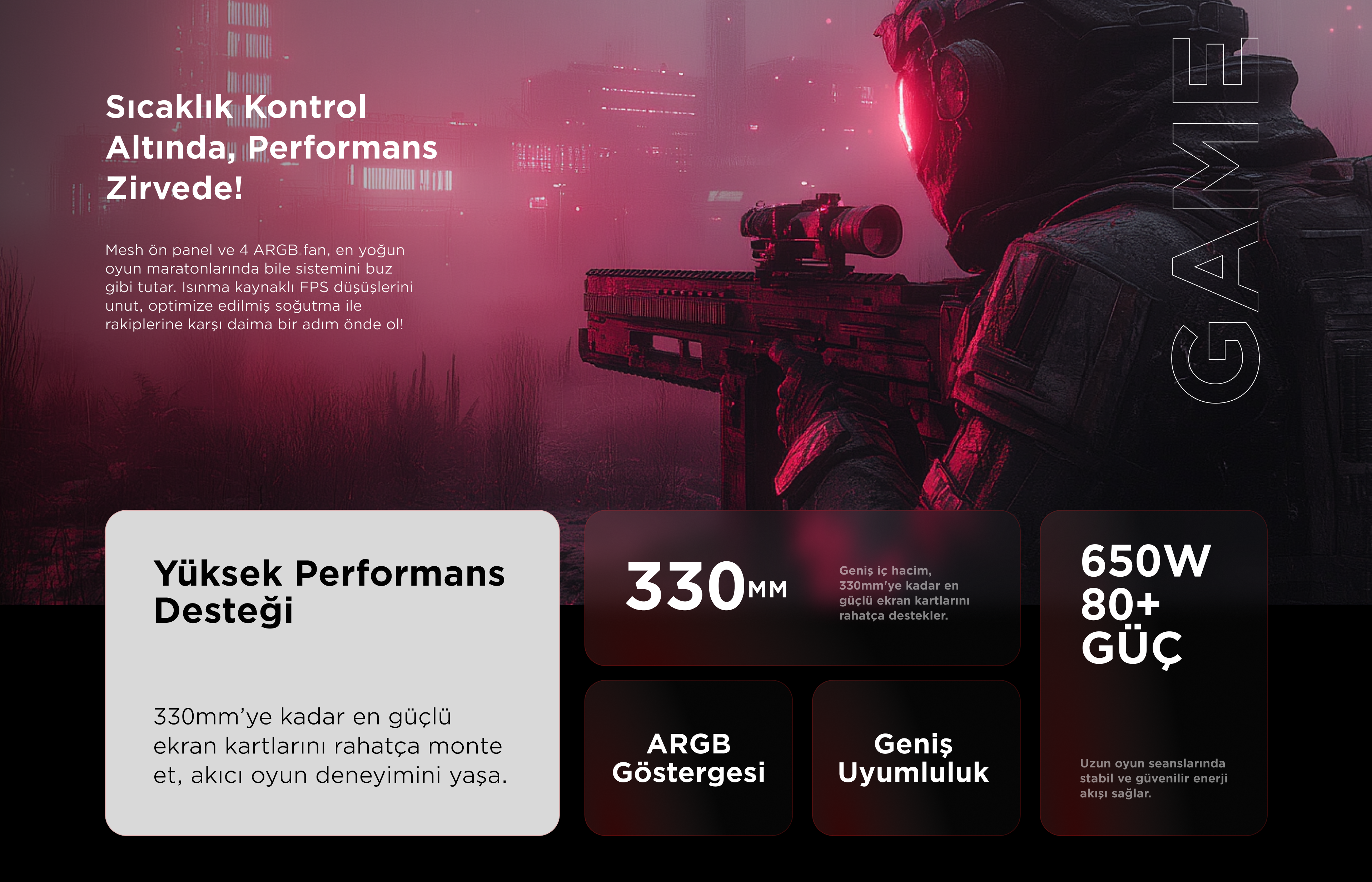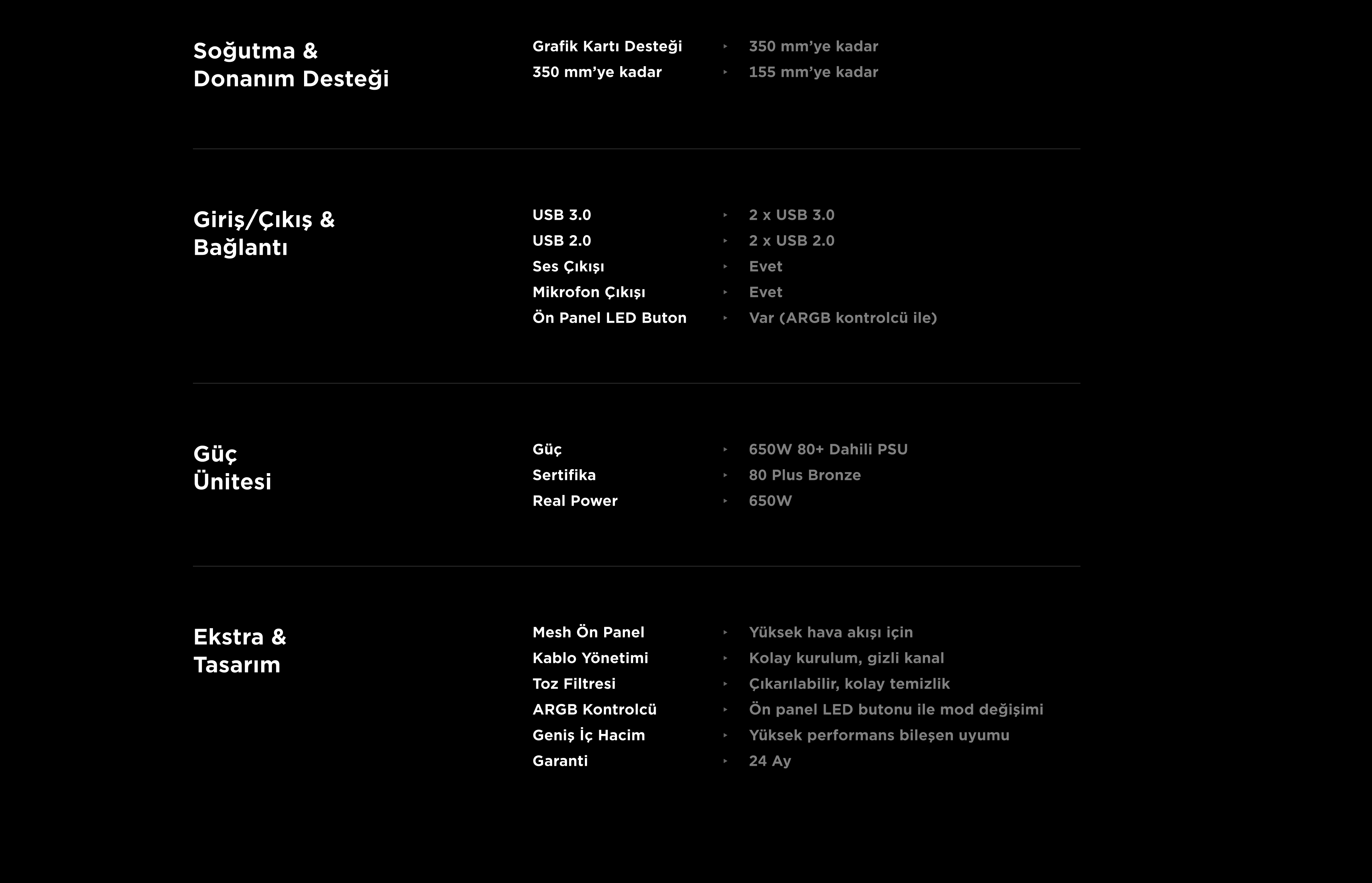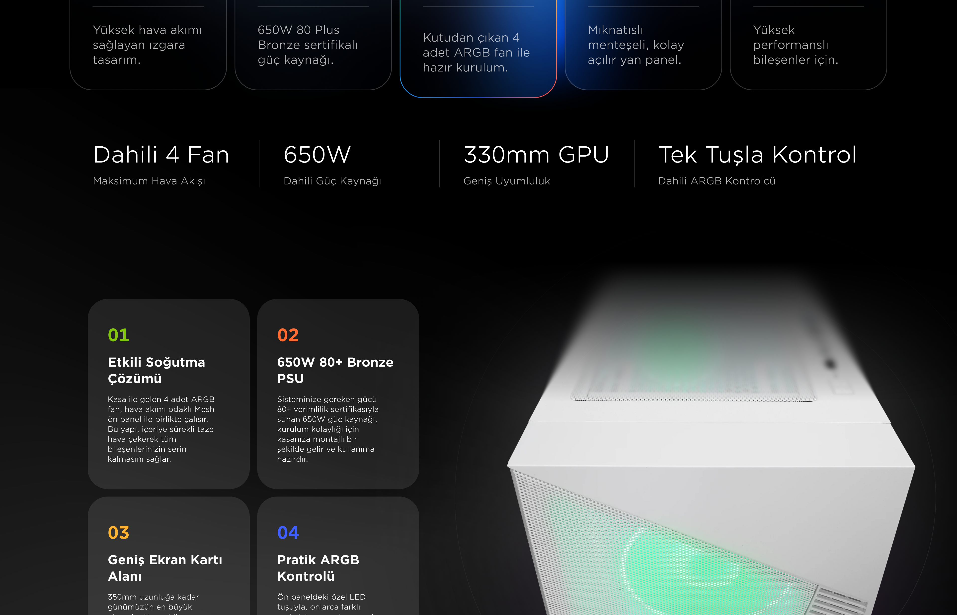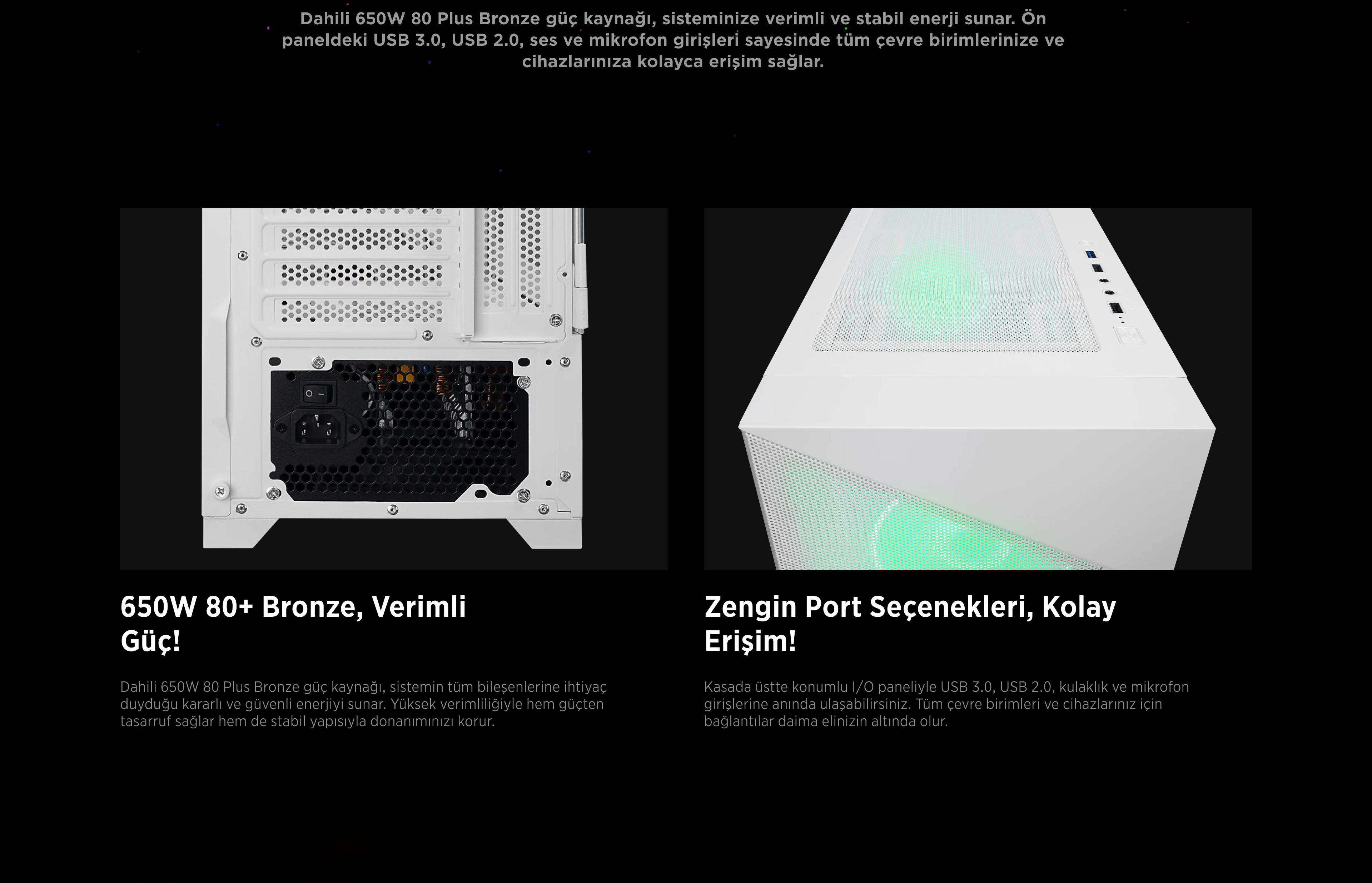 İnspirer Mesh 650W 80+ Atx Mid-T Oyuncu Kasası-Beyaz