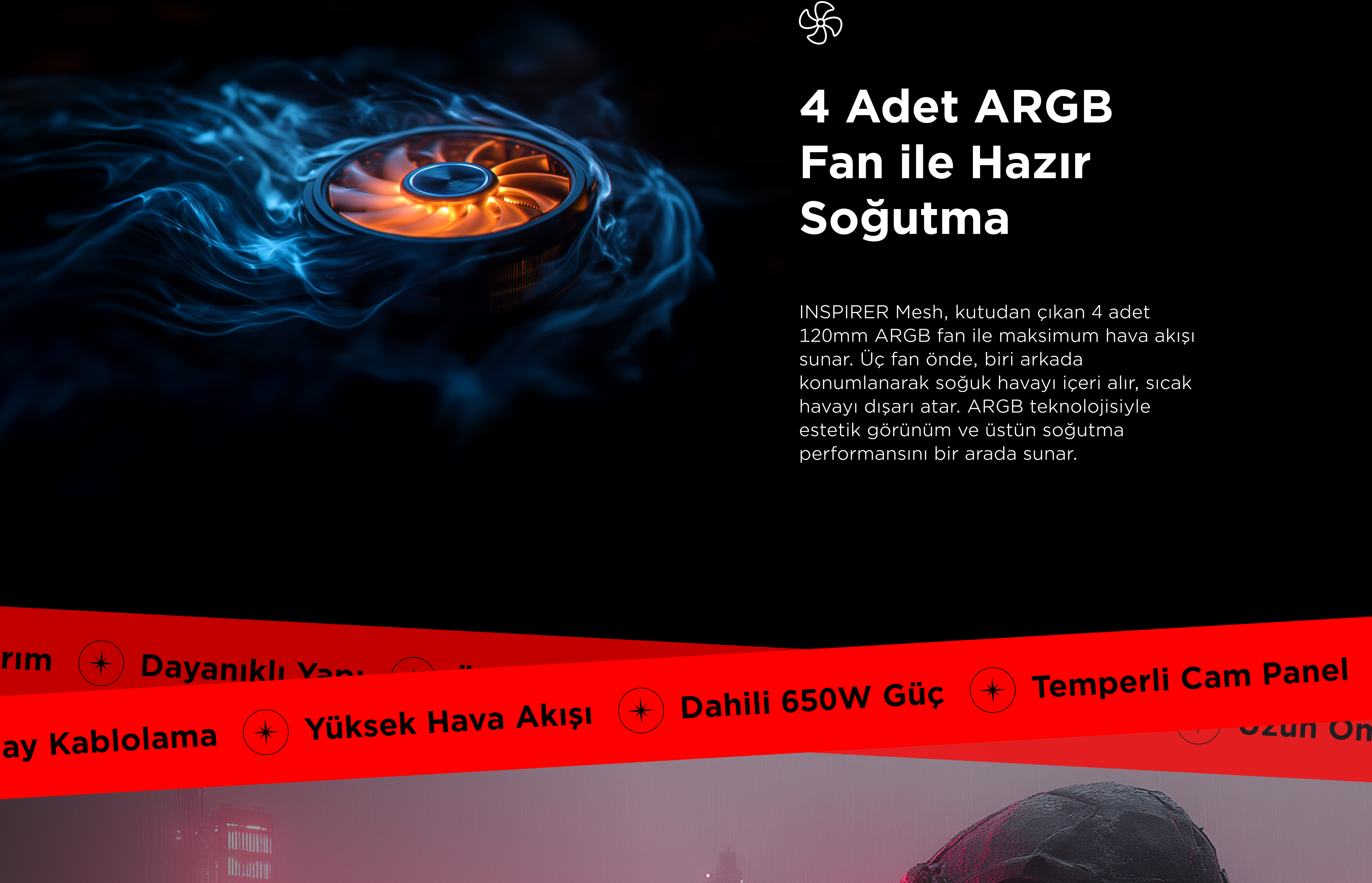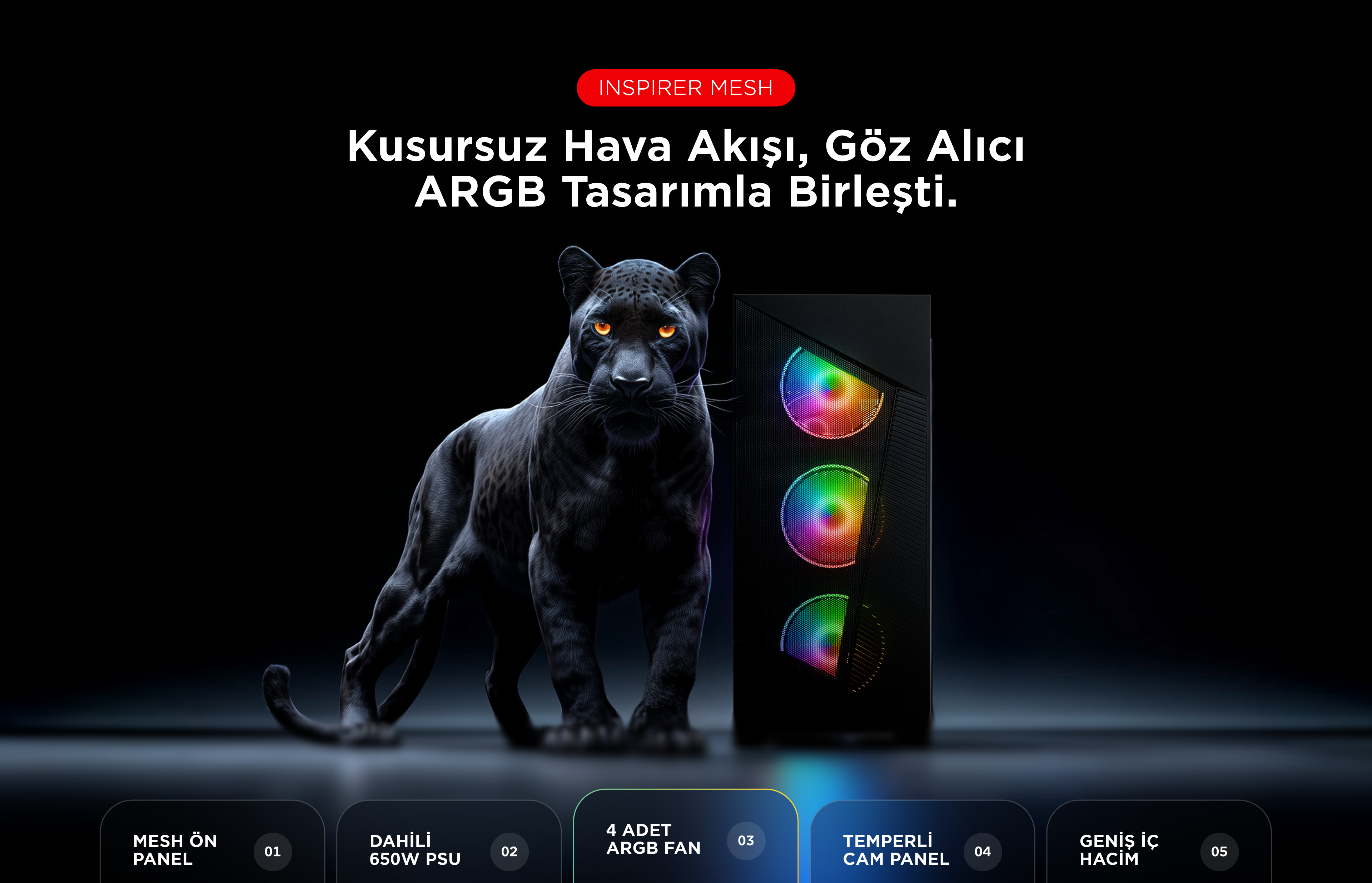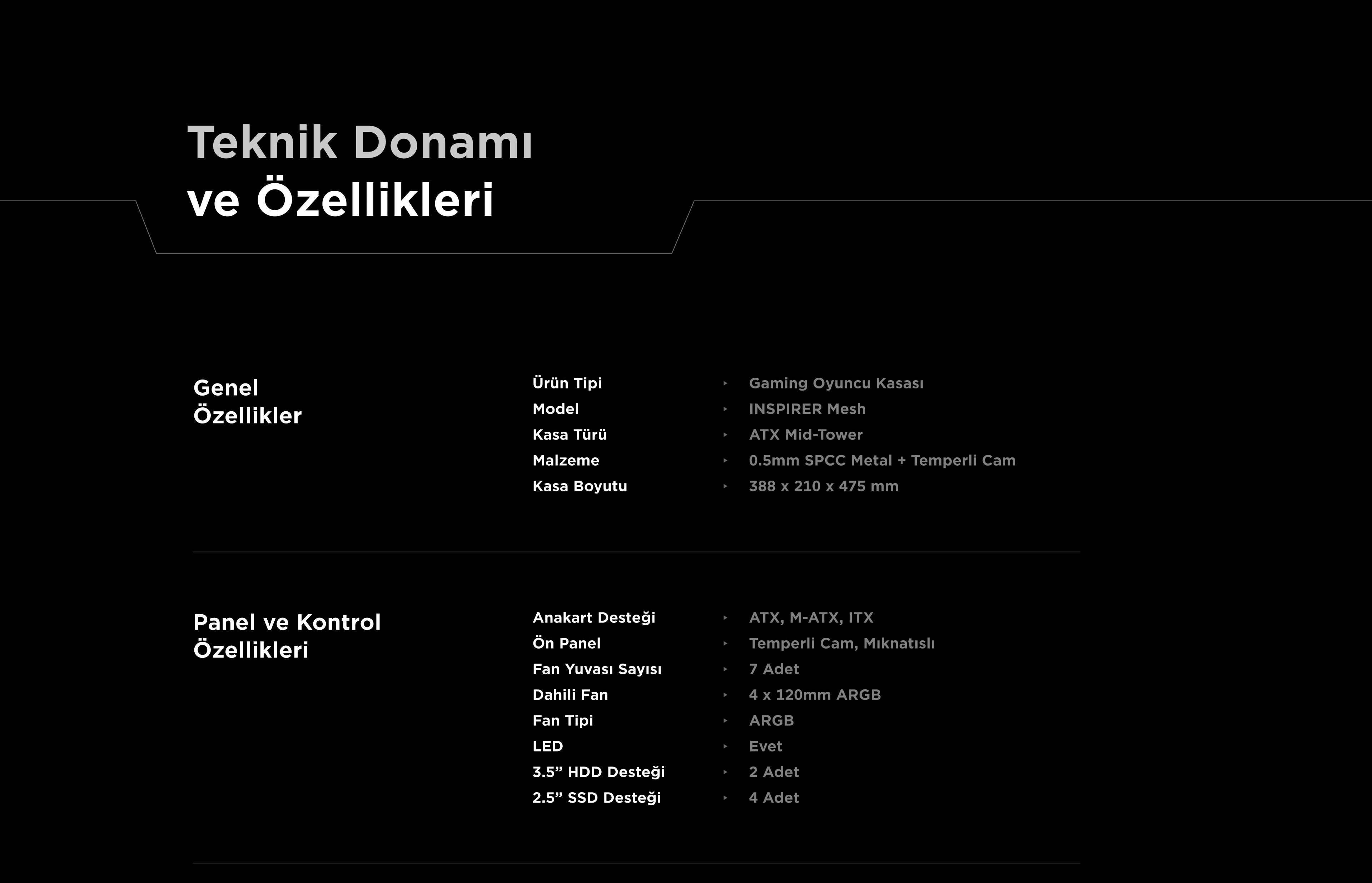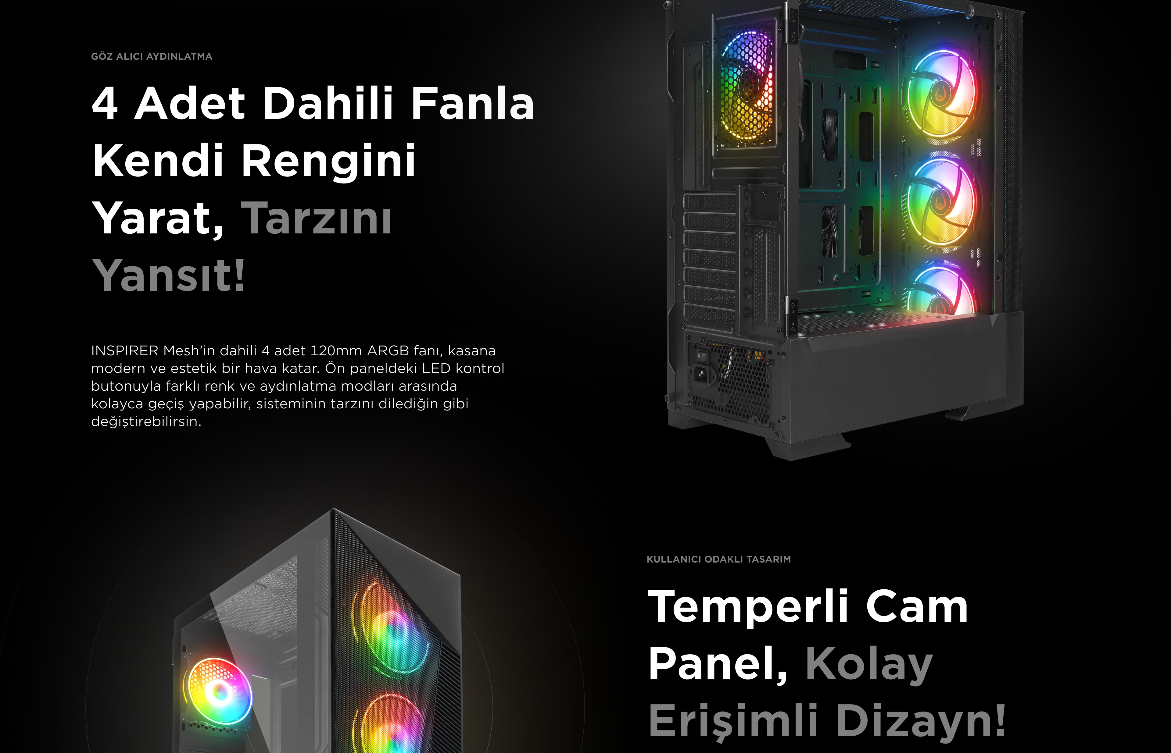 İnspirer Mesh 650W 80+ Atx Mid-T Oyuncu Kasası-Siyah
