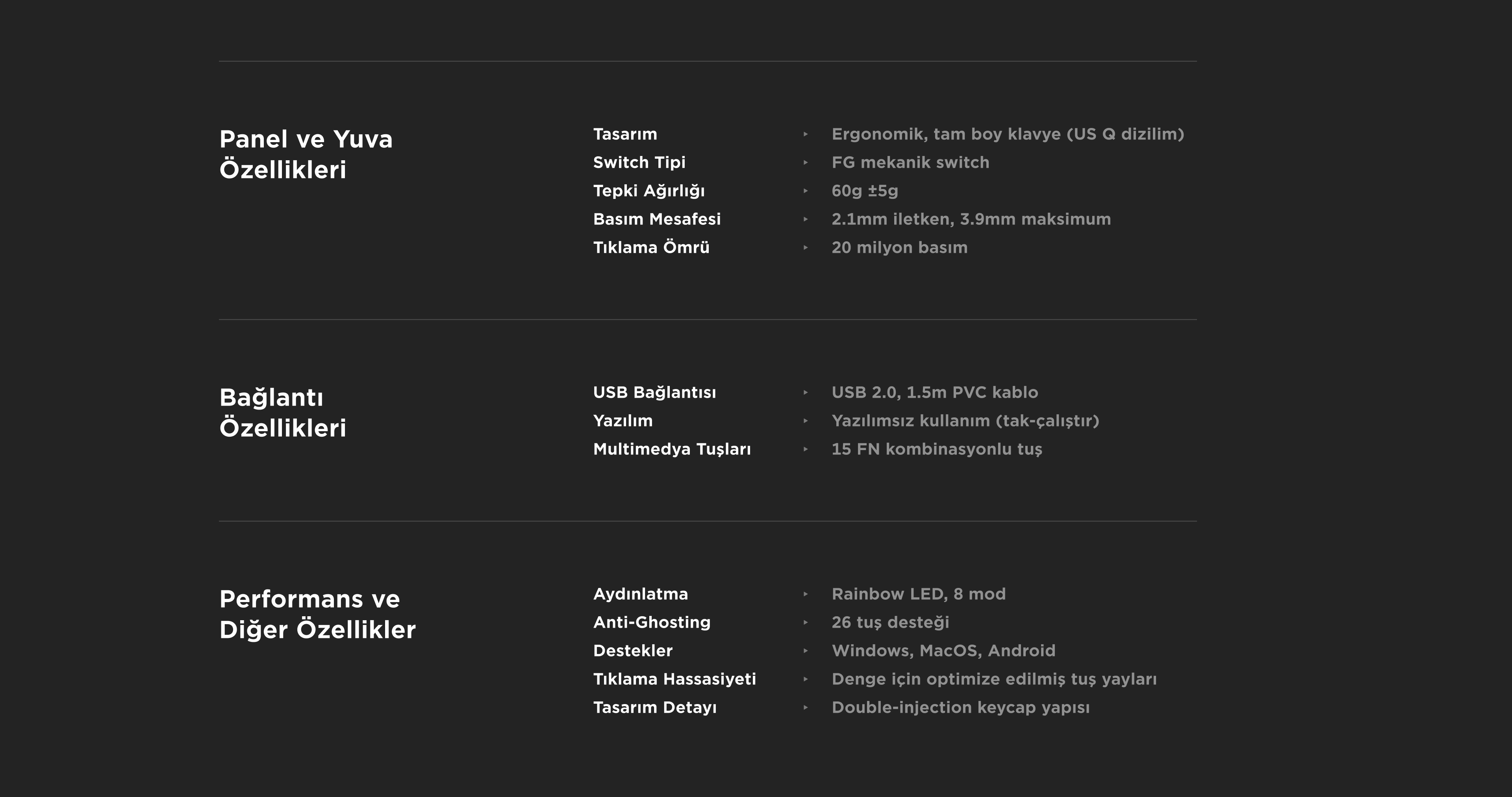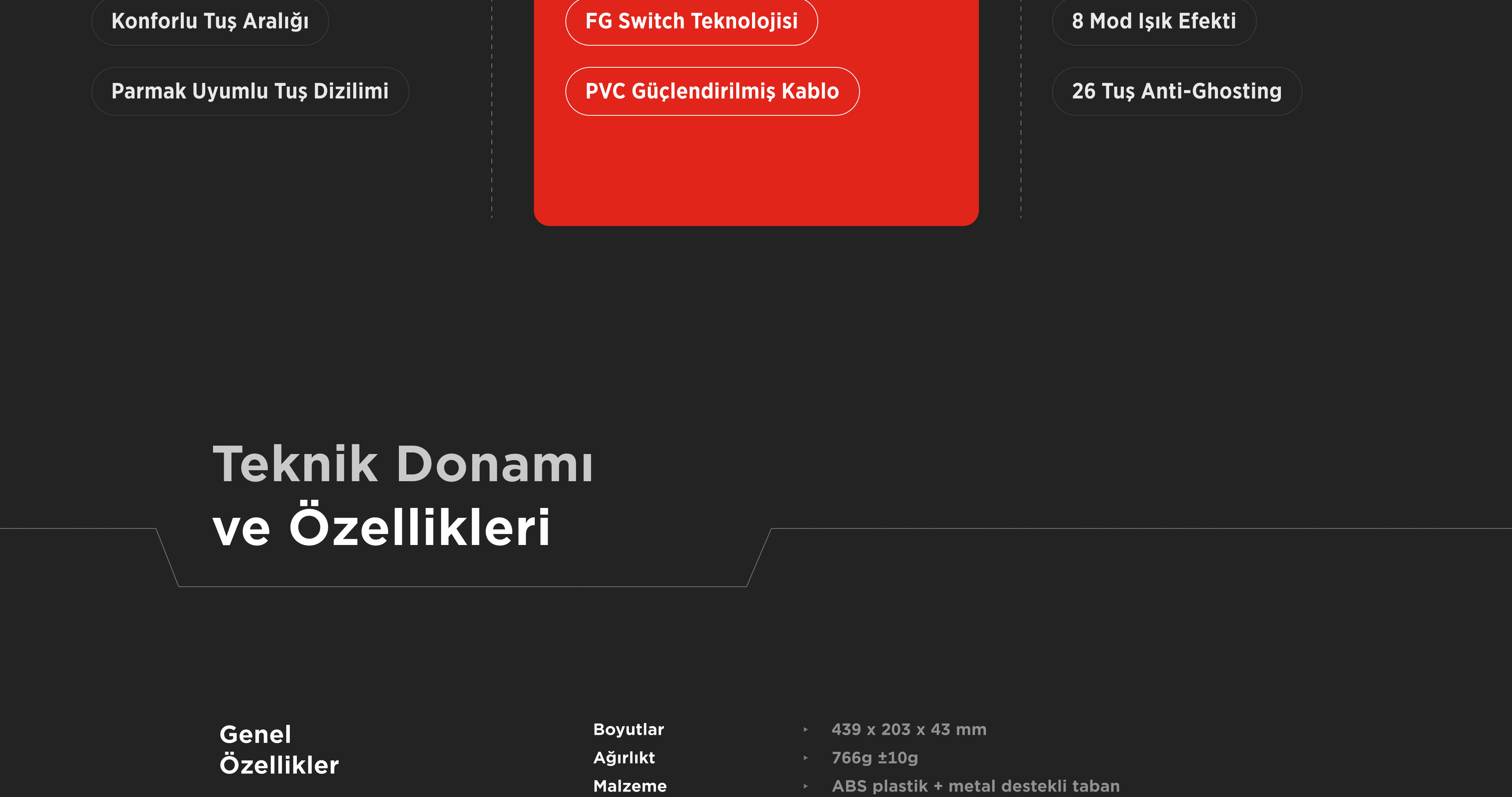 Kb-R86 Red Switch US Layout Mekanik Oyuncu Klavyesi-Siyah