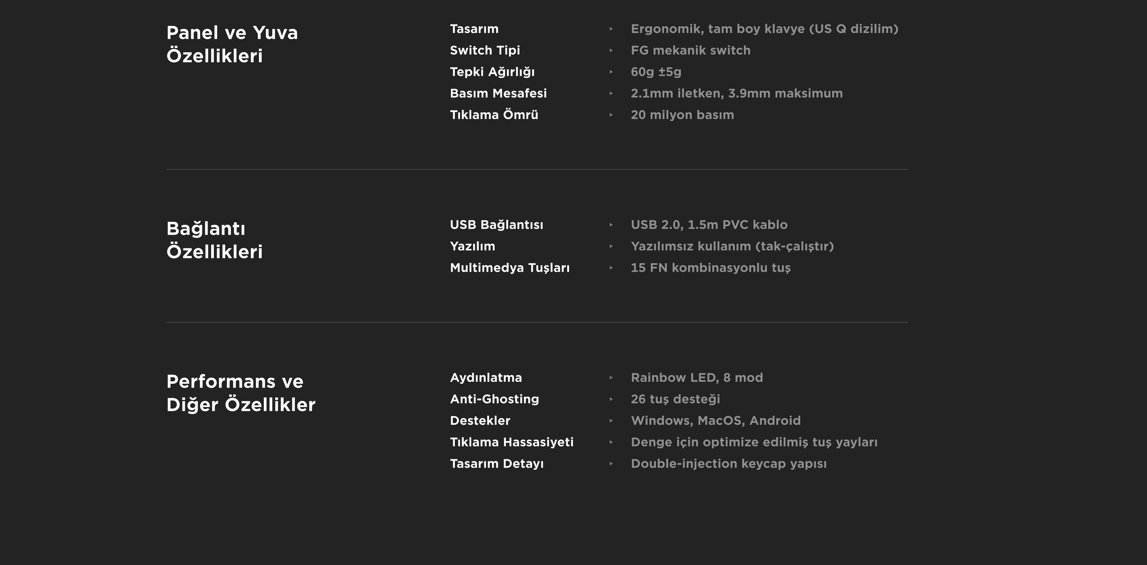 - 20 Milyon Tuş Ömrü