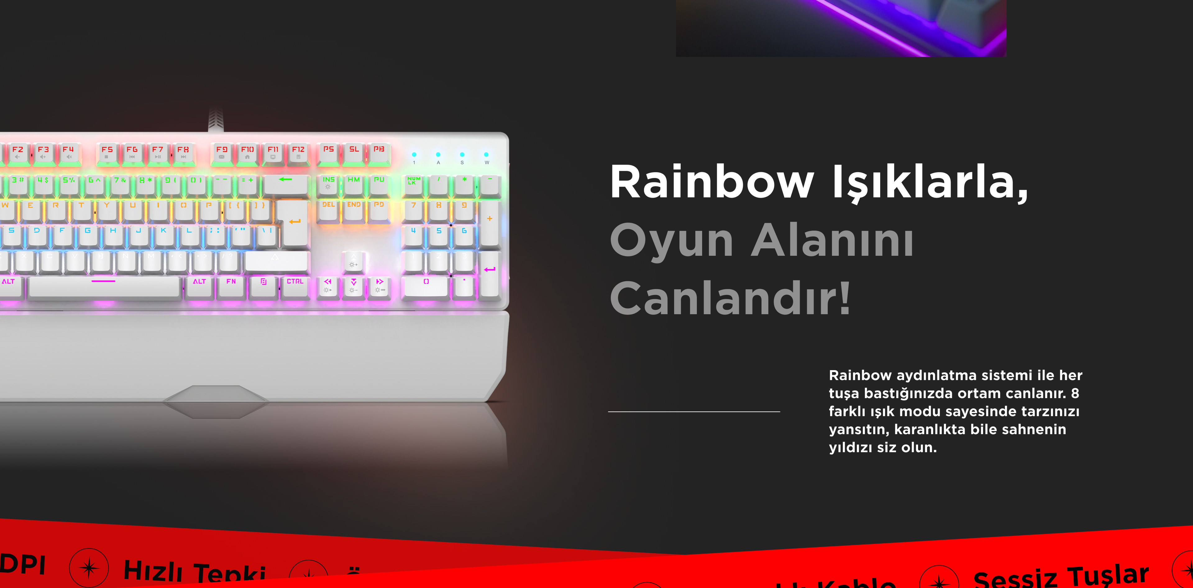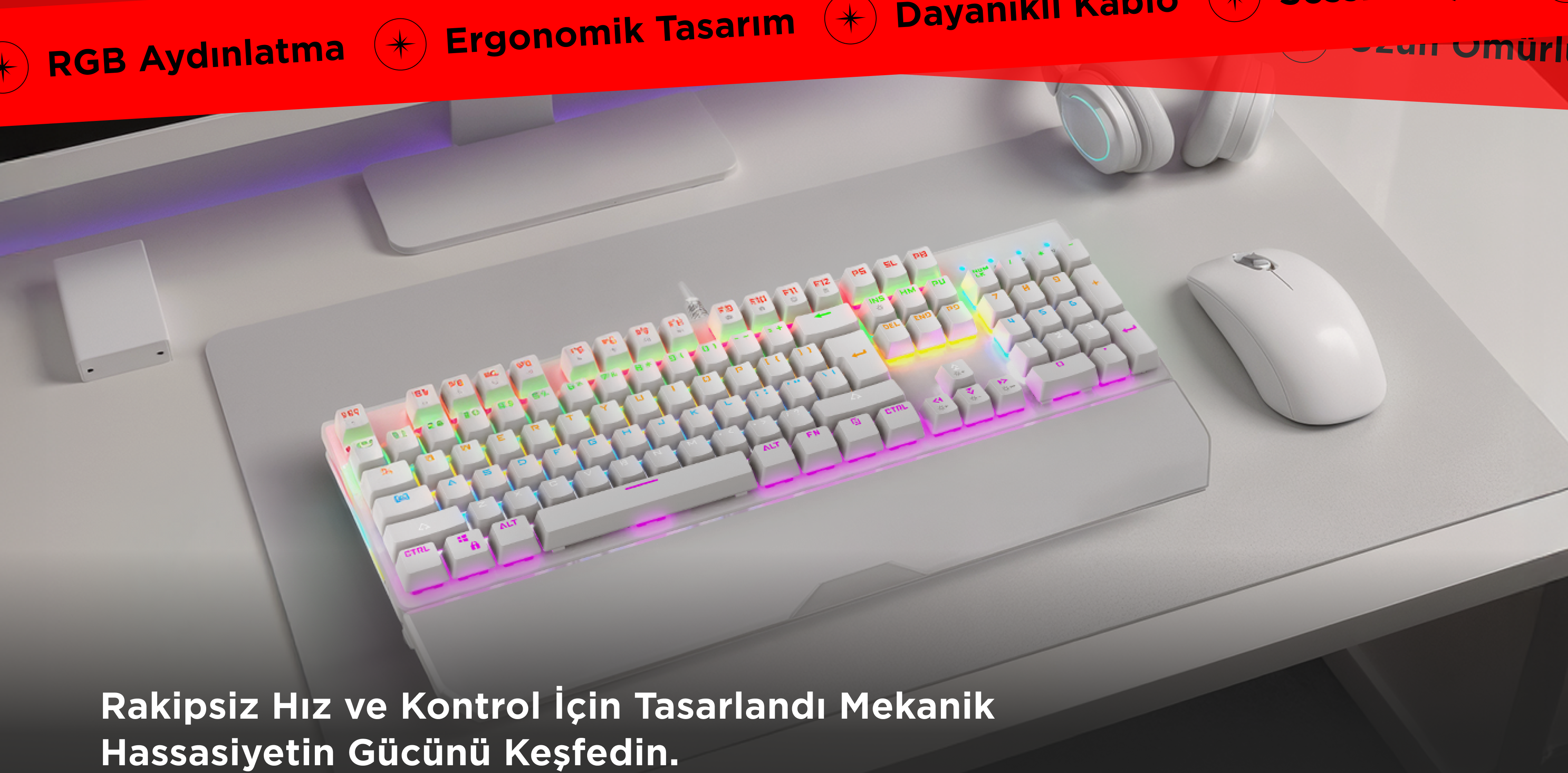 Kb-R86 US Layout English Rainbow Blue Switch Mekanik Oyuncu Klavyesi-Beyaz