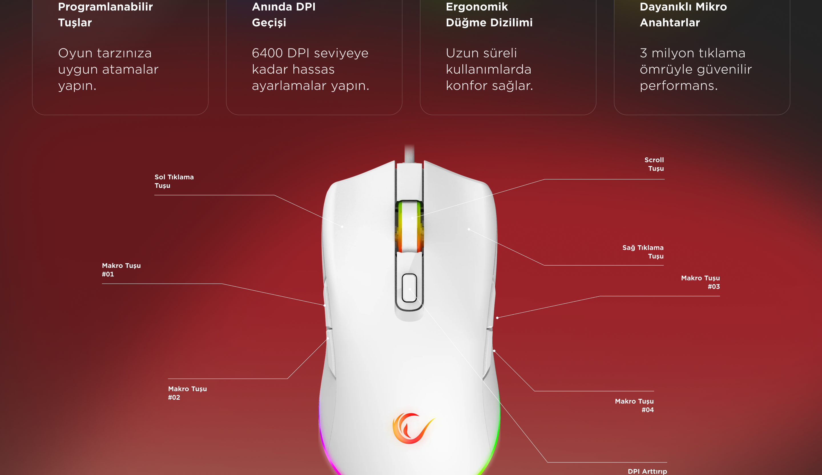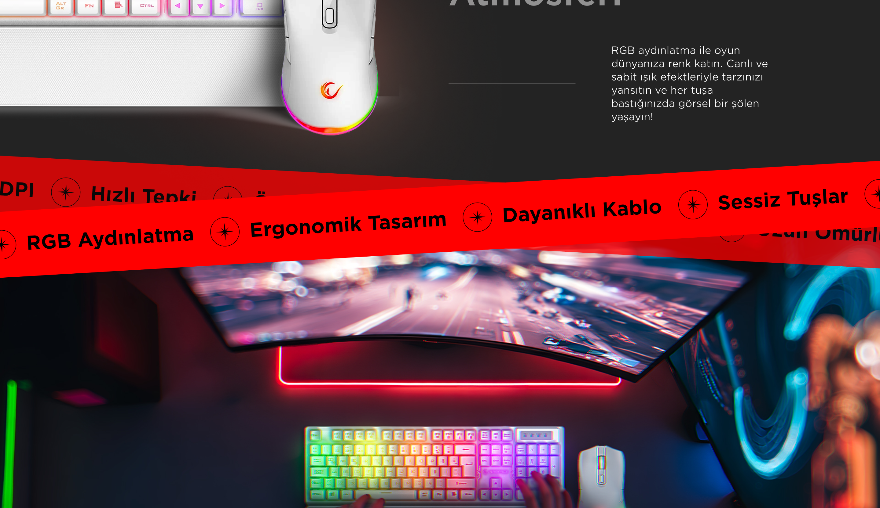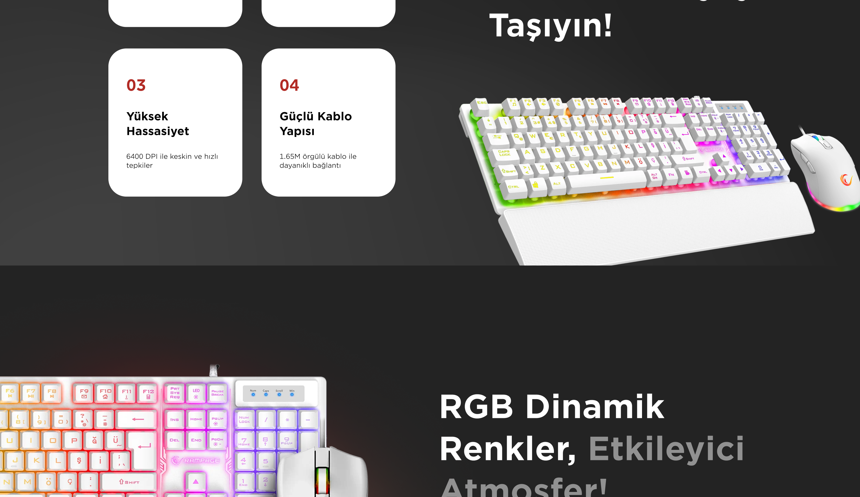 Km-Rx7 Fortuna V2 Combo Oyuncu Klavye + 12800 dpi Mouse-Beyaz
