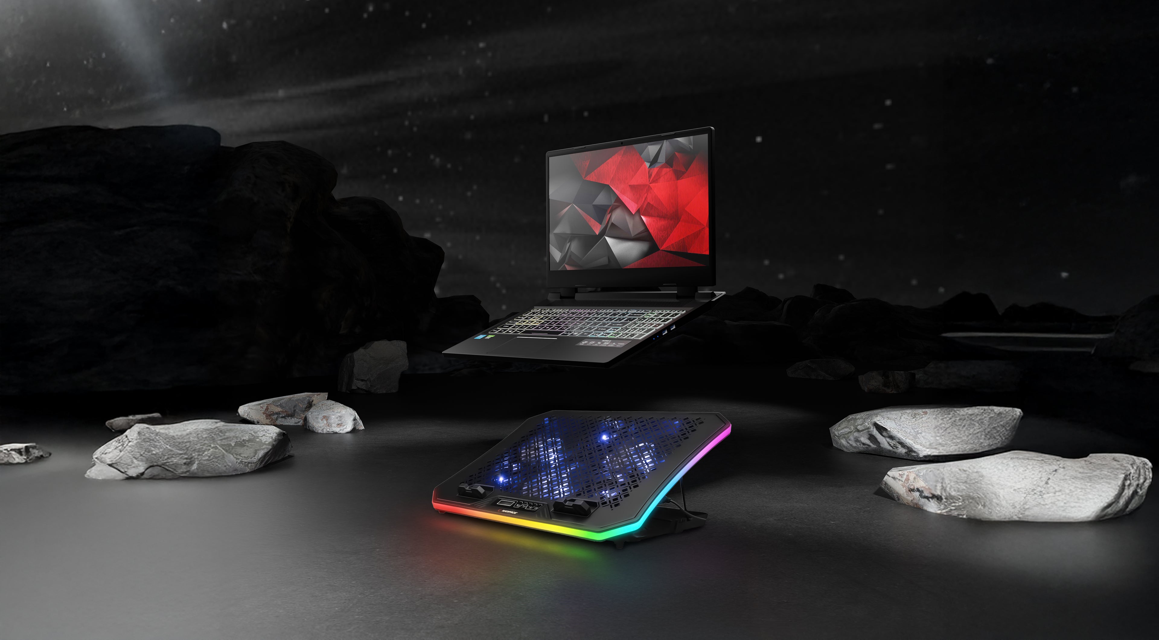 Rampage METAFOR ile hem serin bir hava akışı oluşturun, hem de RGB aydınlatma ile renkli bir ambiyans oluşturun.