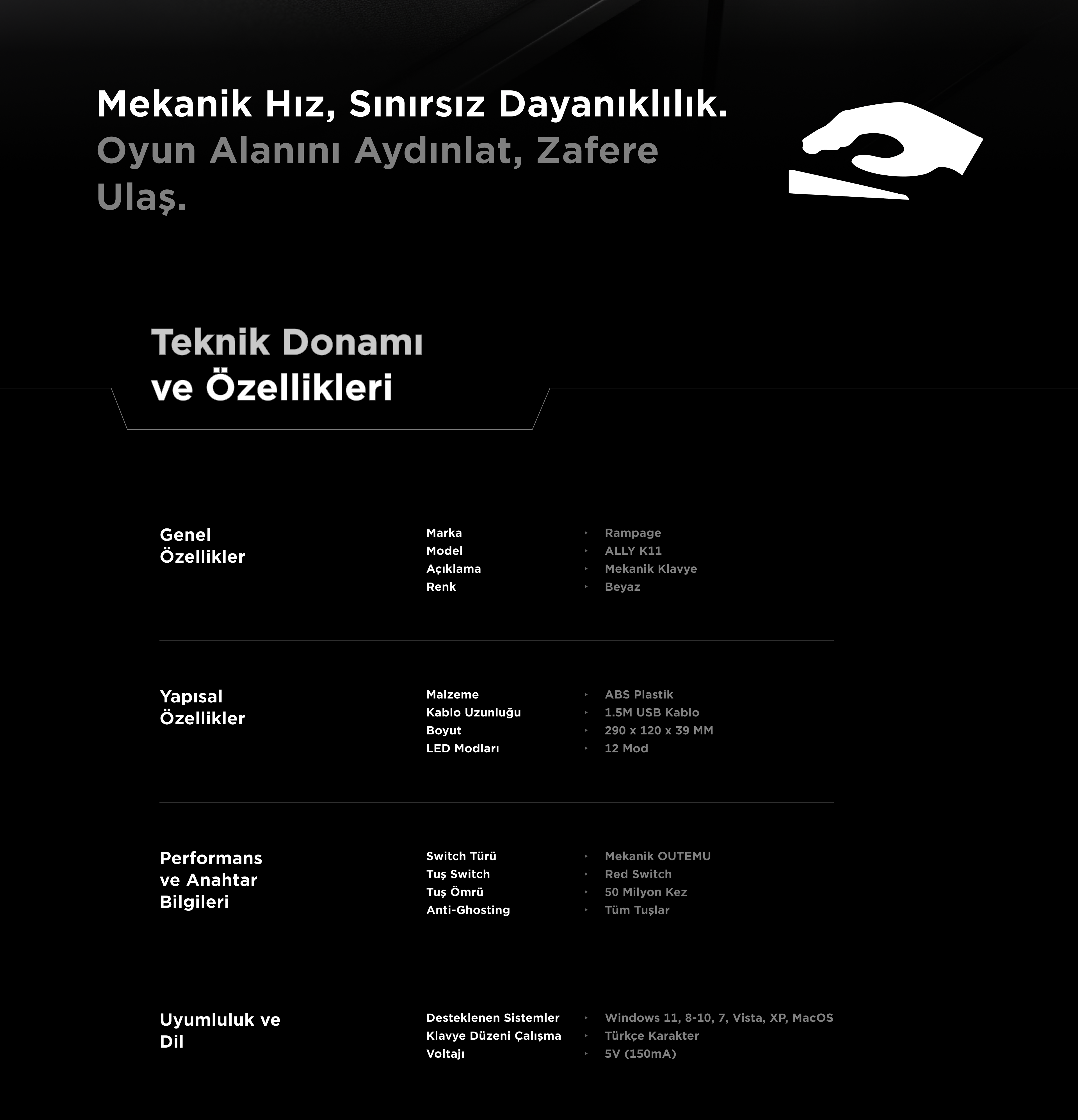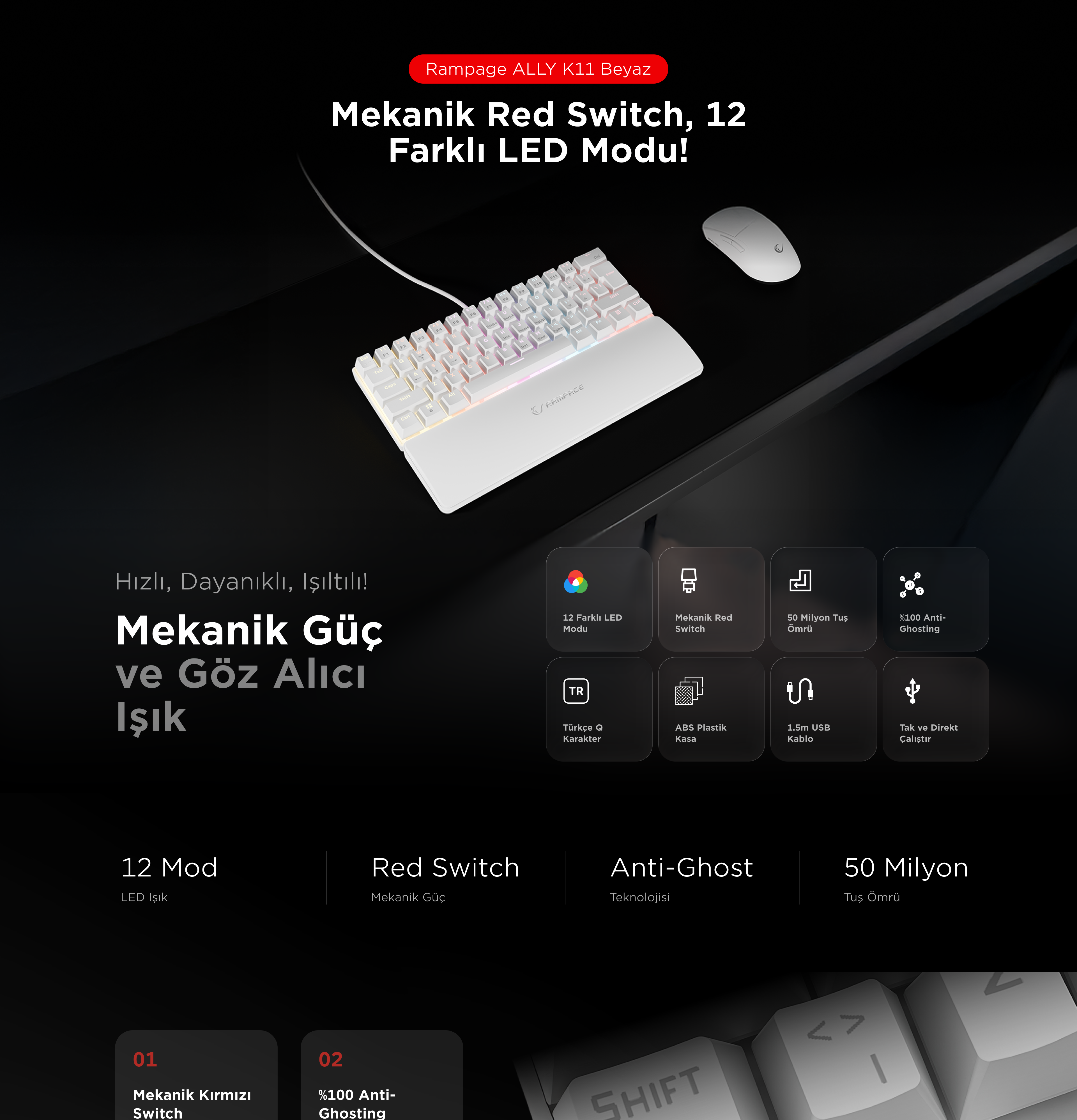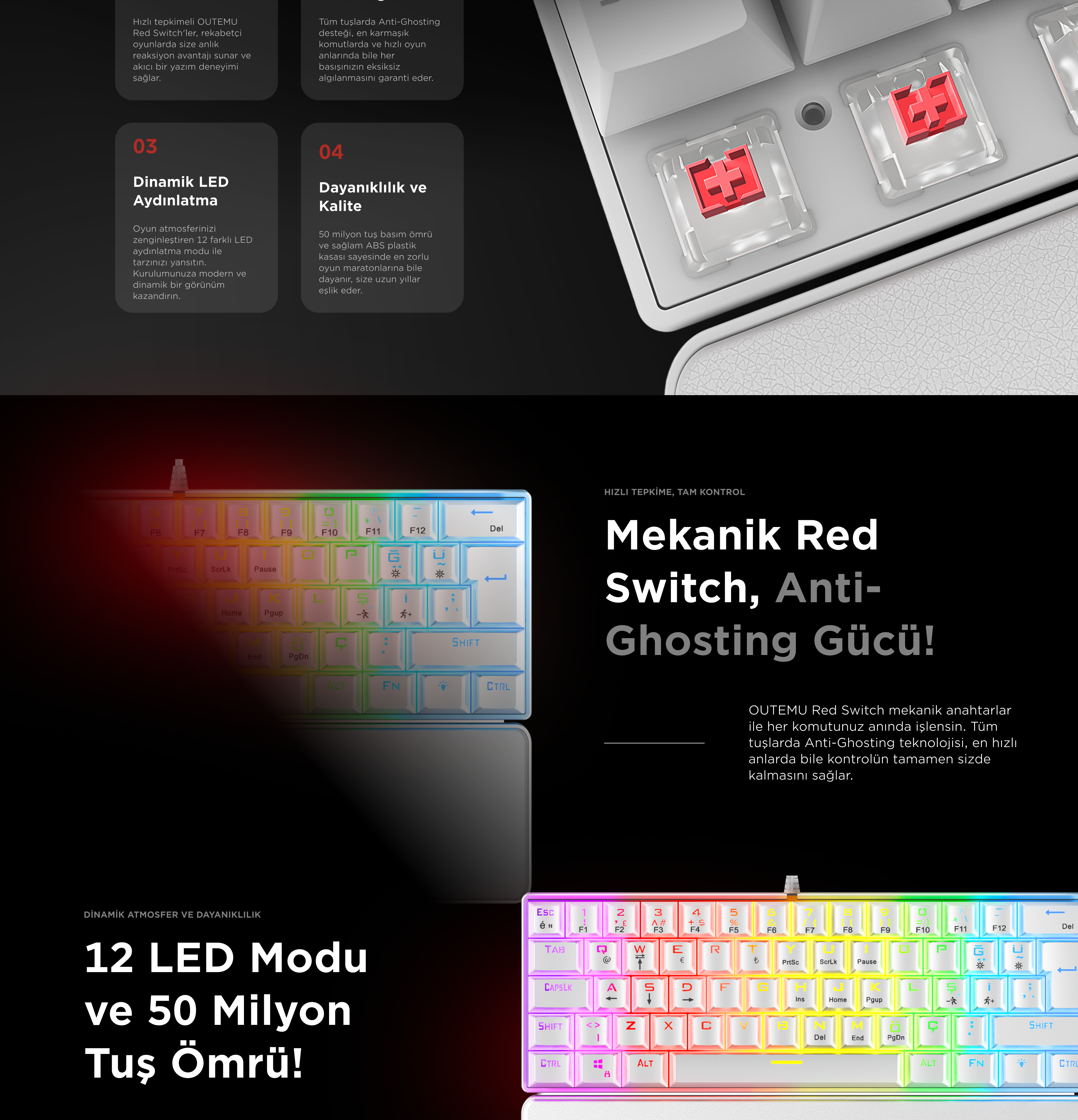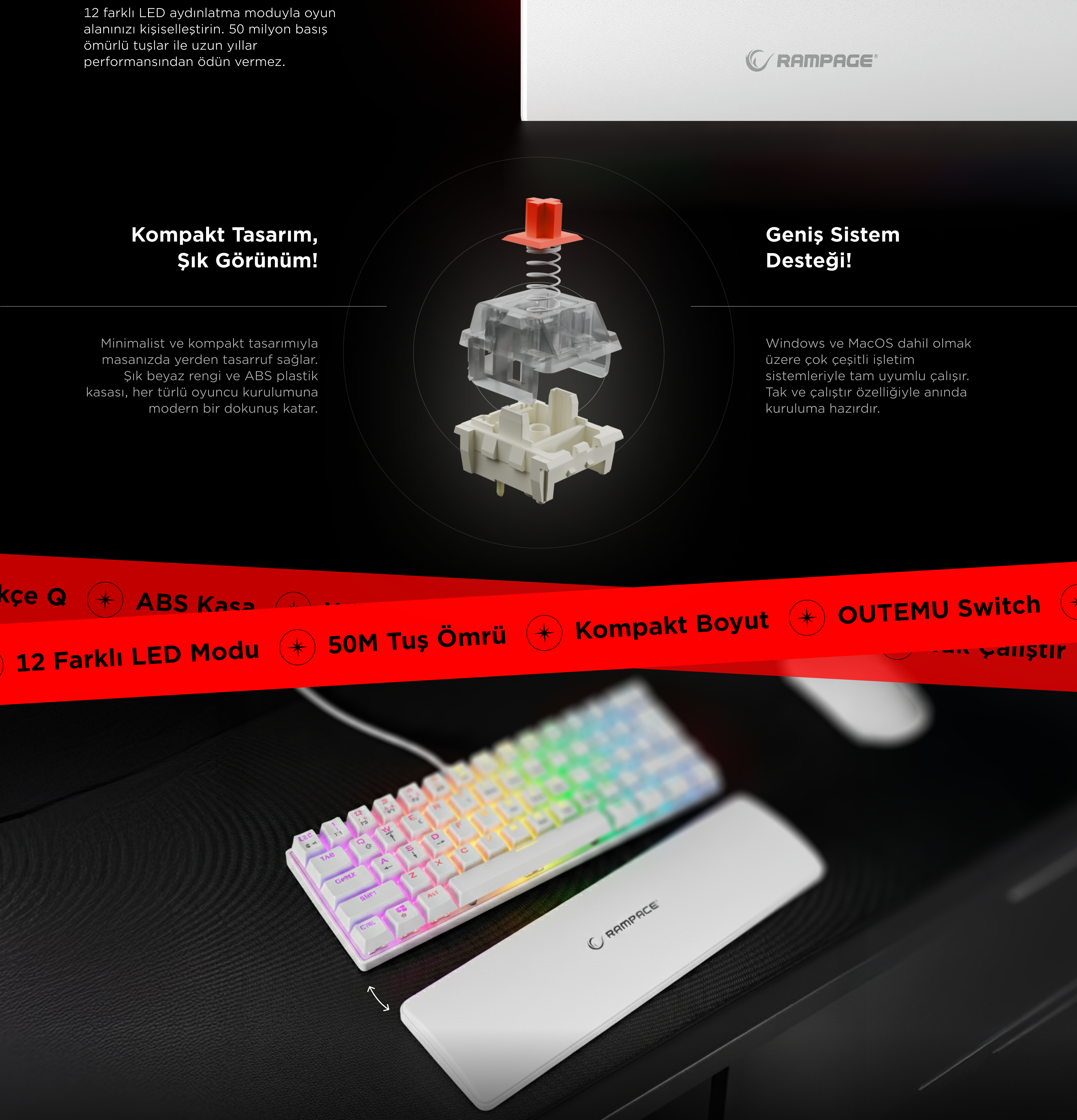 Rainbow Q Bilek Destekli Red Switch Mekanik Oyuncu Klavyesi-Beyaz