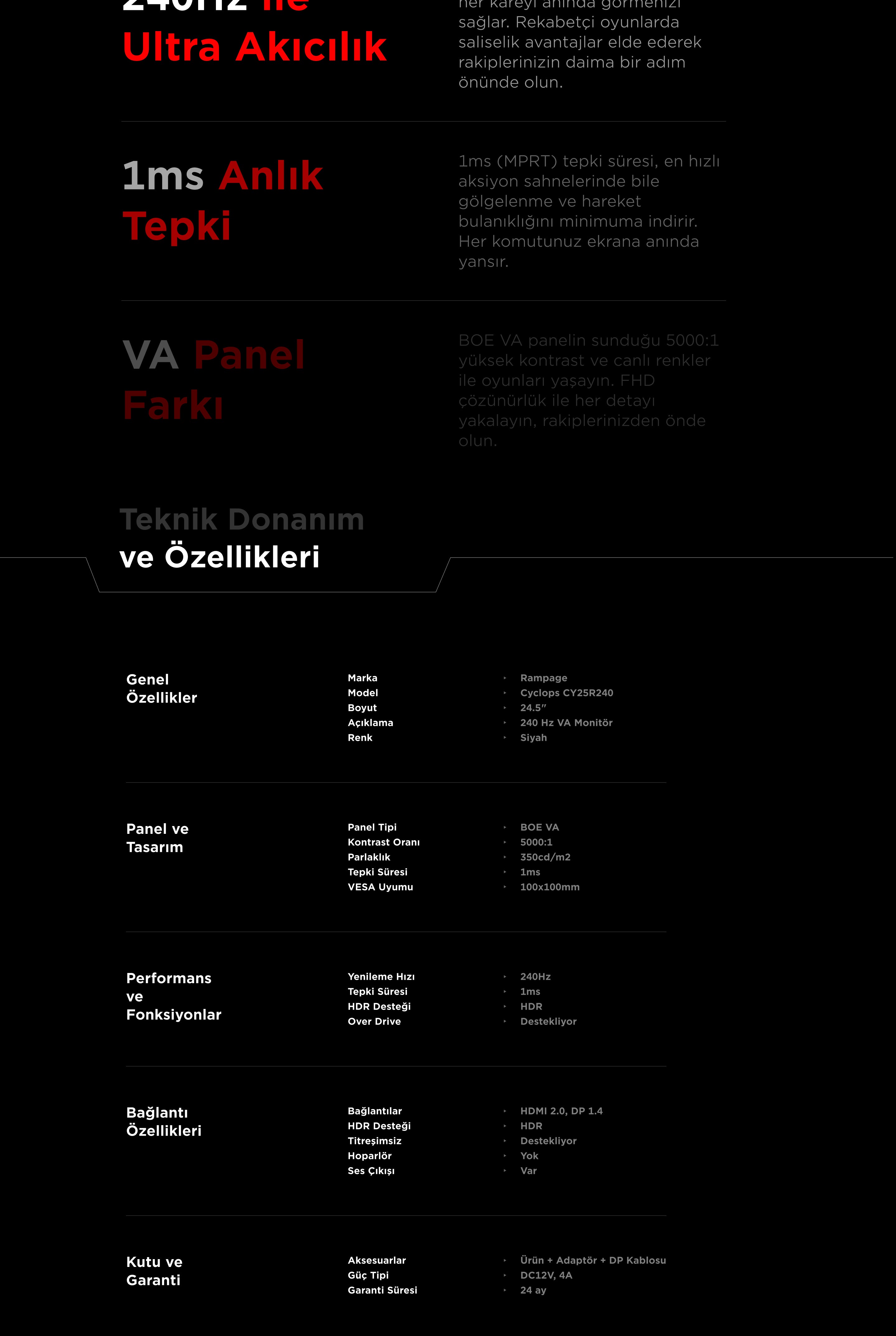 25” 240Hz 1ms FHD Oyuncu Monitörü