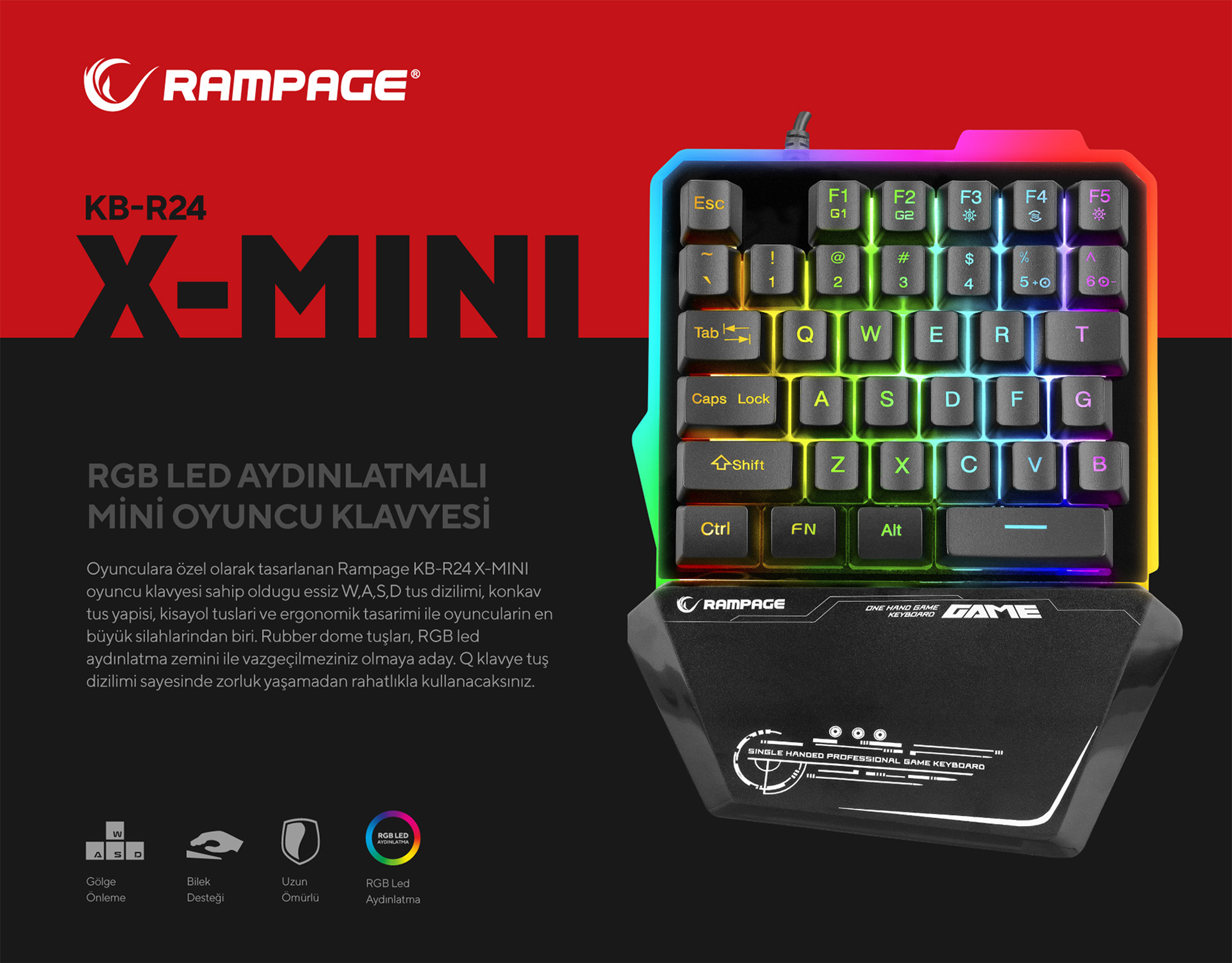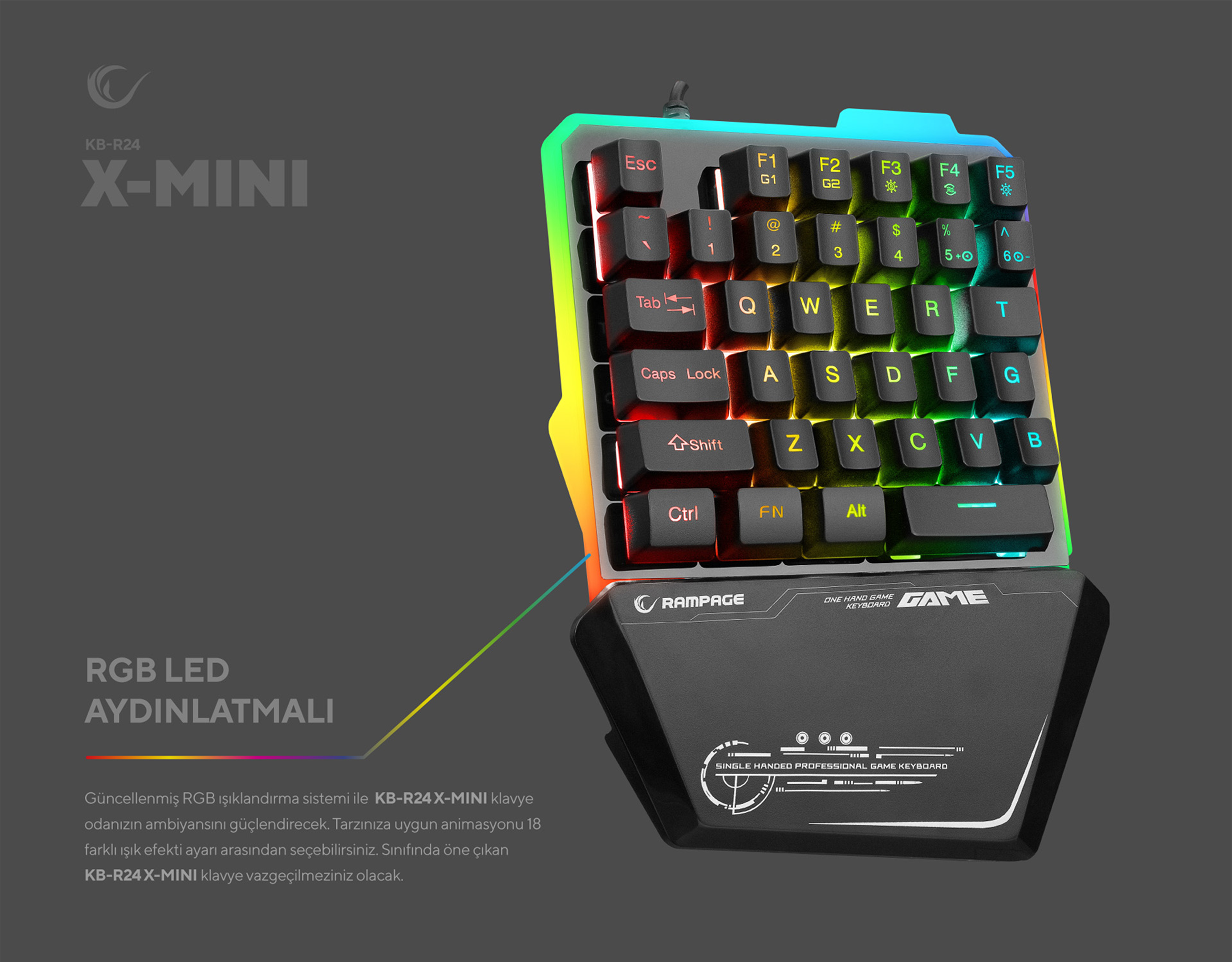 Kb-R24 X-Mini RGB Metal Taban Gövdeli Oyuncu Klavyesi