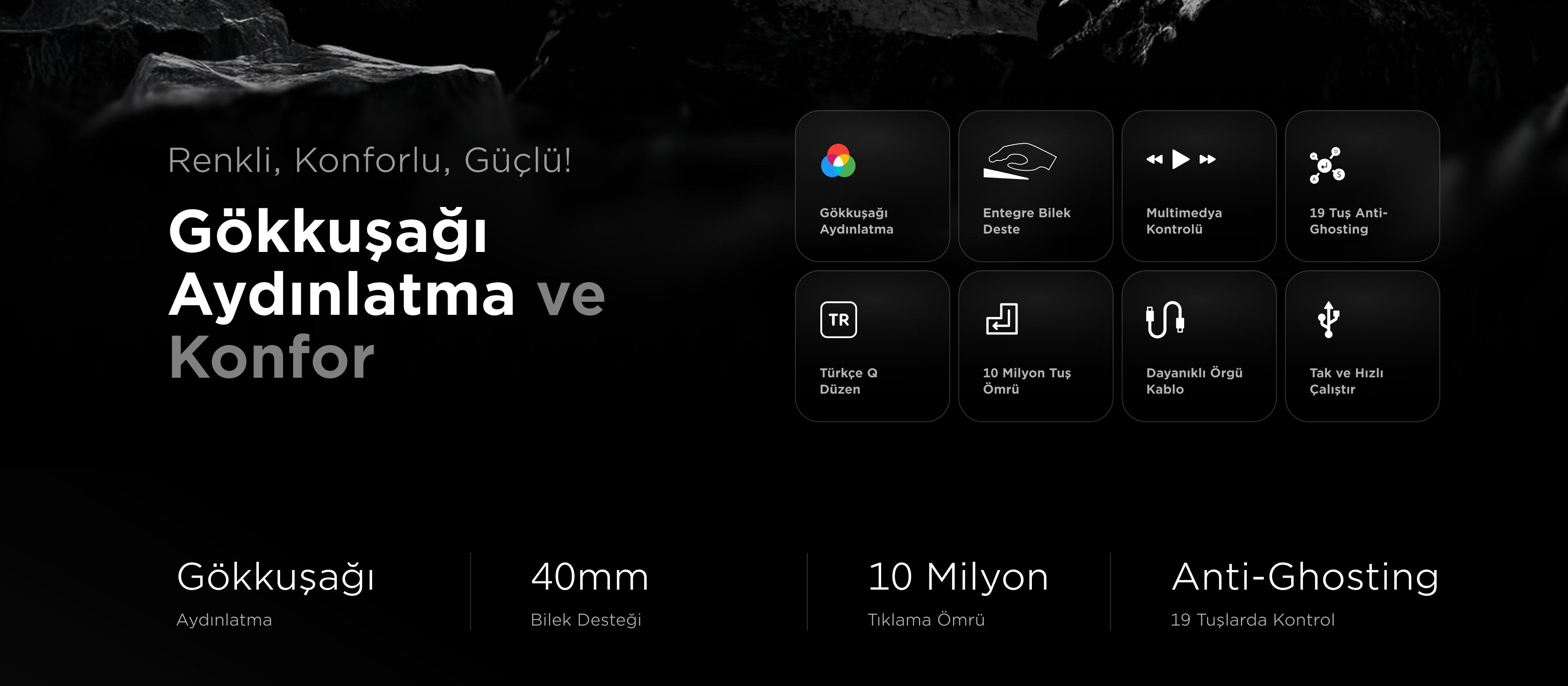 KB-R66 BUBBLE USB Gökkuşağı Aydınlatmalı Q Multimedia Gaming Klavye