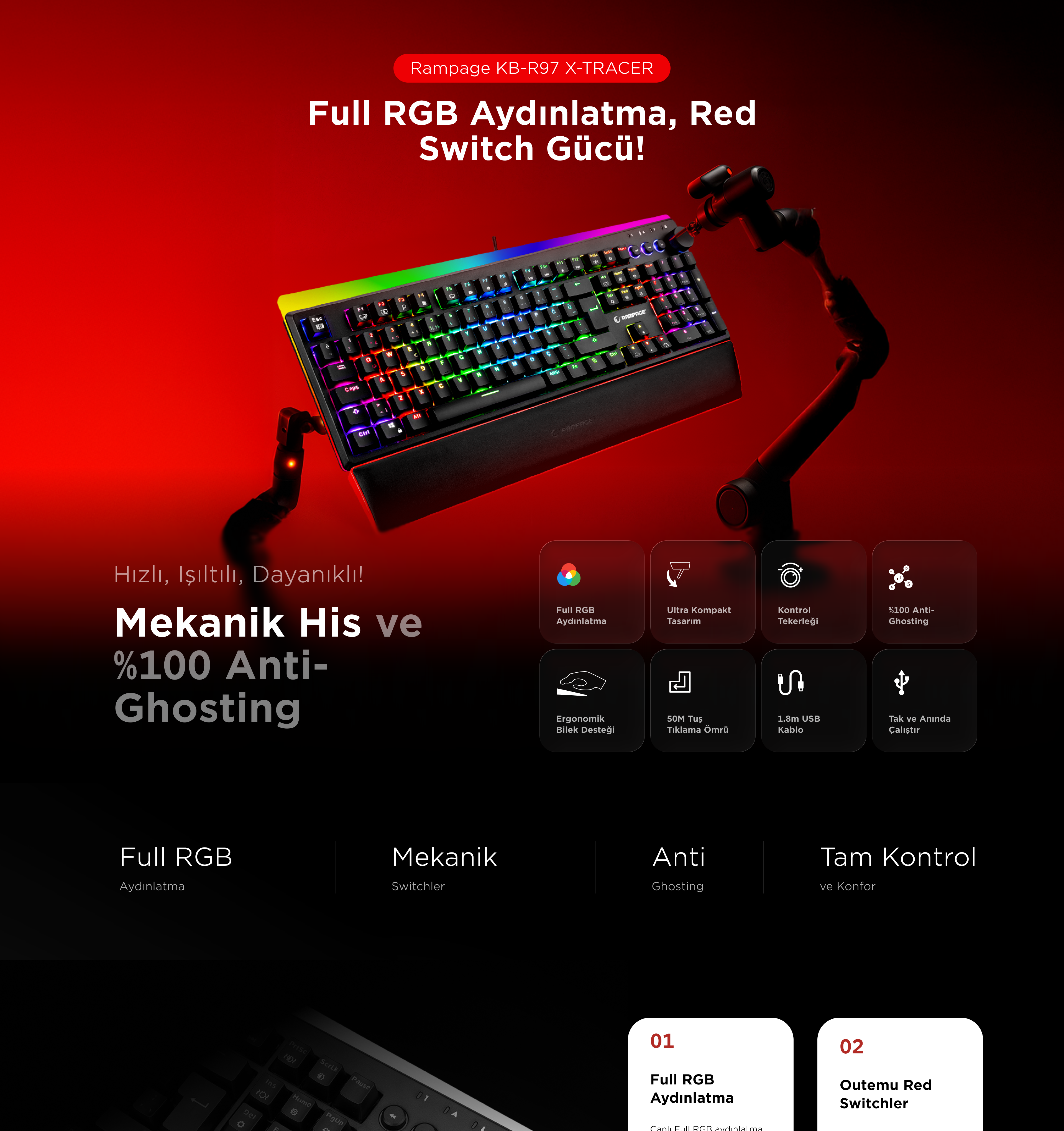 Kb-R97 X-Tracer Usb Red Switch Türkçe Mekanik Oyuncu Klavyesi-Siyah