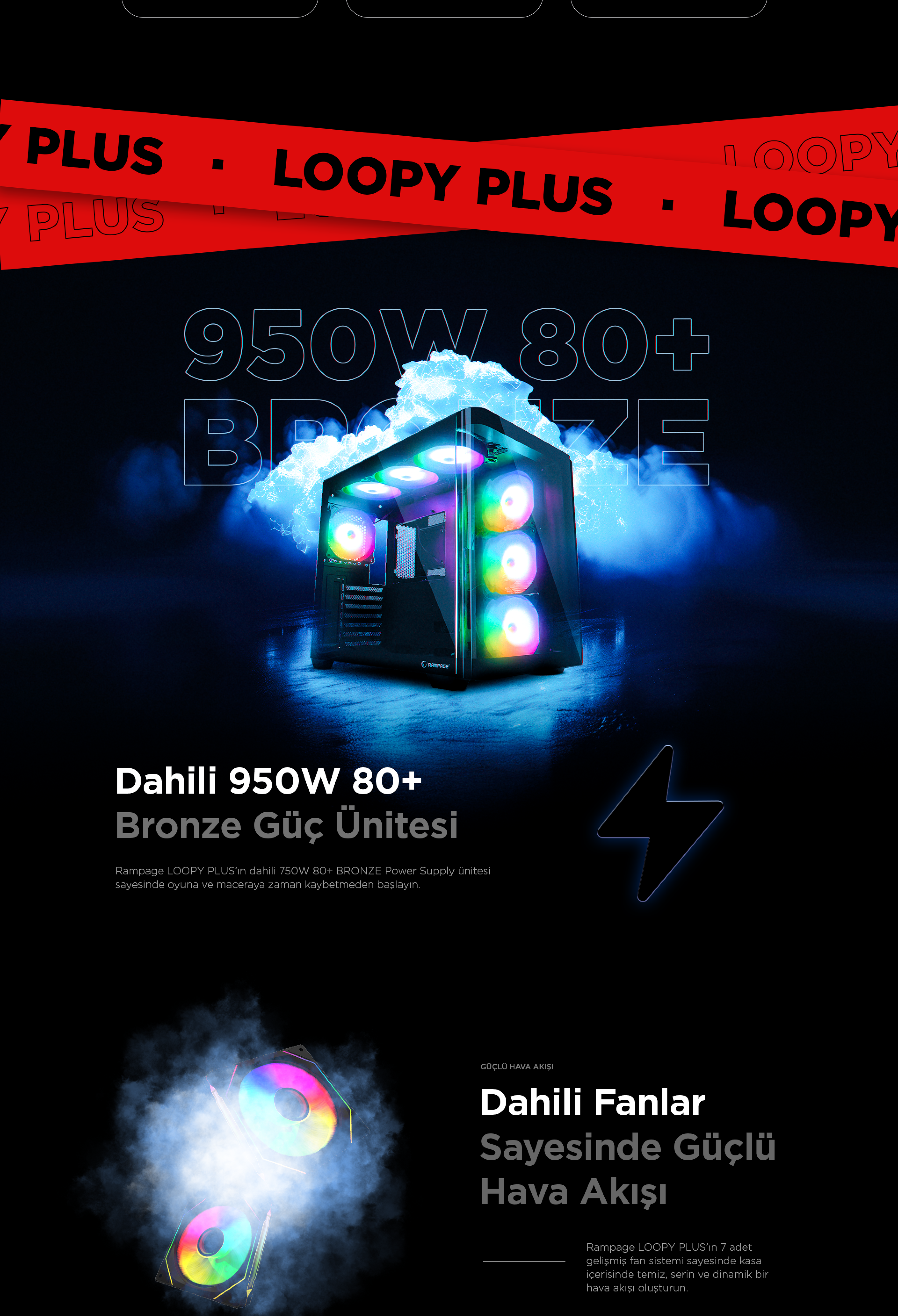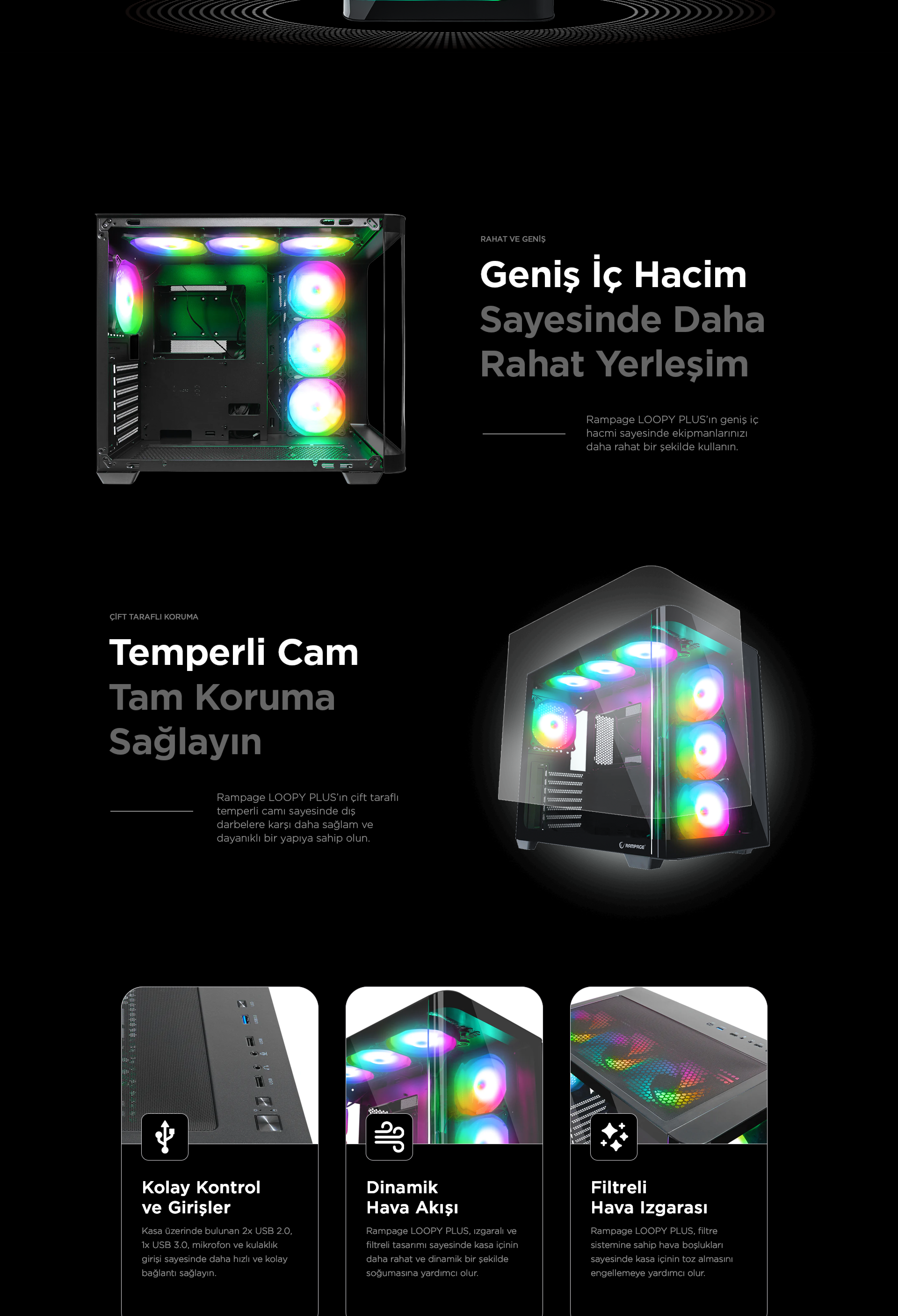 Loopy Plus 950W 80 Plus 7x12cm ARGB Fan Kumandalı Atx Mid-T Oyuncu Kasası-Siyah
